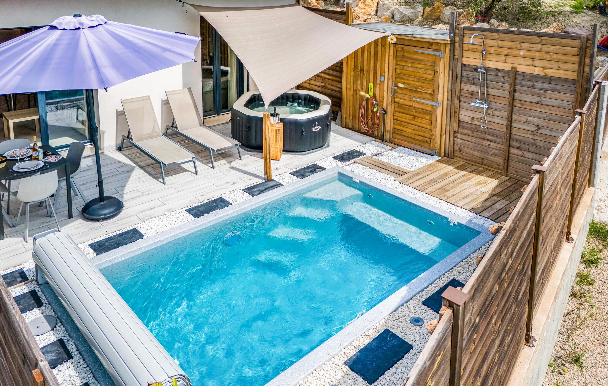 Dieser bezaubernde Ort an der französischen Riviera ist viel mehr als nur ein Apartment – ??es ist eine Oase der Ruhe und des Komforts. Das Apartment wurde mit Blick auf Ihr Wohlbefinden gestaltet und bietet eine perfekte Mischung aus modernen Annehmlichkeiten und ruhiger Umgebung. Entspannen Sie im beheizten 10 m² großen Pool, der je nach Wetterlage das ganze Jahr über geöffnet ist, oder gönnen Sie sich in Ihrem eigenen privaten Spa das ultimative Entspannungserlebnis. Die private Terrasse, ausgestattet mit Liegestühlen, Gartenmöbeln und einer Dusche, ist perfekt, um die Sonne zu genießen oder einen ruhigen Abend unter den Sternen zu verbringen.