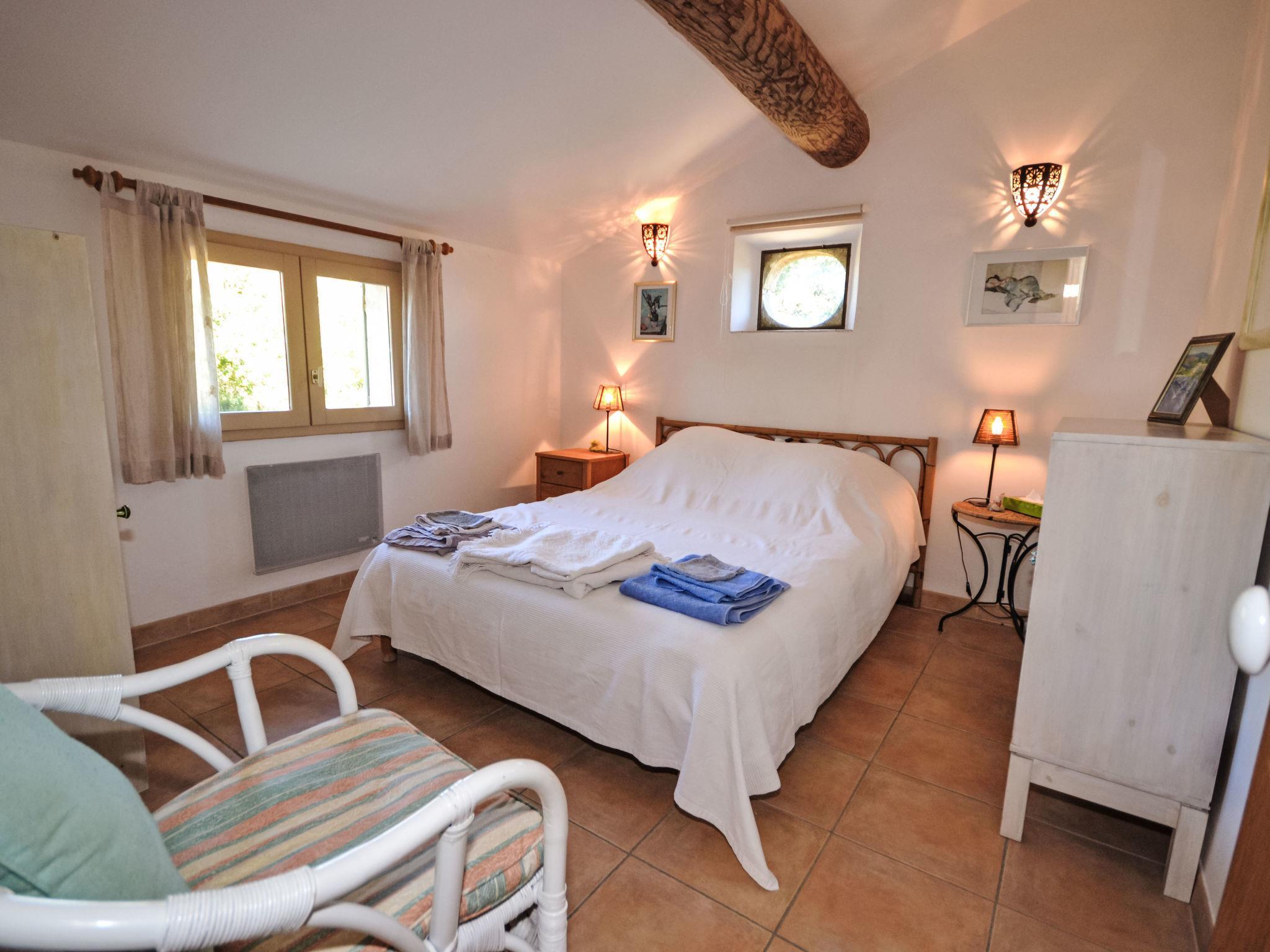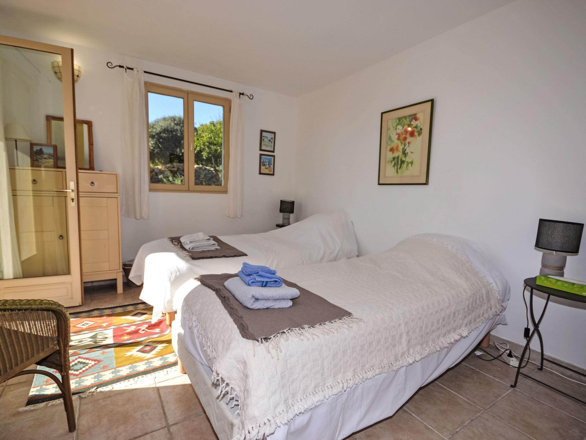 6-Zimmer-Haus 160 m2 auf 2 Stockwerken, Südostlage. Schön eingerichtet: Eingang. Wohn-/Esszimmer 28 m2 mit offenem Kamin, TV, Video und Stereoanlage. Ausgang zur Terrasse. Wohnzimmer mit 1 Doppeldiwanbett. 1 Zimmer mit 2 Betten (90 cm, Länge 190 cm). Ausgang zum Garten. 1 Zimmer mit 1 Doppelbett (140 cm, Länge 190 cm), Dusche/WC. Ausgang zum Garten. Küche (4 Kochplatten, Backofen, Geschirrspüler, Mikrowelle, Grill). Dusche/WC. Obergeschoss: 1 Zimmer mit 1 Doppelbett (1 x 140 cm, Länge 190 cm), Dusche/WC. 1 Zimmer mit 1 franz. Bett (1 x 160 cm, Länge 200 cm), Bad/WC. Ausgang zum Balkon. Kleiner Balkon 3 m2, Ostlage, Terrasse 35 m2. Terrassenmöbel, Elektrogrill, Liegestühle. Panoramasicht auf. Zur Verfügung: Waschmaschine. Internet (WLAN, gratis). Bitte beachten: geeignet für Familien. Rauchmelder. Der ausgeschriebene Pool ist zur alleinigen Nutzung.