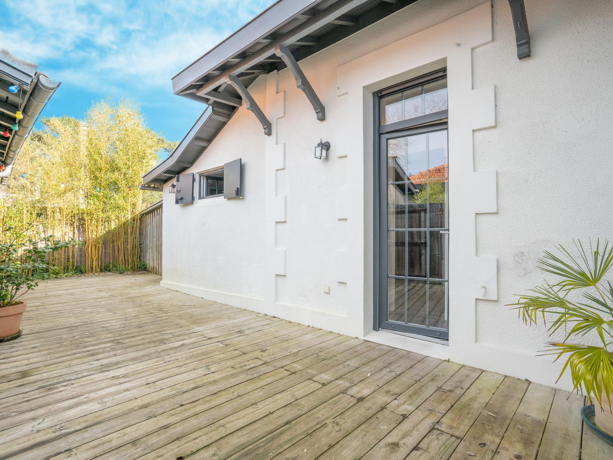 Arcachon: Reihenhaus "Villa Albertine". 1 km vom Meer, 1 km vom Strand. Im Hause: Einstellraum für Fahrräder. Öffentliche Parkplätze auf der Strasse. Einkaufsgeschäft 950 m, Lebensmittelgeschäft, Supermarkt 700 m, Einkaufszentrum 2.5 km, Restaurant 550 m, Bar 1.1 km, Bäckerei 550 m, Fahrradverleih 700 m, Bushaltestelle "Grand Chênes" 270 m, Bahnstation "Arcachon" 700 m, Sandstrand "Eyrac" 1 km, Park "Mauresque" 1 km, Thermalbad "Thalazur" 3 km. Sporthafen 2.8 km, Golfplatz (18 Loch) 3.1 km. Nahe gelegene Sehenswürdigkeiten: Dune du Pyla 8.7 km, Eratopia 7.9 km, Observatoire Sainte Cécile 1.4 km, Marché Municipal 1.2 km, Navette Maritime pour le Cap Ferret 1.3 km, Casino 1 km. Bekannte Seen in der Umgebung sind gut erreichbar: Lac de la Magdeleine 9.2 km, Lac de Cazaux 15.2 km. Der Besitzer akzeptiert keine Jugendgruppen. Bitte beachten: Die Schlüsselübergabe findet bei der Agentur Interhome in Arcachon statt, 2 km. Eisenbahnlinie in der Nähe 50 m vom Haus. Die Nachbarschaft ist sehr lärmempfindlich. Ruhe und gutes Benehmen wird erwartet.