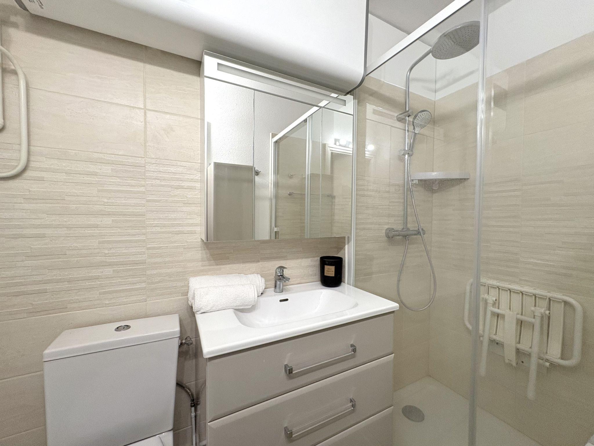 2-Zimmer-Wohnung 35 m2 im 2. Stock. Komfortabel eingerichtet: Wohn-/Esszimmer mit 1 Doppeldiwanbett (1 x 140 cm, Länge 190 cm), TV (Flachbildschirm). Ausgang zur Terrasse. 1 Zimmer mit 1 franz. Bett (1 x 140 cm, Länge 190 cm). Ausgang zur Terrasse. Offene Küche (Geschirrspüler, 2 Induktionskochplatten, Toaster, Wasserkocher, Tiefkühler, elektrische Kaffeemaschine, Kapseln für die Kaffeemaschine (Nespresso) extra, Kombinationsmikrowelle). Dusche/WC. E-Heizung. Grosse Terrasse 16 m2, Nordlage und Ostlage. Terrassenmöbel. Eingeschränkte Sicht auf das Meer. Zur Verfügung: Waschmaschine, Haartrockner. Internet (WLAN, extra). Parkplatz Nr. 324 (eingezäunt, 1 Auto). Bitte beachten: Rauchmelder. Inserat einer Privatperson nach Artikel 155, IV, CGI. 33009003806BB