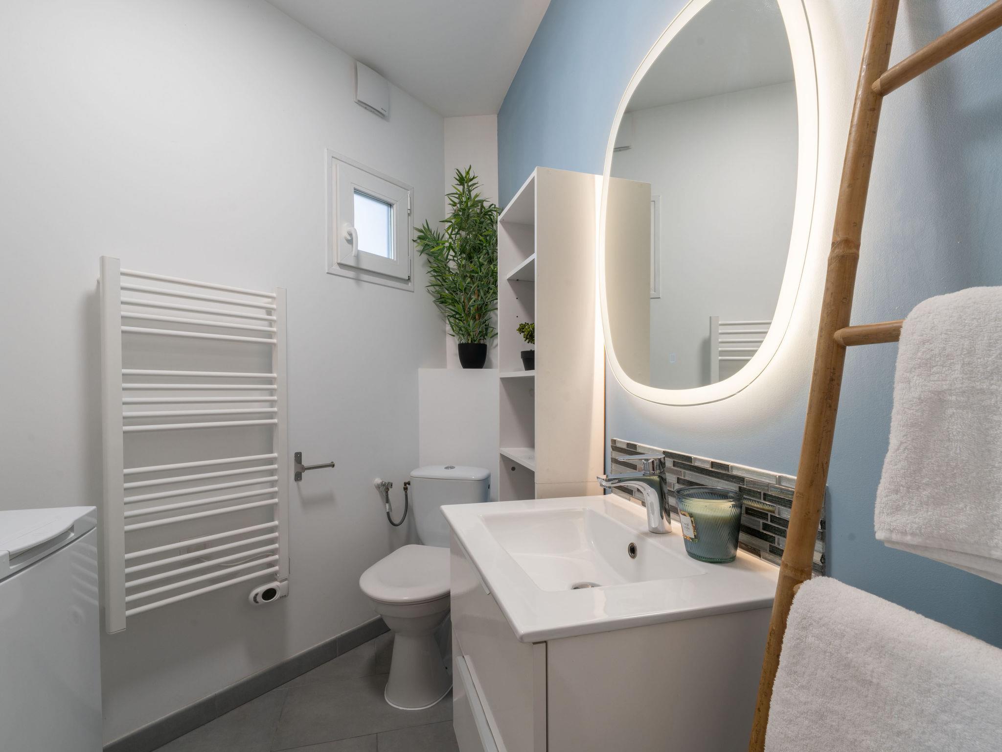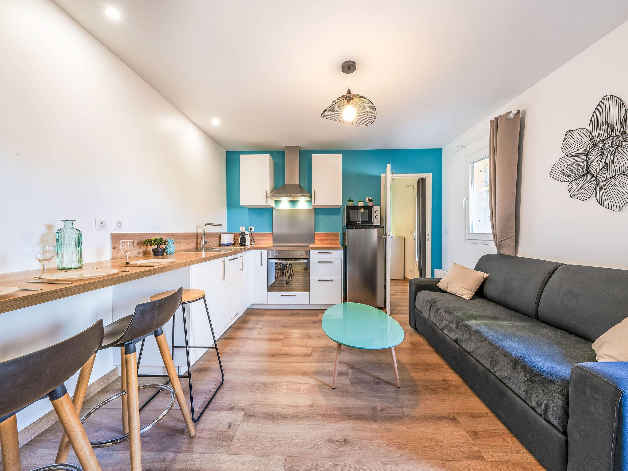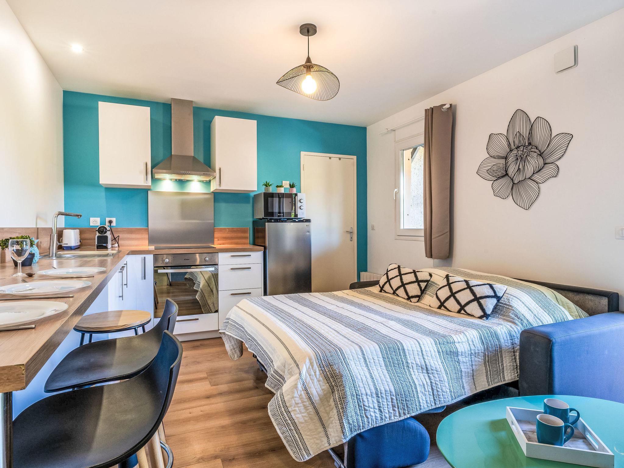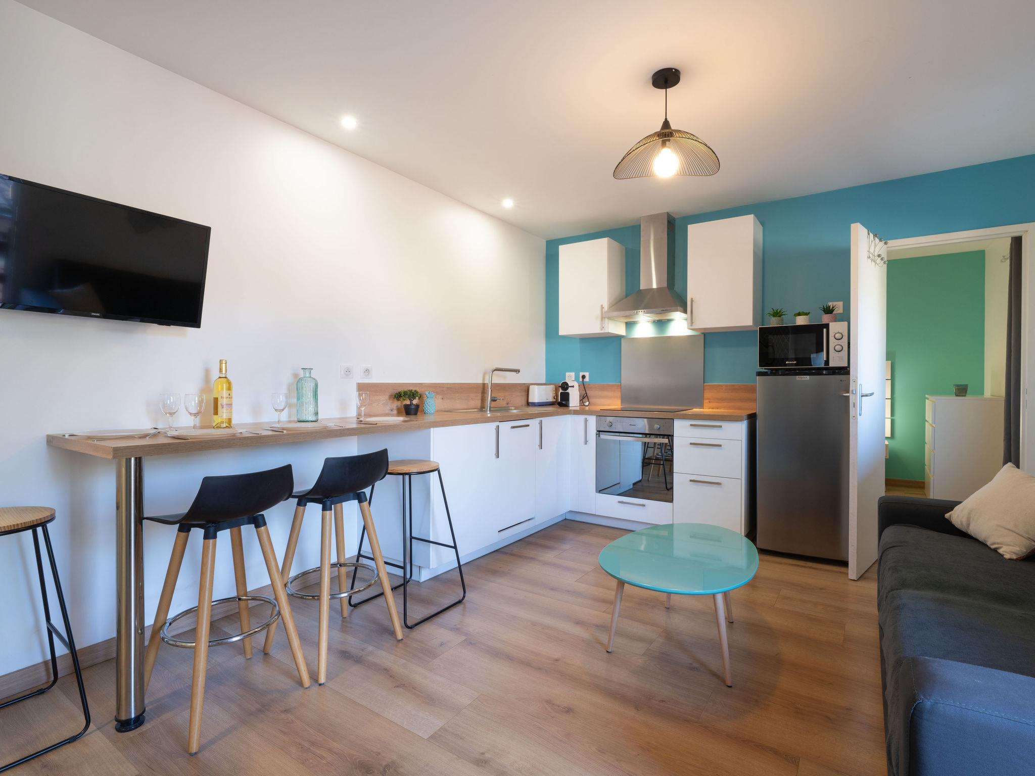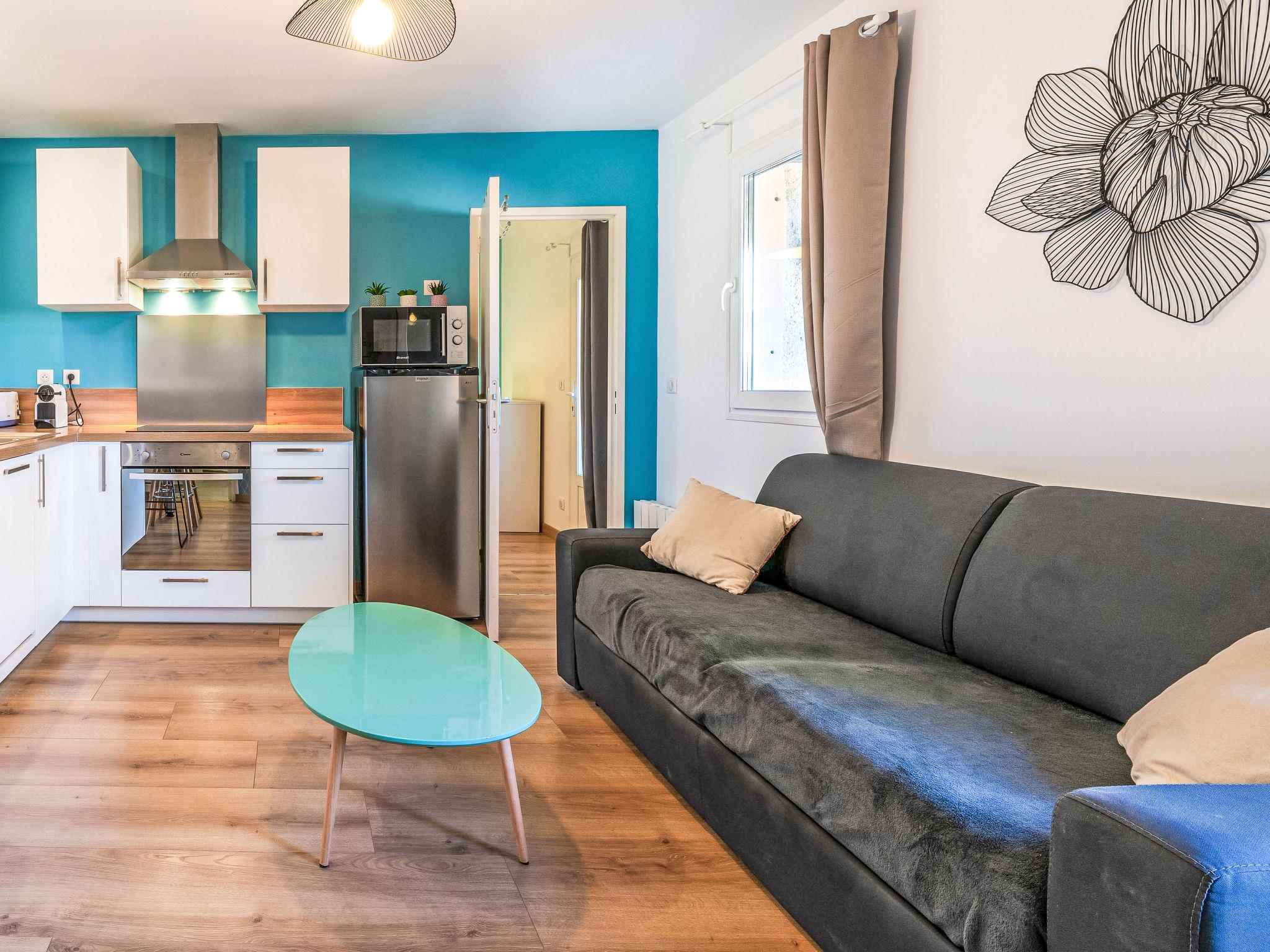 2-Zimmer-Wohnung 30 m2 im 1. Stock. Schön und geschmackvoll eingerichtet: Wohn-/Esszimmer mit 1 Doppeldiwanbett (1 x 140 cm, Länge 190 cm), TV (Flachbildschirm). Ausgang zur Terrasse. 1 Zimmer mit 1 franz. Bett (1 x 140 cm, Länge 190 cm). Offene Küche (Backofen, Geschirrspüler, 3 Induktionskochplatten, Toaster, Wasserkocher, Mikrowelle, elektrische Kaffeemaschine, Kapseln für die Kaffeemaschine (Nespresso) extra). Dusche/WC. E-Heizung. Terrasse 8 m2, Nordlage. Terrassenmöbel. Zur Verfügung: Waschmaschine, Haartrockner. Internet (WLAN, gratis). Bitte beachten: Nichtraucher-Unterkunft, kein Parkplatz. Maximal 1 kleines Haustier/Hund erlaubt. Rauchmelder, kein Fahrstuhl. Inserat einer Privatperson nach Artikel 155, IV, CGI. 3300900331454