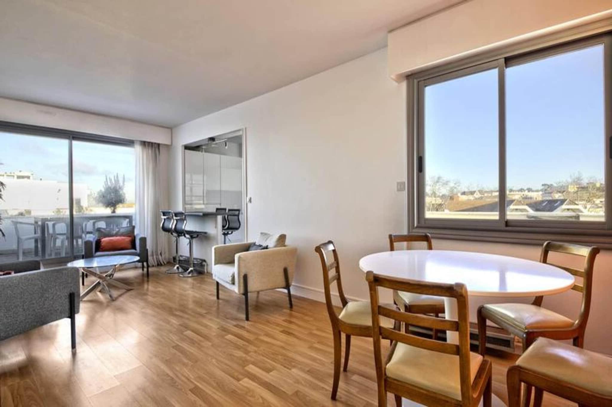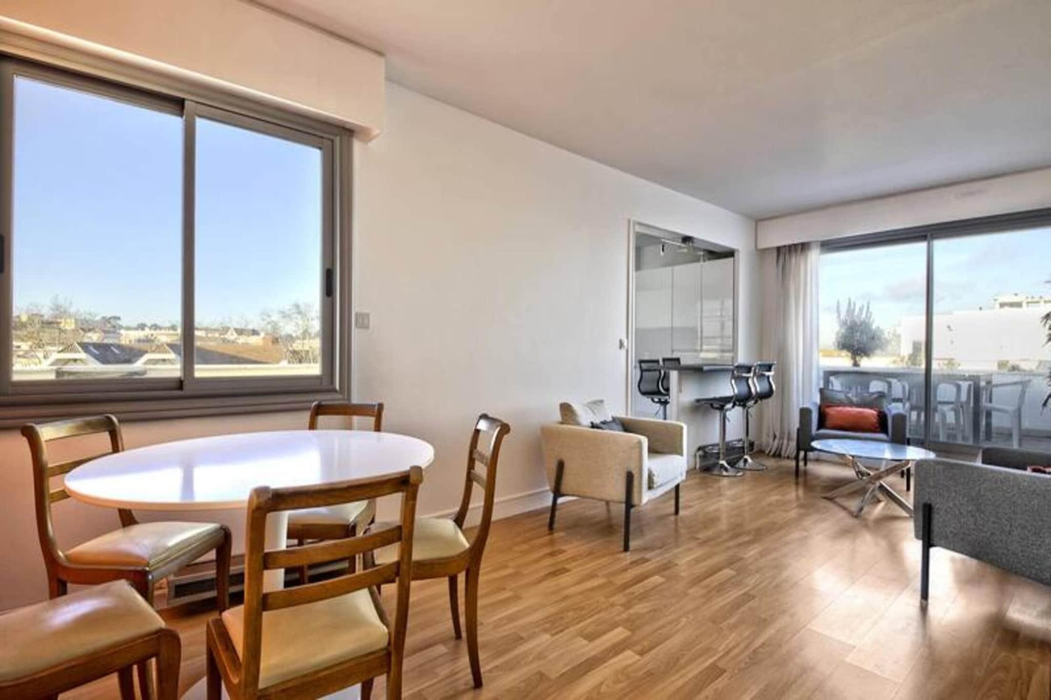 Dieses charmante, 45 m² große Apartment liegt nur 240 Meter von den Stränden von Arcachon entfernt und bietet einen perfekten Rückzugsort für alle, die sowohl Komfort als auch Bequemlichkeit suchen. Es liegt auf der vorletzten Etage eines gepflegten, sicheren Gebäudes und verfügt über ein geräumiges Schlafzimmer mit einem großen 160-cm-Bett, ein gemütliches Wohnzimmer mit einem 120-cm-Schlafsofa und eine voll ausgestattete Küche mit modernen Geräten wie einem Geschirrspüler. Waschmaschine/Trockner und ein amerikanischer Kühlschrank. Die Wohnung verfügt außerdem über eine schöne Süd- und Westterrasse, die einen atemberaubenden Blick auf die Stadt und das Becken von Arcachon bietet und sich perfekt zum Entspannen oder Essen im Freien eignet. Zu den nahegelegenen Sehenswürdigkeiten zählen das berühmte Château Deganne und das Casino zur Unterhaltung sowie das wunderschöne Becken von Arcachon, das eine Vielzahl von Wasseraktivitäten und atemberaubende Ausblicke bietet. Haustiere und Rauchen sind nicht gestattet. Weiße Bettwäsche kann bei Bedarf gemietet werden. Zu den weiteren Annehmlichkeiten gehören eine Hydromassage-Duschkabine, ein separates WC mit Waschbecken und eine große Einzelgarage im Erdgeschoss. Die Wohnung ist mit WLAN und Heizung ausgestattet und sorgt so das ganze Jahr über für Komfort. Aufgrund seiner erstklassigen Lage können Sie den Strand in nur 3 Minuten, das Zentrum von Leclerc in 4 Minuten und den städtischen Markt in 9 Minuten zu Fuß erreichen, was es ideal für diejenigen macht, die die Gegend erkunden möchten.