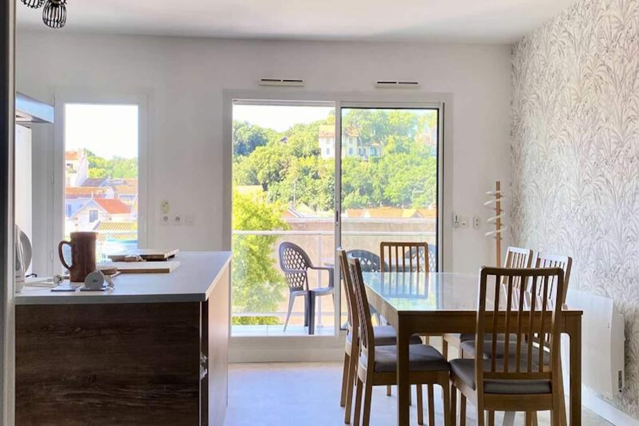Im Herzen des charmanten französischen Küstenstädtchens Lacanau bietet dieses moderne Apartment einen ruhigen Rückzugsort, nur wenige Schritte vom goldenen Sandstrand des Atlantiks entfernt. Dank seiner Südausrichtung ist die Unterkunft lichtdurchflutet und schafft eine warme und einladende Atmosphäre – perfekt für einen erholsamen Urlaub. Ob Sie Ihren Morgenkaffee auf dem Balkon genießen oder nach einem erlebnisreichen Tag entspannen, dieses Apartment bietet den idealen Rahmen für eine unvergessliche Auszeit. Treten Sie ein und entdecken Sie einen geräumigen Wohnbereich, der auf Komfort und Bequemlichkeit ausgelegt ist. Das Wohnzimmer verfügt über ein bequemes Sofa, einen Flachbildfernseher und Highspeed-WLAN und ist nahtlos mit der voll ausgestatteten Küche verbunden. Vom Backofen und der Mikrowelle bis hin zum Geschirrspüler und Waschtrockner – alle modernen Annehmlichkeiten stehen Ihnen zur Verfügung. Der Esstisch auf dem 8 m² großen Balkon lädt zu Mahlzeiten im Freien unter der Sonne ein, während die beiden durchdacht gestalteten Schlafzimmer für erholsame Nächte sorgen. Das Kinderzimmer mit Etagenbett und viel Stauraum ist ideal für jüngere Gäste, während das Hauptschlafzimmer mit einem luxuriösen Doppelbett und einem großen Kleiderschrank für Ihre persönlichen Gegenstände aufwartet. Ein elegantes Badezimmer mit moderner Dusche und Handtuchwärmer rundet das Angebot ab und bietet Ihnen alle Annehmlichkeiten von zu Hause.\n\nDas lebhafte Stadtzentrum von Lacanau mit seinen zahlreichen Restaurants, Geschäften und lokalen Märkten ist nur wenige Gehminuten entfernt. Für Outdoor-Fans ist die Gegend ein Paradies: Hier können Sie die berühmten Atlantikwellen surfen oder durch die üppigen Pinienwälder radeln. Golfplätze, Wanderwege und der idyllische Lacanau-See sind bequem zu erreichen und bieten für jeden etwas. Mit sicheren Privatparkplätzen und erstklassiger Lage ist diese Unterkunft Ihr Tor zu den schönsten Seiten der französischen Küste.\n\nOb Sie Abenteuer oder Entspannung suchen – dieses Apartment bietet die perfekte Balance aus Komfort und Erreichbarkeit. Schaffen Sie unvergessliche Erinnerungen in dieser sonnendurchfluteten Oase am Meer.