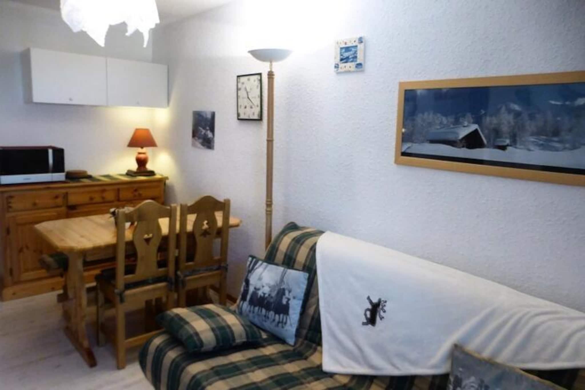 Ein charmantes Refugium in den Alpen erwartet Sie im Herzen von Val Blanc II. Hier vereinen sich Komfort und Bequemlichkeit zu einem unvergesslichen Bergurlaub. Nur wenige Meter vom lebhaften Ortskern entfernt, bietet dieses gemütliche Apartment mit seinem großen, nach Osten ausgerichteten Balkon und atemberaubendem Ausblick eine Oase der Ruhe – ideal für Skifahrer und Nicht-Skifahrer. Ob Sie die unberührten Pisten hinunterwedeln oder einfach die friedliche Alpenatmosphäre genießen möchten, diese Unterkunft ist der perfekte Ausgangspunkt für einen idyllischen Urlaub. \n\nDas Apartment ist durchdacht gestaltet und bietet Platz für bis zu vier Gäste. Der Eingangsbereich im Hüttenstil verfügt über zwei Etagenbetten, während das separate Schlafzimmer mit einem komfortablen Doppelbett für erholsame Nächte ausgestattet ist. Das Wohnzimmer lädt mit Fernseher und warmem, einladendem Ambiente zum Entspannen ein, und die ausgestattete Küchenzeile mit Geschirrspüler macht die Zubereitung von Mahlzeiten zum Kinderspiel. Ein Badezimmer und ein separates WC sorgen für zusätzlichen Komfort, und die Lage im zweiten Stock mit Aufzugszugang garantiert bequeme Fortbewegung. In den Sommermonaten steht den Gästen exklusiv der private Swimmingpool der Anlage zur Verfügung, der Ihren Aufenthalt erfrischt. Treten Sie vor die Tür und entdecken Sie das lebhafte Dorf mit seinen zahlreichen Geschäften, Restaurants und Après-Ski-Angeboten. Für Outdoor-Fans bietet die Umgebung unzählige Möglichkeiten für Abenteuer – vom Skifahren und Snowboarden im Winter bis zum Wandern und Mountainbiken im Sommer. Die majestätische Alpenkulisse und die klare Bergluft bilden die perfekte Kulisse für unvergessliche Momente. Ob Sie nun aufregende Outdoor-Aktivitäten oder einen ruhigen Rückzugsort suchen – dieses Apartment bietet Ihnen beides. Dank seiner erstklassigen Lage, der komfortablen Ausstattung und der atemberaubenden Aussicht verspricht es einen unvergesslichen Aufenthalt im Herzen der französischen Alpen.