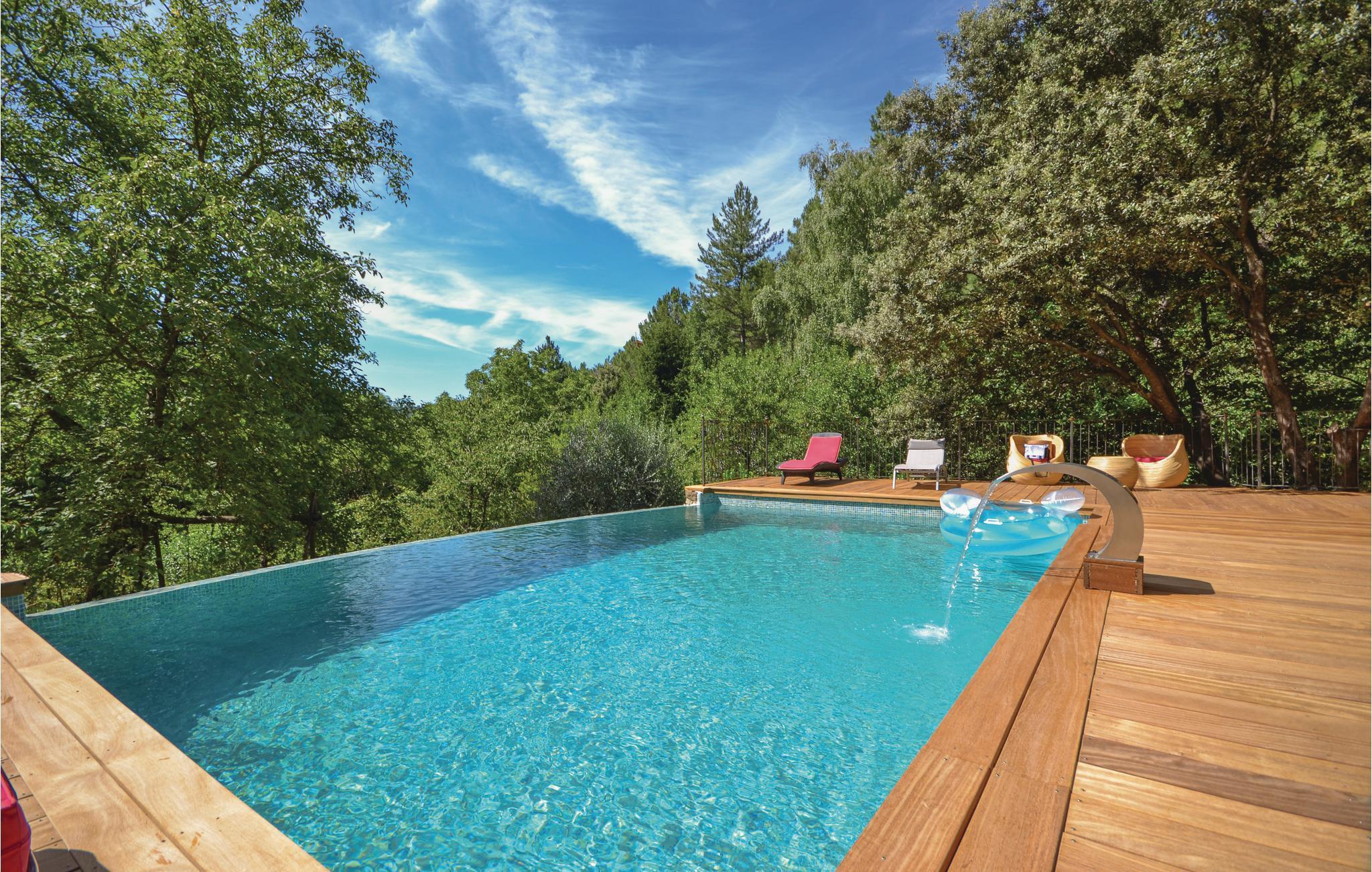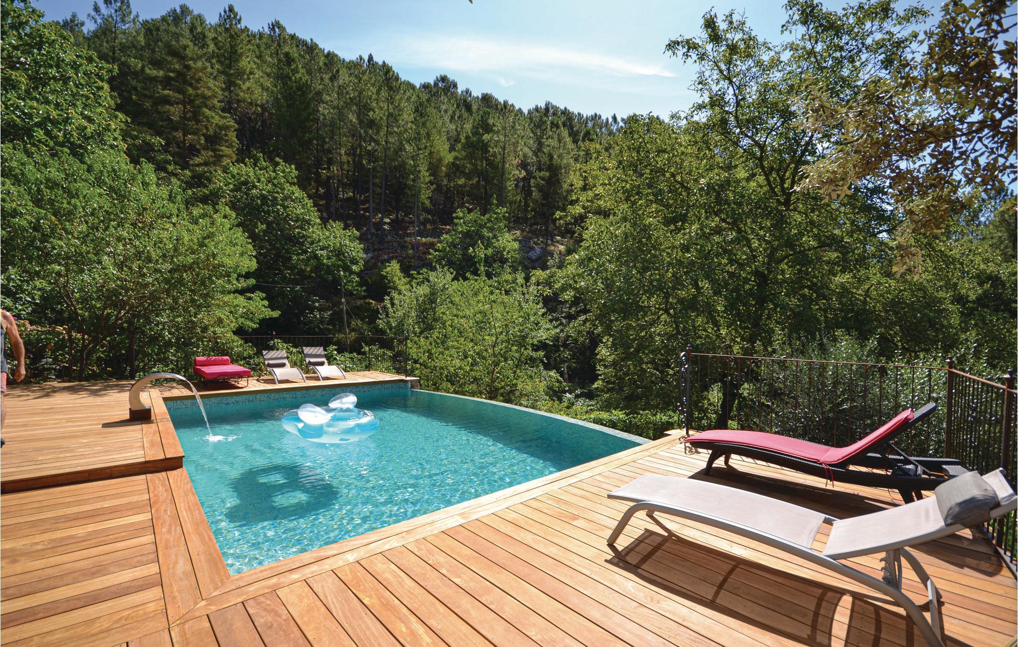 Dieses charmante Häuschen in den Cevennen ist eine wahre Ruheoase in der Natur und verzaubert seine Gäste mit Privatpool sowie einer schönen Einrichtung und Küche. Unterhalb des Grundstücks erwartet Sie ein angelegter Privatstrand am Fluss mit klarem Badewasser. Gelegen in der Nähe der Ardèche und dem Gard ist dies genau die richtige Adresse für Reisende, die im Urlaub gern Natur und Sport vereinen möchten. Das uneinsehbare Schwimmbad ist von einer Holzterasse umrundet und in einem wunderschönen Garten gelegen. Besuchen Sie das beeindruckende mittelalterliche Château d'Aujac sowie sein dazugehörender, bezaubernde Weiler. Es gibt auch sportliche Ausflugsmöglichkeiten wie Kanoe oder Canyoning. In der Region gibt es wunderschöne Märkte zu entdecken. Die Terrasse der nebenan wohnenden Vermieter befindet sich vorne, ihre hingegen auf der Rückseite des Hauses. Die Zufahrt ist 300 m nicht geteert.