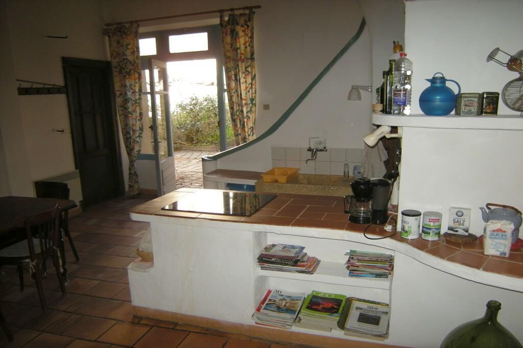 Das Ferienhaus ist entstanden aus dem Komplex des ehemaligen Cafes (Ancien Cafe) und liegt in dem 250 Seelen großen Weindorf Camplong d'Aude im Herzen der Corbieres. Es ist im altfranzösischen rustikal-gemütlichen Stil eingerichtet. Die alten Balkendecken, die hohen Fenster mit den grazielen Beschlägen und handgefertigten Scheiben, die großen schweren Türen mit den abgenutzten klinken, die terracotta Böden in vielen variationen des typischen rotbraun bis gelb auf denen die Betten ihre Spuren hinterlassen haben. Das Ferienhaus hat einen grünen Hof wo man im Sommer fast immer die Mahlzeiten einnimmt und grillen kann .