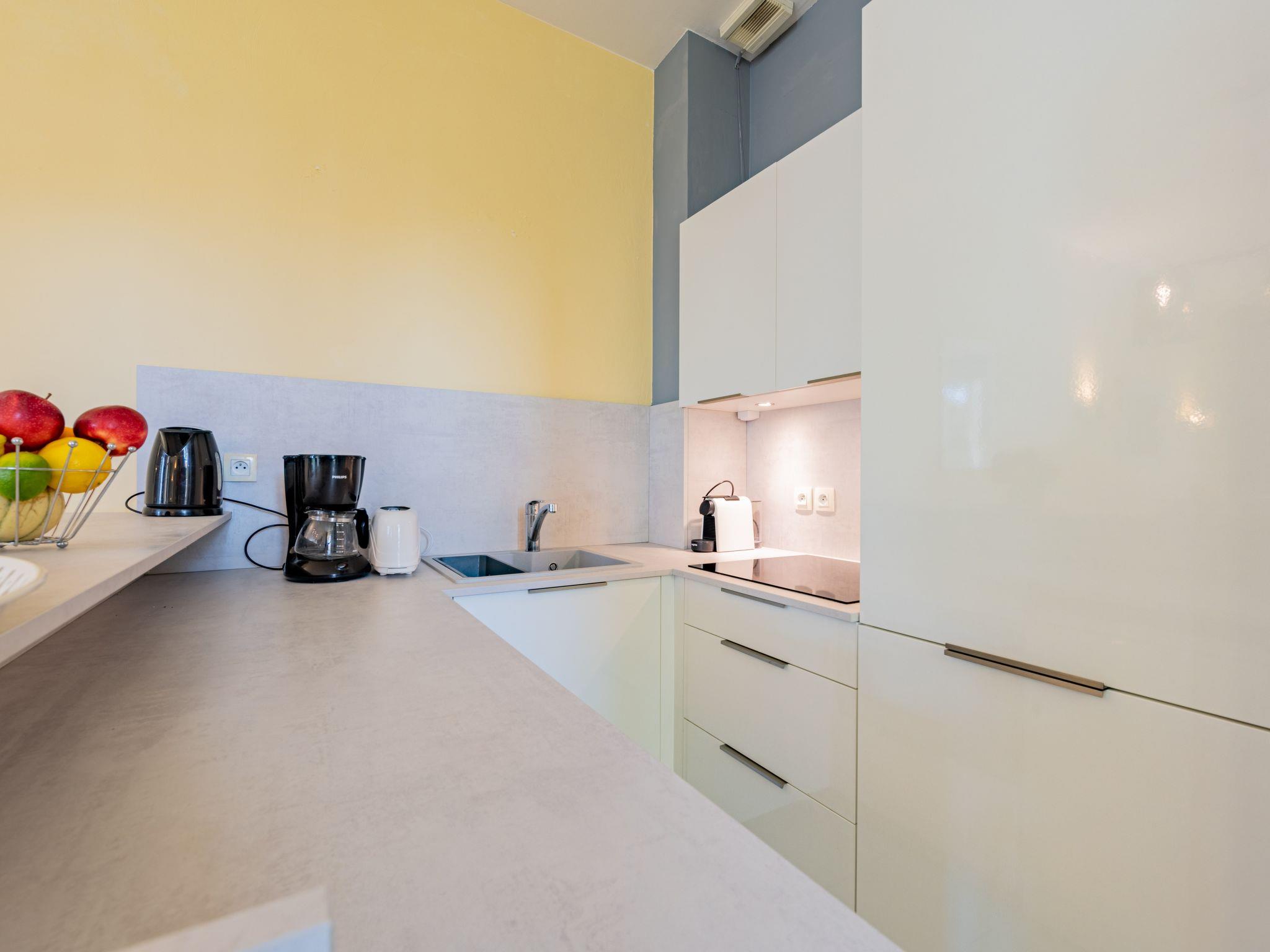 3-Zimmer-Wohnung 75 m2, im erhöhten Erdgeschoss. Komfortabel und schön eingerichtet: Wohn-/Esszimmer mit 1 Doppeldiwanbett (160 cm, Länge 200 cm), TV (Flachbildschirm), Klimaanlage. Ausgang zur Terrasse. 1 Zimmer mit 1 franz. Bett (160 cm, Länge 200 cm), Klimaanlage. 1 Zimmer mit 2 Betten (80 cm, Länge 200 cm), Klimaanlage. Offene Küche (Geschirrspüler, 3 Induktionskochplatten, Toaster, Wasserkocher, Tiefkühler, elektrische Kaffeemaschine, Kapseln für die Kaffeemaschine (Nespresso) extra, Kombinationsmikrowelle). Bad, Dusche/WC. Klimaanlage, Warmluftheizung. Grosse Terrasse 300 m2, Südlage. Terrassenmöbel. Sehr schöne Sicht auf das Meer. Zur Verfügung: Internet (Wireless LAN, gratis). Parkplatz beim Haus. Bitte beachten: Nichtraucher-Unterkunft. Rauchmelder. Bitte beachten Sie: Die 300 m² große Terrasse wird von den 4 Wohnungen im Erdgeschoss gemeinsam genutzt. 06029016041WF