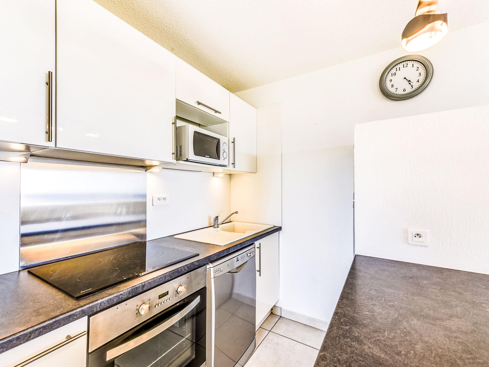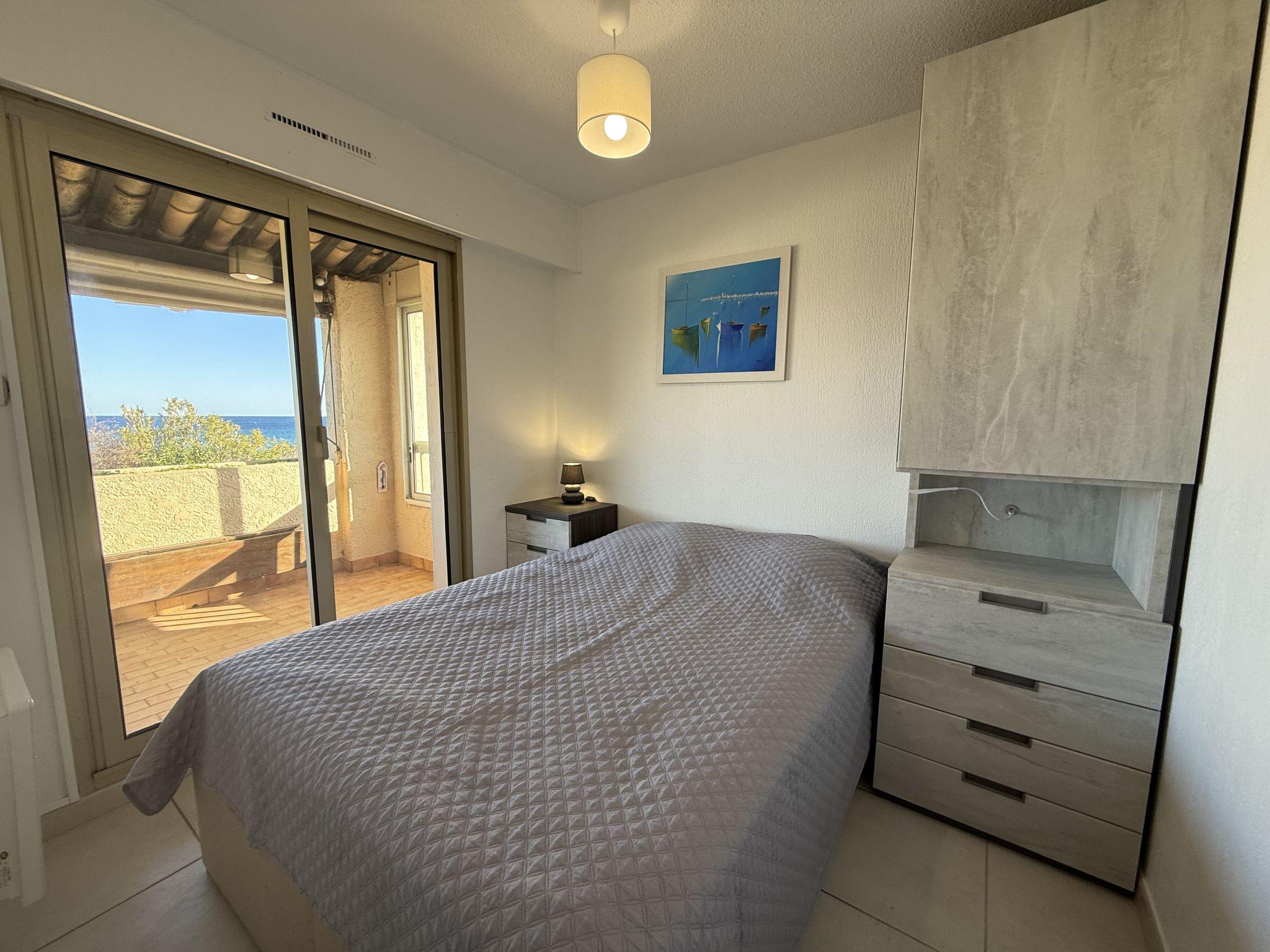 3-Zimmer-Wohnung 35 m2 im 1. Stock, Südlage. Zweckmässig und komfortabel eingerichtet: Wohn-/Esszimmer mit Panoramafenster mit 1 Doppeldiwanbett (1 x 140 cm, Länge 190 cm), TV (Flachbildschirm), Klimaanlage und elektrischem Rollladen. Ausgang zur Terrasse. 1 Zimmer mit Panoramafenster mit 1 franz. Bett (1 x 140 cm, Länge 190 cm), E-Heizofen. Ausgang zur Terrasse. 1 Zimmer mit 1 x 2 Etagenbetten (80 cm, Länge 190 cm), E-Heizofen. Offene Küche (Backofen, Geschirrspüler, 3 Glaskeramikplatten, Toaster, Wasserkocher, Mikrowelle, Tiefkühler, elektrische Kaffeemaschine). Dusche, sep. WC. E-Heizung, Boiler (100 Liter). Terrasse 11 m2, Südlage. Terrassenmöbel, Liegestühle (2). Schöne Sicht auf das Meer. Zur Verfügung: Waschmaschine. Internet (Wireless LAN, extra). Parkplatz Nr. 15 (eingezäunt). Bitte beachten: TV nur FR. Rauchmelder.