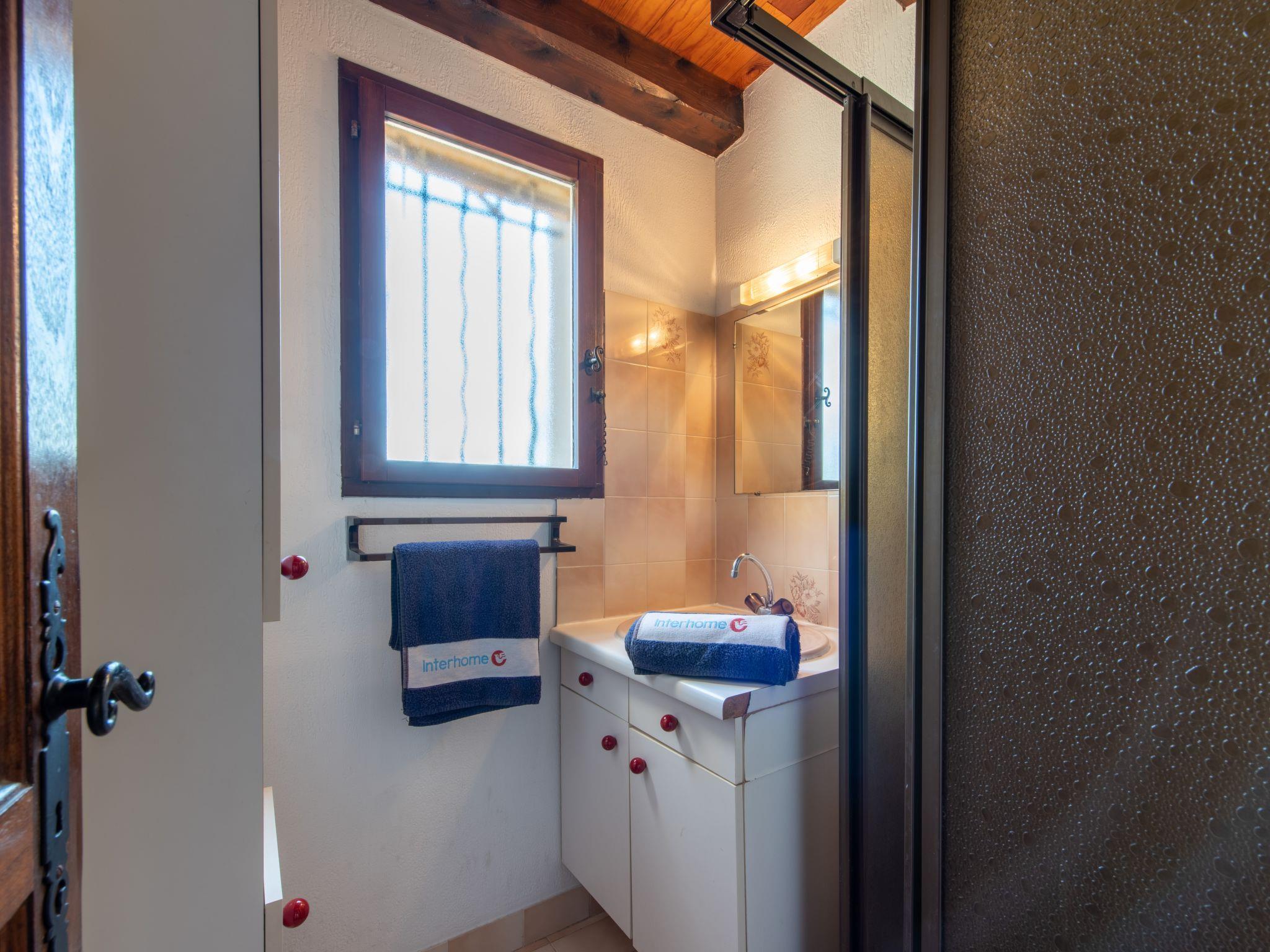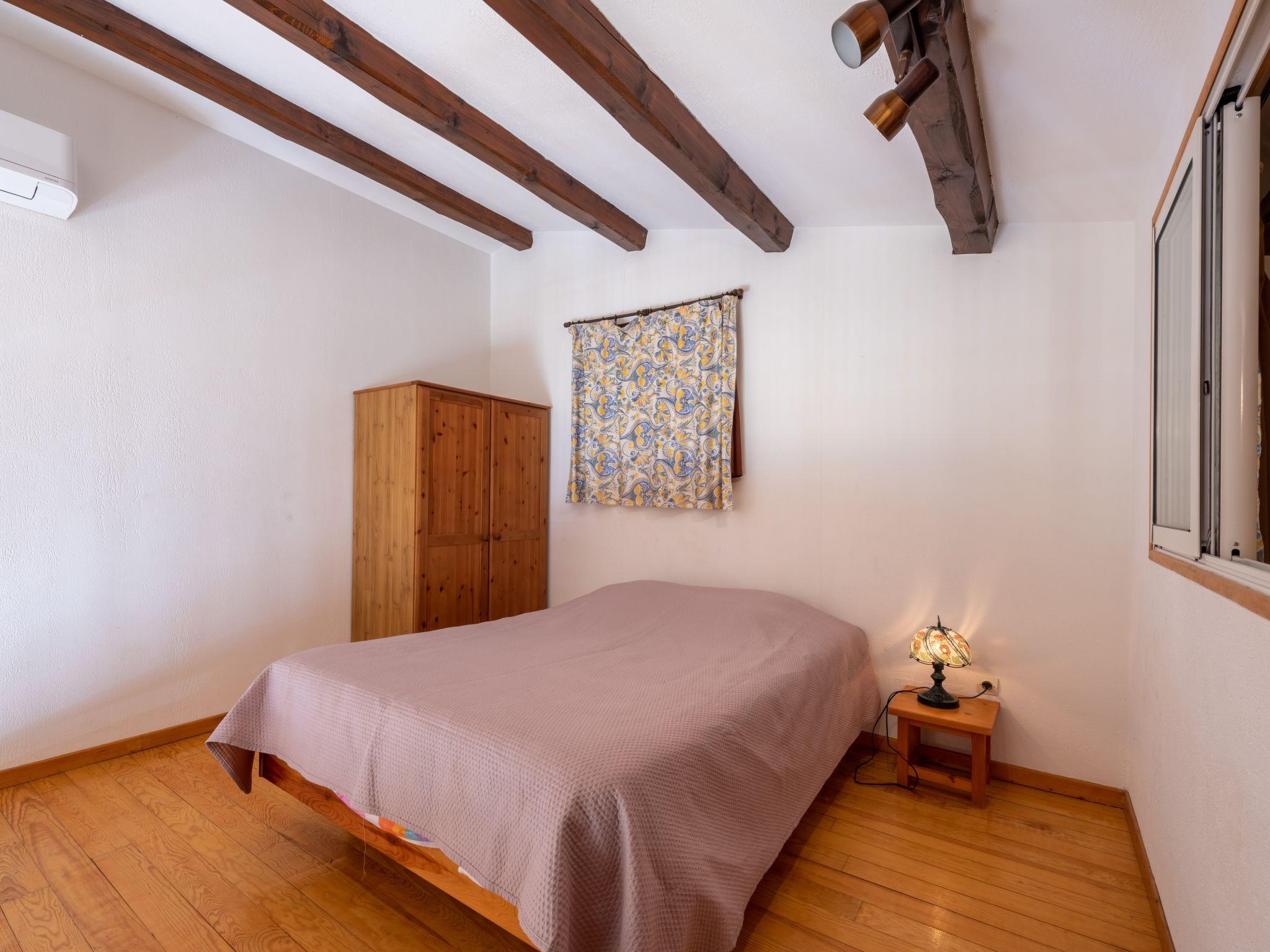 3-Zimmer-Wohnung 48 m2 auf 2 Stockwerken im 1. Stock, Südlage. Zweckmässig und komfortabel eingerichtet: Eingang. Wohn-/Esszimmer mit Schiebetür mit TV (Flachbildschirm), Klimaanlage. Ausgang zur Terrasse. Küche (Geschirrspüler, 3 Induktionskochplatten, Toaster, Wasserkocher, elektrische Kaffeemaschine, Kombinationsmikrowelle, Fondue Set (Käse)). Obergeschoss: Durchgangszimmer abgeschrägtes, offenes mit 1 franz. Bett (140 cm, Länge 190 cm). 1 Zimmer mit 2 Betten (90 cm, Länge 190 cm), Ventilator. 1 Zimmer mit 1 franz. Bett (140 cm, Länge 190 cm). Dusche, sep. WC. E-Heizung. Terrasse, Südlage. Terrassenmöbel. Zur Verfügung: Waschmaschine, Bügeleisen. Internet (Wireless LAN, extra). Parkplatz Nr. 7. Bitte beachten: Rauchmelder.