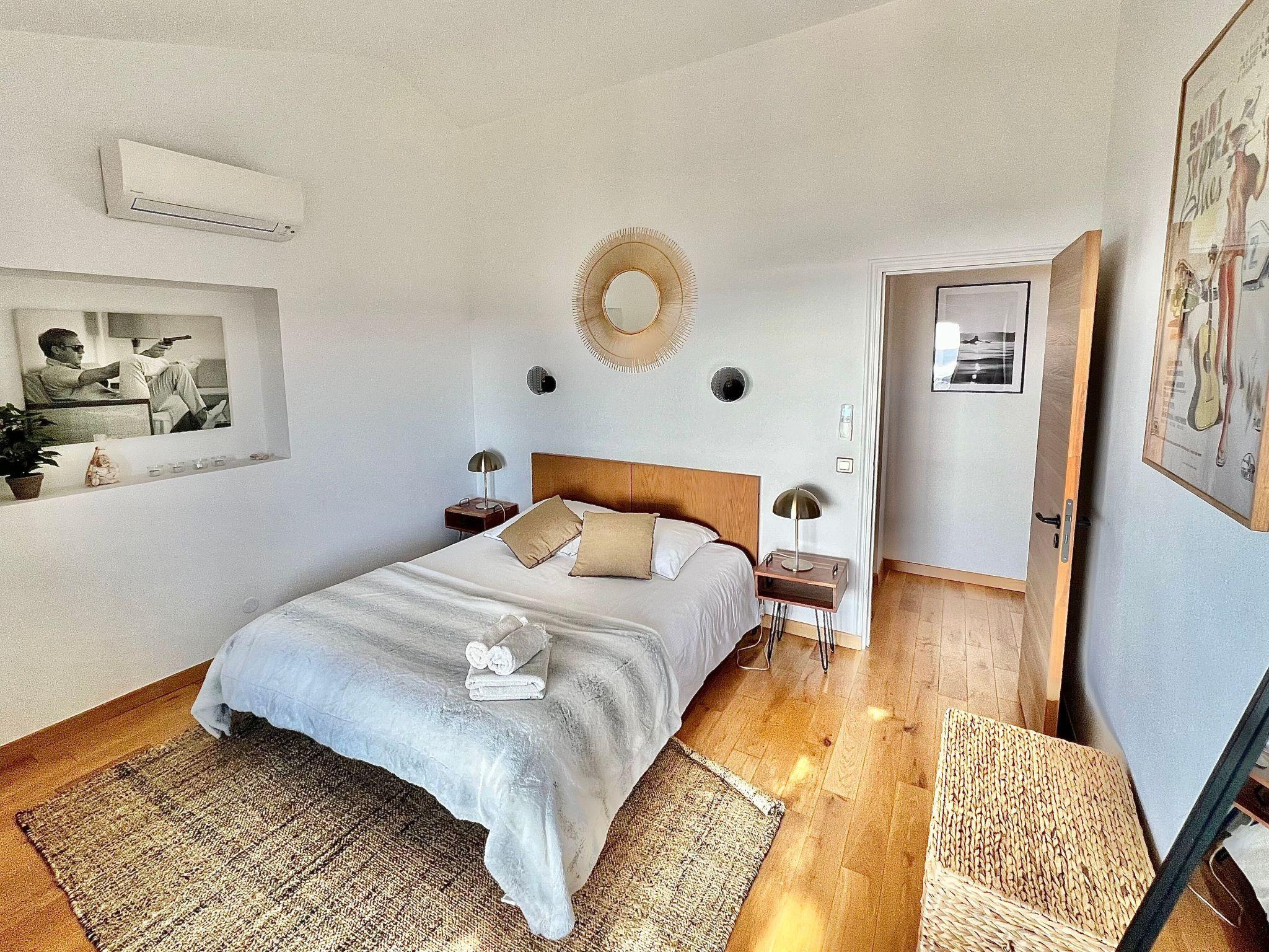Klimatisierte Master-Suite im Obergeschoss: Bett 160 x 200 cm mit seinem Badezimmer + begehbarer Kleiderschrank.