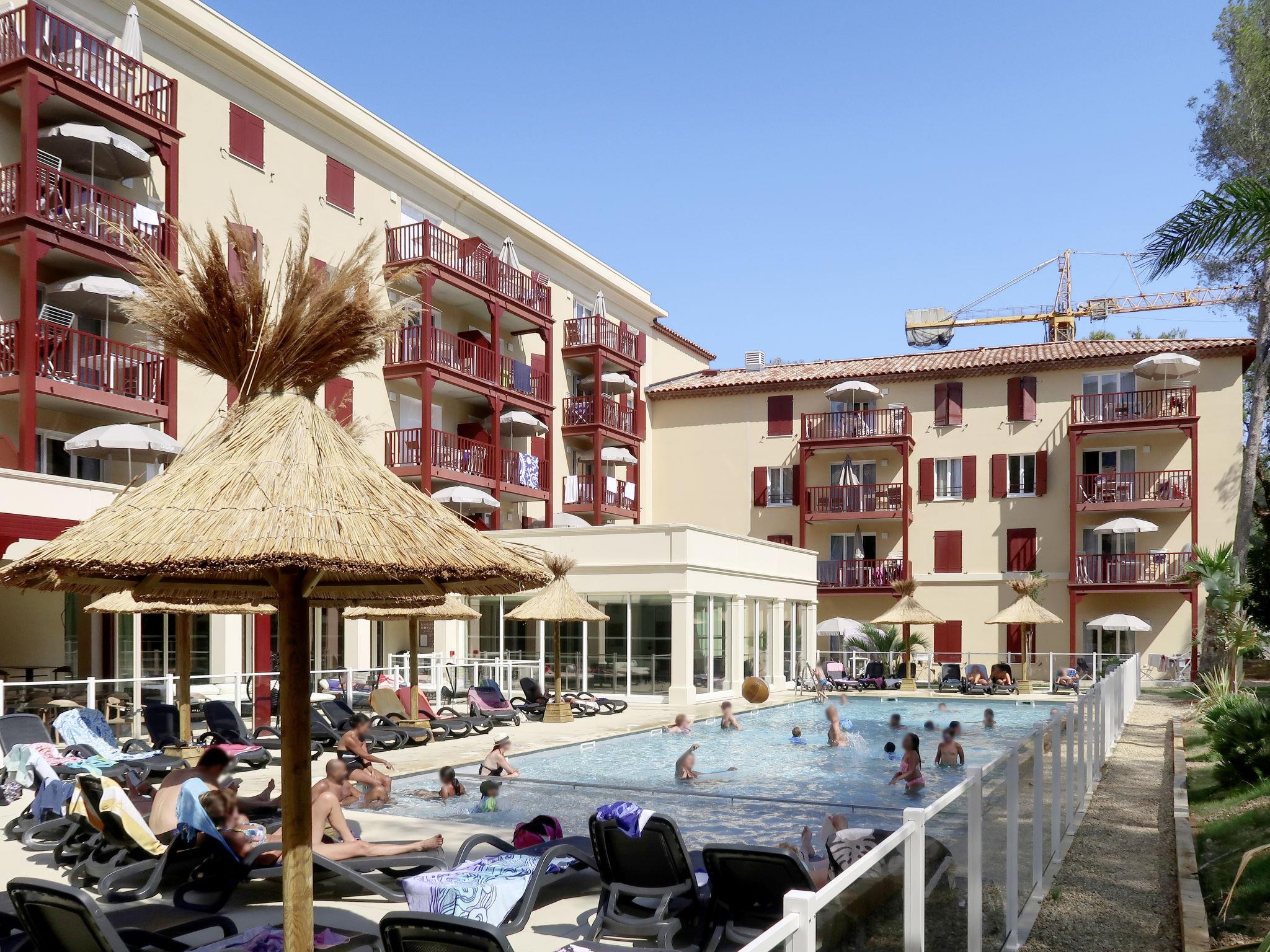 Ferienanlage "Les Canissons", Baujahr 2019. 95 Wohnungen in der Residenz. 800 m vom Zentrum von Cavalaire, 20 km vom Zentrum von St. Tropez, 59 km vom Zentrum von Toulon, 700 m vom Meer. Zur Mitbenutzung: Grundstück (eingezäunt), Schwimmbad beheizt (7 x 20 m, 140 cm tief, saisonale Verfügbarkeit: 15.Apr. - 15.Okt.). Kinderbecken, Aussendusche, Boccia. In der Anlage: Empfang, Frühstücksraum, Sauna, Fitnessraum, Massage (extra). Dampfbad, Waschmaschine, Wäschetrockner (zur Mitbenutzung, extra). Frühstück (extra). Parkplatz (beschränkte Anzahl), Gemeinschaftsgarage. Einkaufsgeschäft 300 m, Restaurant, Sandstrand "Bonporteau" 700 m. Bitte beachten: Die Residenz wird durch elektrische Tore geschlossen. Das Foto ist nur ein Hausbeispiel. Die Mietobjekte können sich in Wohnfläche, Raumaufteilung, Ausstattung und Einrichtung unterscheiden.
