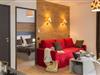 Kochnische(Toaster, Kochherd, Mikrowelle, Spülmaschine, Kühlschrank), Wohn-/Schlafzimmer(Doppelschlafcouch), Schlafzimmer(Doppelbett oder 2 Einzelbetten), Badezimmer(Badewanne oder Dusche, Toilette)