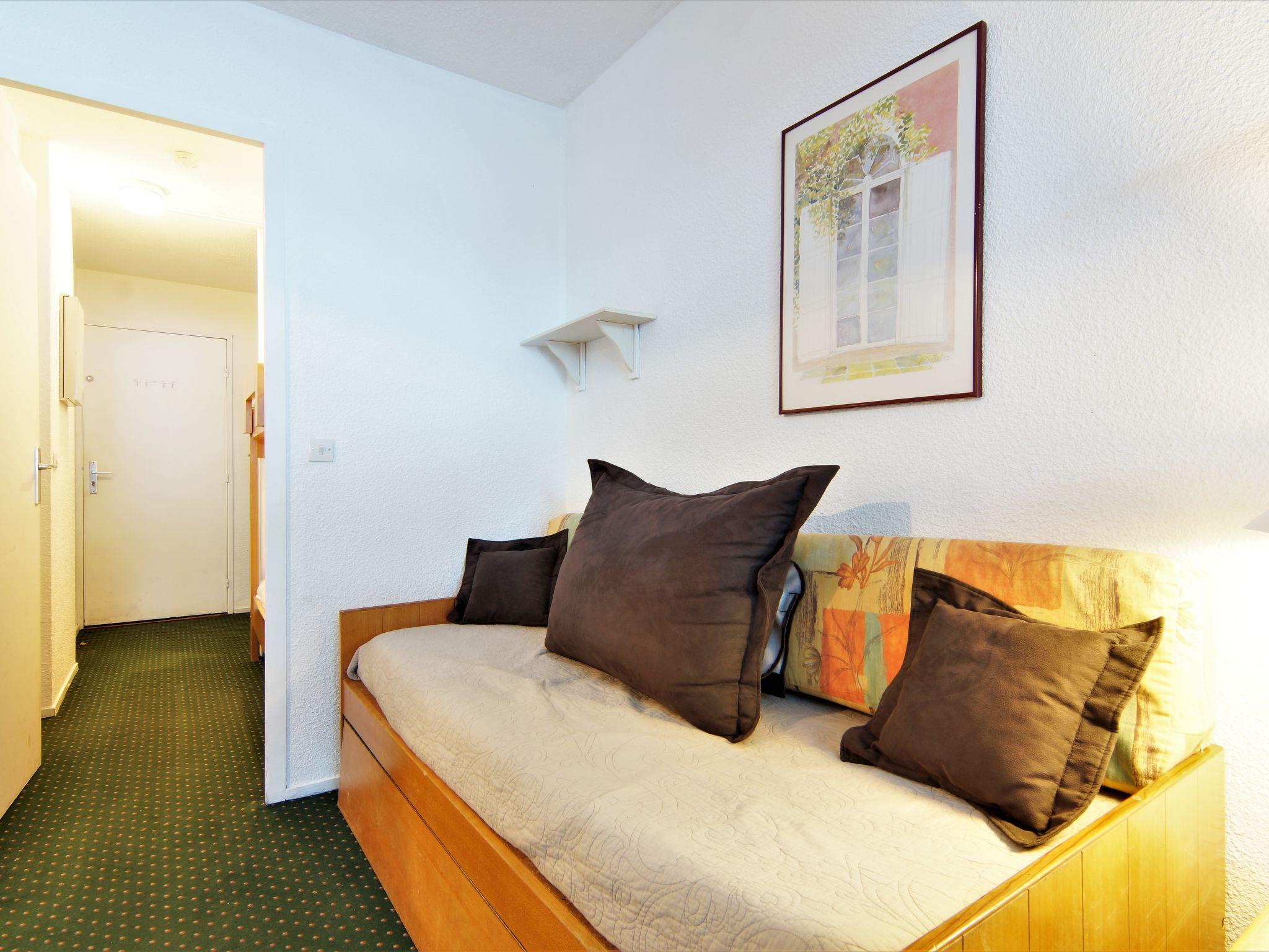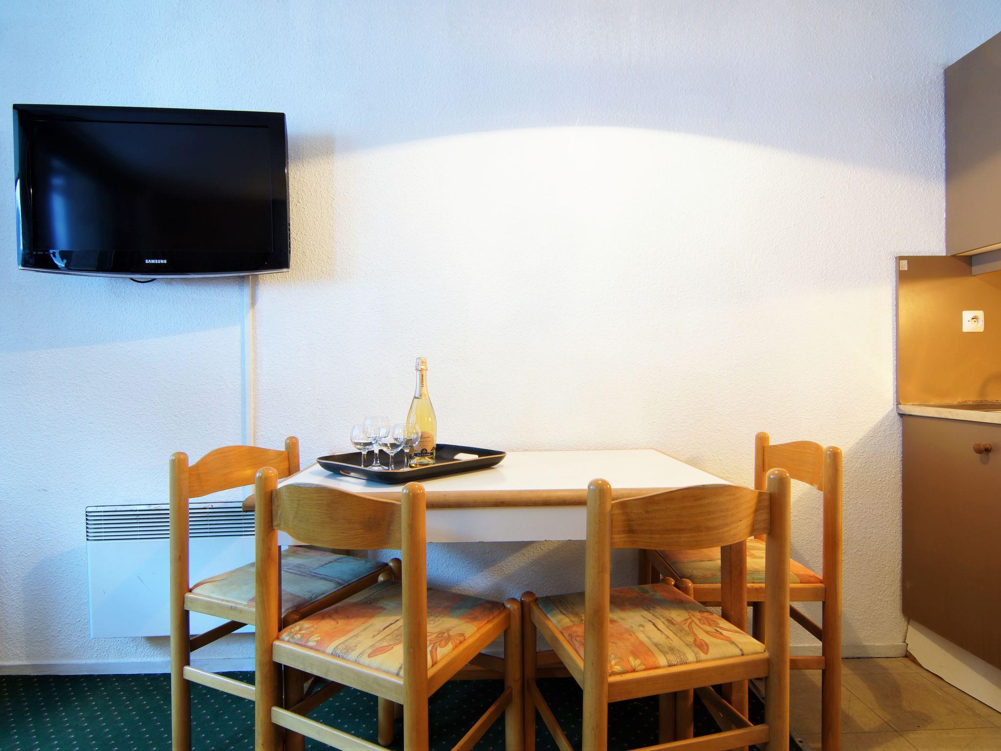 1-Zimmer-Wohnung 23 m2 im 4. Stock. Einfach eingerichtet: Wohn-/Esszimmer mit 2 Betten (80 cm, Länge 190 cm), TV. Ausgang zum Balkon. Eingang mit 1 x 2 Etagenbetten (80 cm, Länge 190 cm). Kochnische (2 Kochplatten, Mini-Backofen, Geschirrspüler, Wasserkocher, elektrische Kaffeemaschine). Bad, sep. WC. E-Heizung. Balkon, Südlage. Sicht auf die Berge. Zur Verfügung: Internet (WLAN, extra). Bitte beachten: kein Parkplatz. Maximal 1 Haustier/Hund erlaubt. TV nur FR. Rauchmelder. 74056002552RY