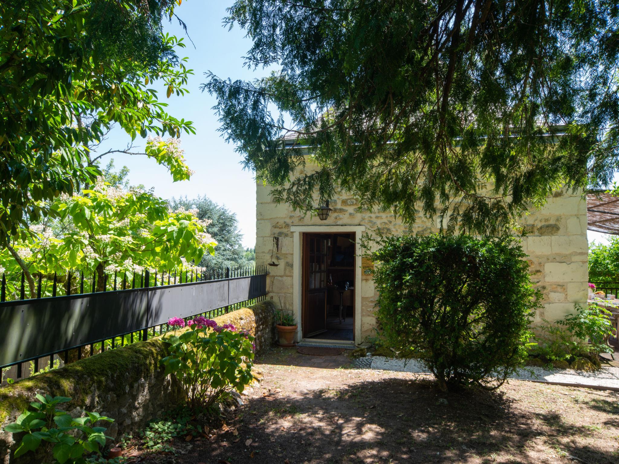 "Le Pigeonnier", 2-Zimmer-Haus 35 m2 auf 2 Stockwerken. Objekt geeignet für 2 Erwachsene + 1 Kind. Schön und gemütlich eingerichtet: 1 Zimmer mit 1 franz. Bett (140 cm, Länge 190 cm), Dusche/WC. Ausgang zum Garten. Obergeschoss: (steile Treppe) Wohnzimmer mit 1 Diwanbett (80 cm, Länge 200 cm), Essecke, Sat-TV und Radio. Ausgang zur Terrasse. Kochnische (Backofen, Geschirrspüler, 2 Glaskeramikplatten, Mikrowelle, Tiefkühler, elektrische Kaffeemaschine). E-Heizung. Terrasse überdacht. Terrassenmöbel, Gartengrill (mobil). Schöne Sicht auf die Landschaft. Zur Verfügung: Kinderhochstuhl, Babybett. Internet (Wireless LAN, gratis). Bitte beachten: Rauchmelder.