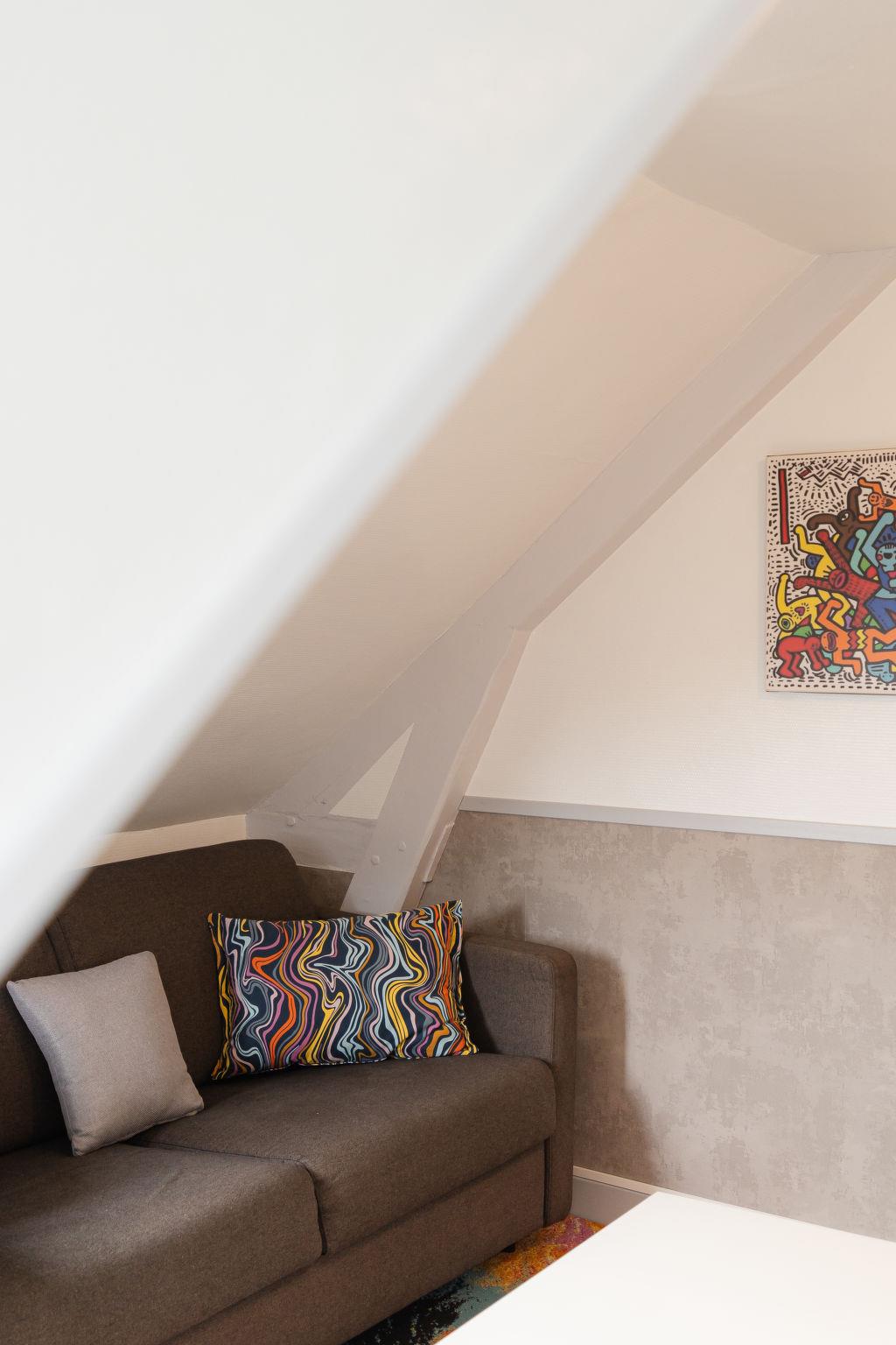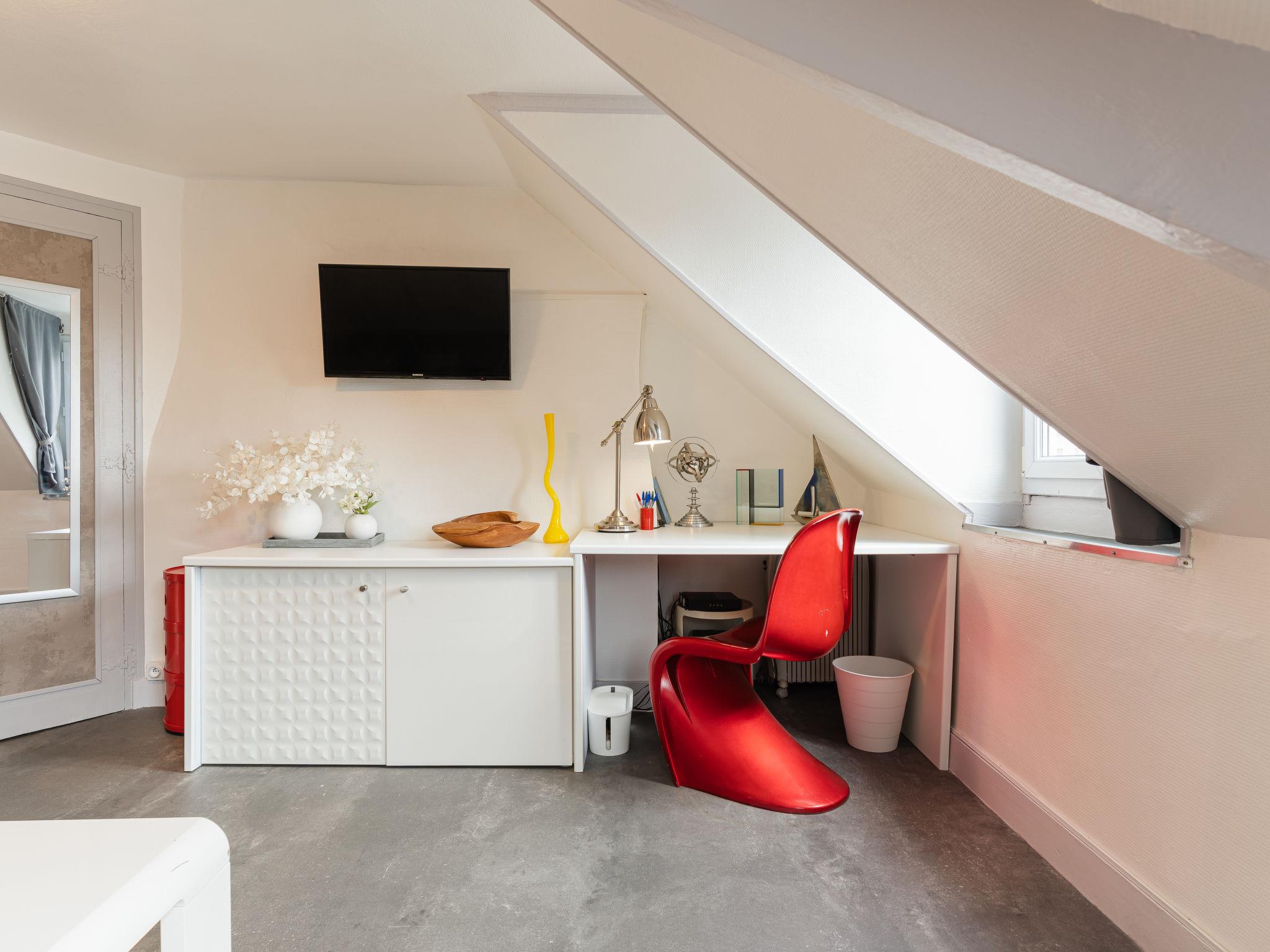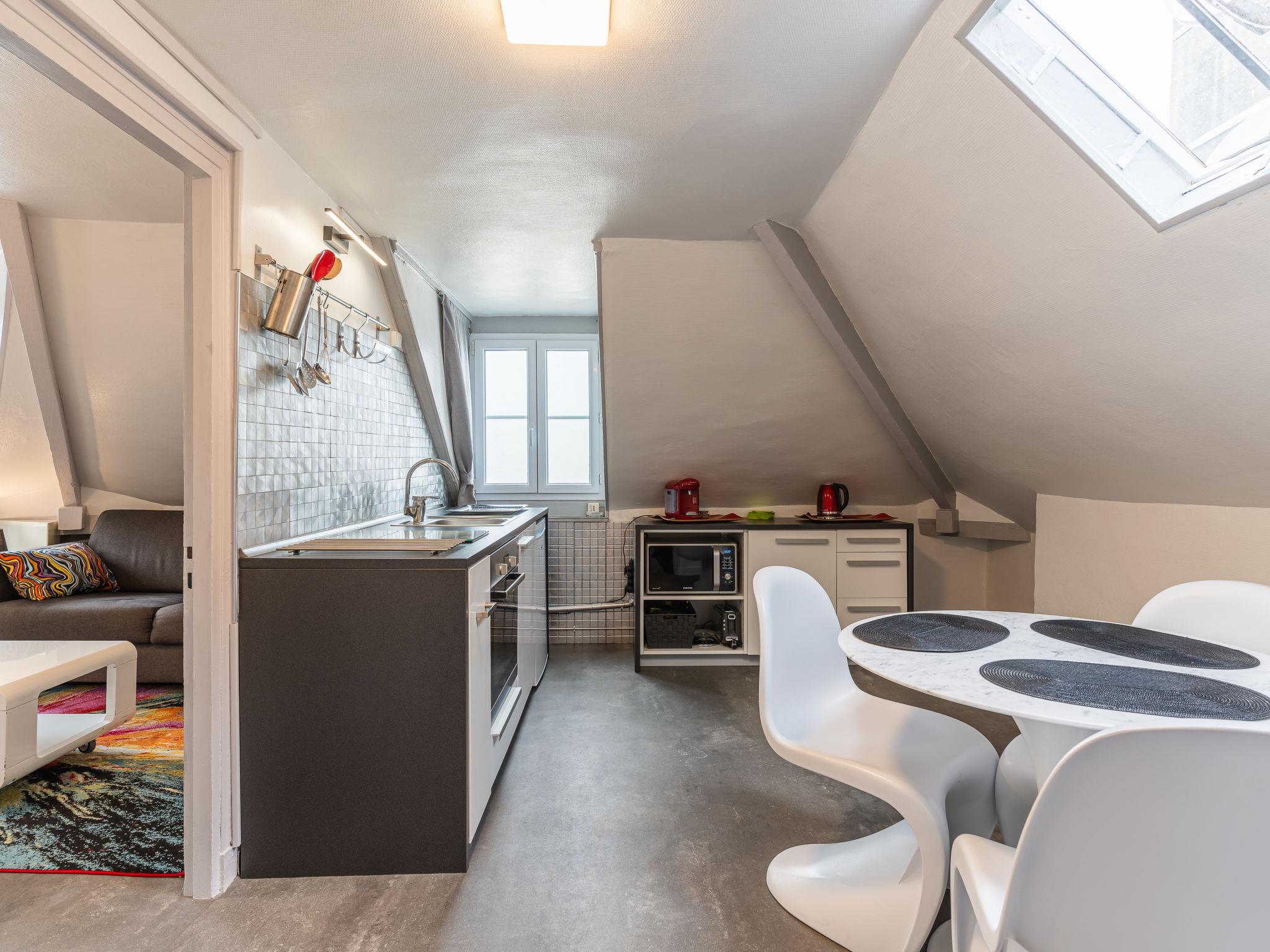 1-Zimmer-Attikawohnung 19 m2 im 3. Stock. Objekt geeignet für 2 Erwachsene. Kleines Wohn-/Schlafzimmer mit 1 Bett (140 cm, Länge 190 cm), TV (Flachbildschirm). Kochnische (Backofen, 2 Induktionskochplatten, Toaster, Wasserkocher, Mikrowelle, elektrische Kaffeemaschine). Dusche/WC. E-Heizung. Schöne Sicht auf das Städtchen. Zur Verfügung: Internet (WLAN, gratis). Bitte beachten: Wohnung auf Strassenseite. Nichtraucher-Unterkunft, kein Parkplatz. Rauchmelder, kein Fahrstuhl. Inserat einer Privatperson nach Artikel 155, IV, CGI. 147150012066S