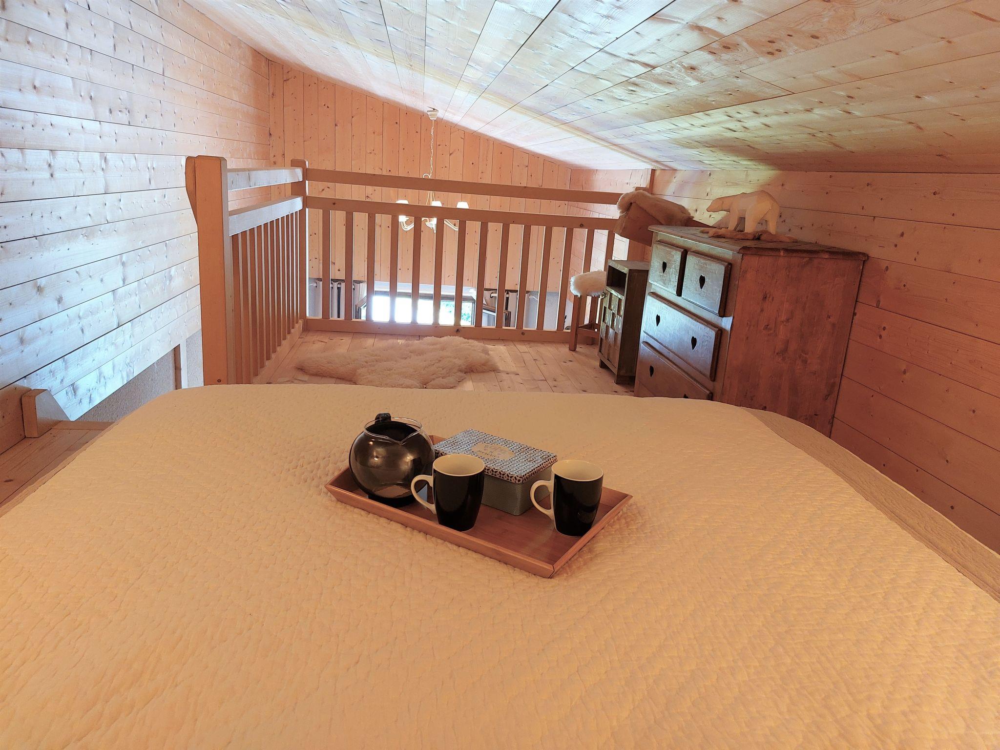 "La Jacquerie", 1-Zimmer-Studio 32 m2 im 1. Stock. Objekt geeignet für 2 Erwachsene + 2 Kinder. Wohn-/Esszimmer mit TV. Ausgang zum Balkon. Abgeschrägte, offene Galerie mit 1 franz. Bett (160 cm, Länge 200 cm). Kabine mit 1 x 2 Etagenbetten (80 cm, Länge 190 cm), 1 Schlafmöglichkeit (80 cm, Länge 190 cm). Offene Küche (2 Kochplatten, Geschirrspüler, Toaster, Wasserkocher, elektrische Kaffeemaschine, Kapseln für die Kaffeemaschine (Senseo) extra). Bad, sep. WC. E-Heizung. Kleiner Balkon 5 m2, Ostlage. Parkplatz Nr. B20 (überdacht). Bitte beachten: TV nur FR. Rauchmelder. Anstelle eines abgeschlossenen Schlafzimmers befinden sich manche Schlafplätze in einem offenen Bereich (Galerie, Nische etc.). Inserat einer Privatperson nach Artikel 155, IV, CGI.
