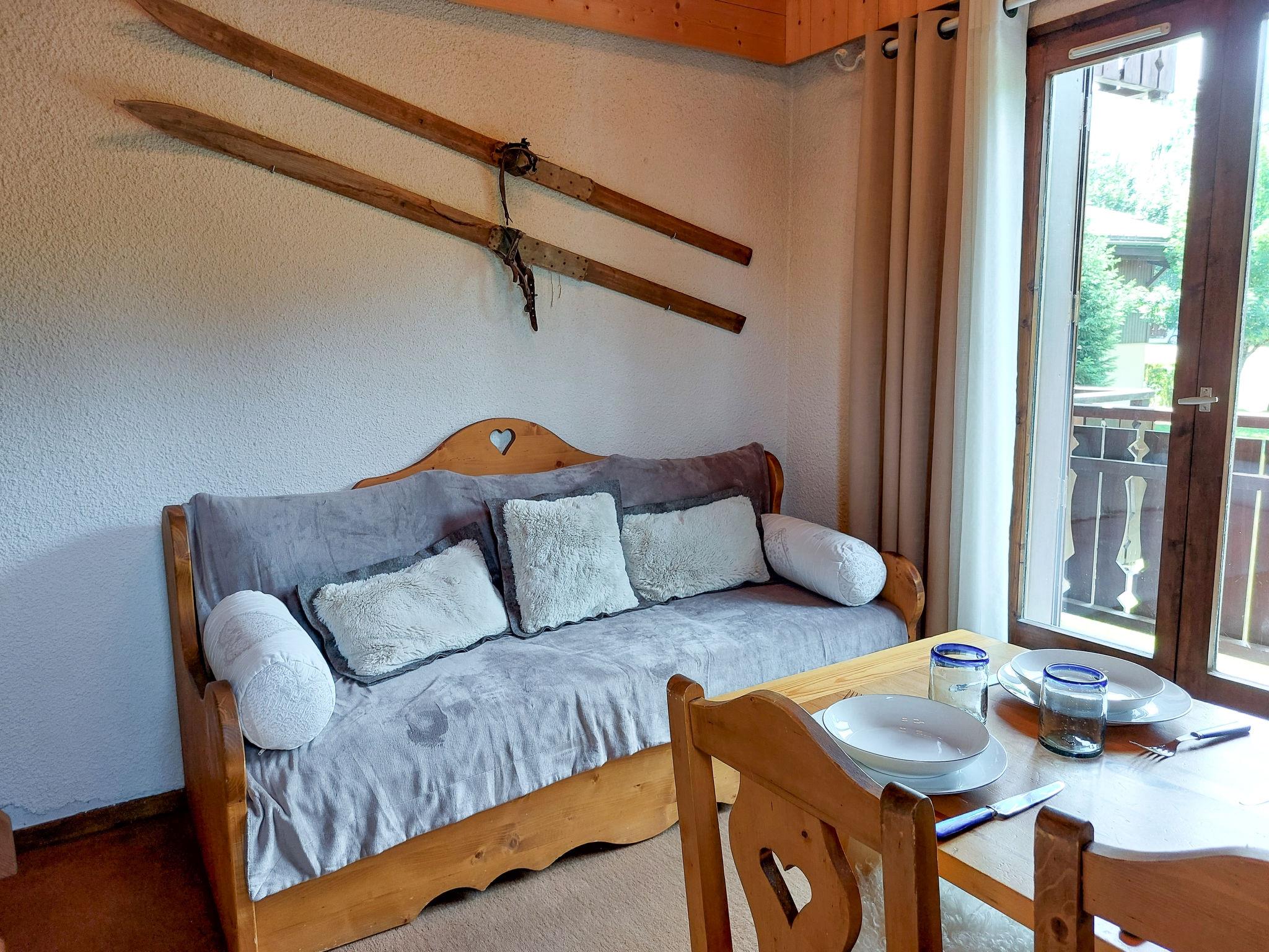 Appartementhaus "La Jacquerie", auf 2 Stockwerken. Ruhige Lage am Hang, 1.2 km vom Skigebiet. Im Hause: Skiraum. Im Winter bitte Schneeketten mitbringen. Parkplatz. Supermarkt 1.3 km, Restaurant 500 m, Bushaltestelle "demi-lune" 1.2 km, Bahnstation "Sallanches-Combloux-Megève" 11 km, Hallenbad 3.1 km. Skisportanlagen 1.2 km, Skipisten 1.2 km, Ski-Kindergarten 1.2 km, Langlaufloipe 4 km. Bekannte Skigebiete sind gut erreichbar: Evasion Mont-Blanc 1.2 km. Zugang über Treppen.