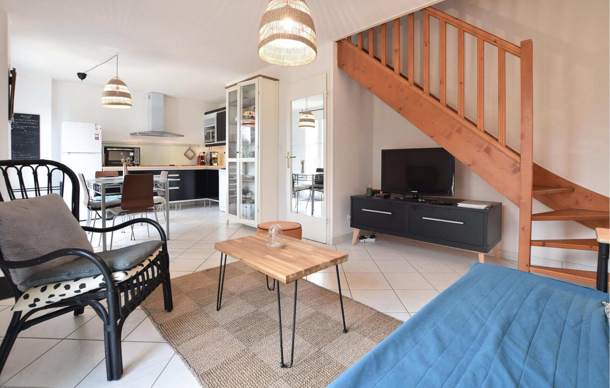 Nur 800 m vom Strand gelegen ist dieses charmante Ferienobjekt im Calvados genau richtig für den Urlaub am Meer. Nutzen Sie das Wassersportangebot am Strand und den Gemeinschaftspool auf dem Anwesen und lassen Sie sich 3,5 km entfernt in einem Thalassotherapiezentrum verwöhnen. Das Haus ist hell und komfortabel und ideal für den Familienurlaub. Freuen Sie sich auf herrliche Ausflüge entlang der Côte Fleurie und erleben Sie Städte wie Cabourg, Deauville (14 km) und Trouville (21 km). Geschichtsinteressierte sollten sich Caen (30 km) mit der Burg Wilhelms des Eroberers und das Dorf Dives-sur-Mer (1 km) nicht entgehen lassen. Zu den Landungsstränden der Alliierten im Zweiten Weltkrieg und dem Atlantikwall-Museum sind es 24 km. Die frische Luft der Normandie können Sie aktiv genießen, zum Beispiel beim Reiten, Golf- oder Tennisspielen. Buchen Sie dieses charmante Ferienhaus für einen erlebnisreichen Urlaub in Frankreich.