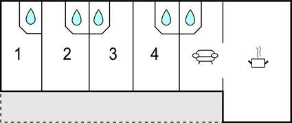 Badezimmer 4m2 (nr. 4) - WC. Warmes und kaltes Wasser. Dusche