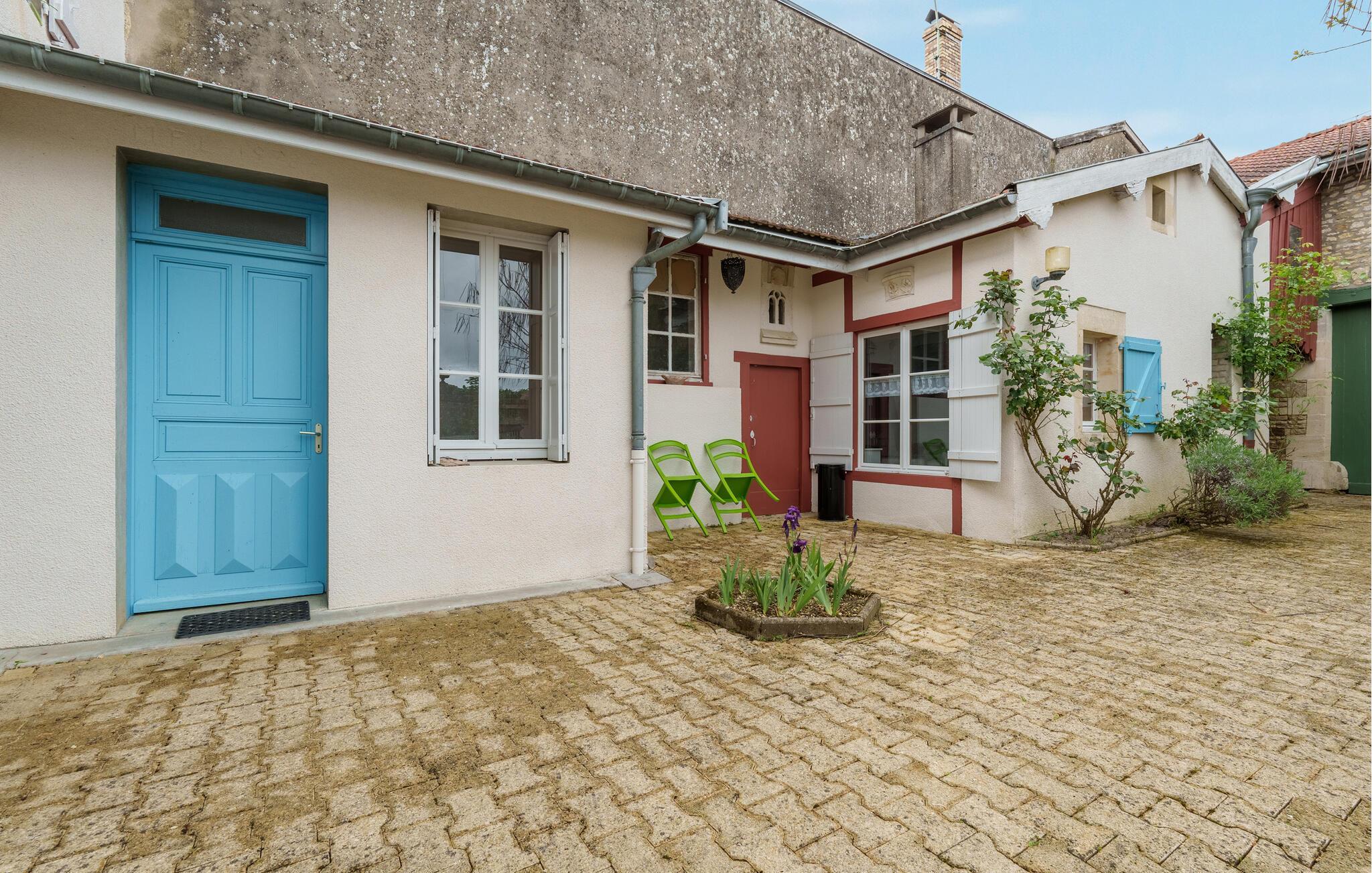 Willkommen in diesem großen und farbenfrohen Ferienhaus mit gemütlichem Innenhof und schönem Garten.