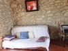 Genießen Sie einen Aufenthalt auf dem Land in einer Unterkunft, die sich gut für Paare eignet und Ihnen Ruhe und Entspannung bietet. Richten Sie sich in den schlicht eingerichteten Innenräumen ein. Bereiten Sie Speisen in der praktischen Küche zu und freuen Sie sich über die gemütliche Atmosphäre der steinernen Wände und Holzbalken. Entspannen Sie im Wohnbereich mit Sofa oder nehmen Sie Ihre Mahlzeiten am kleinen Tisch ein.
