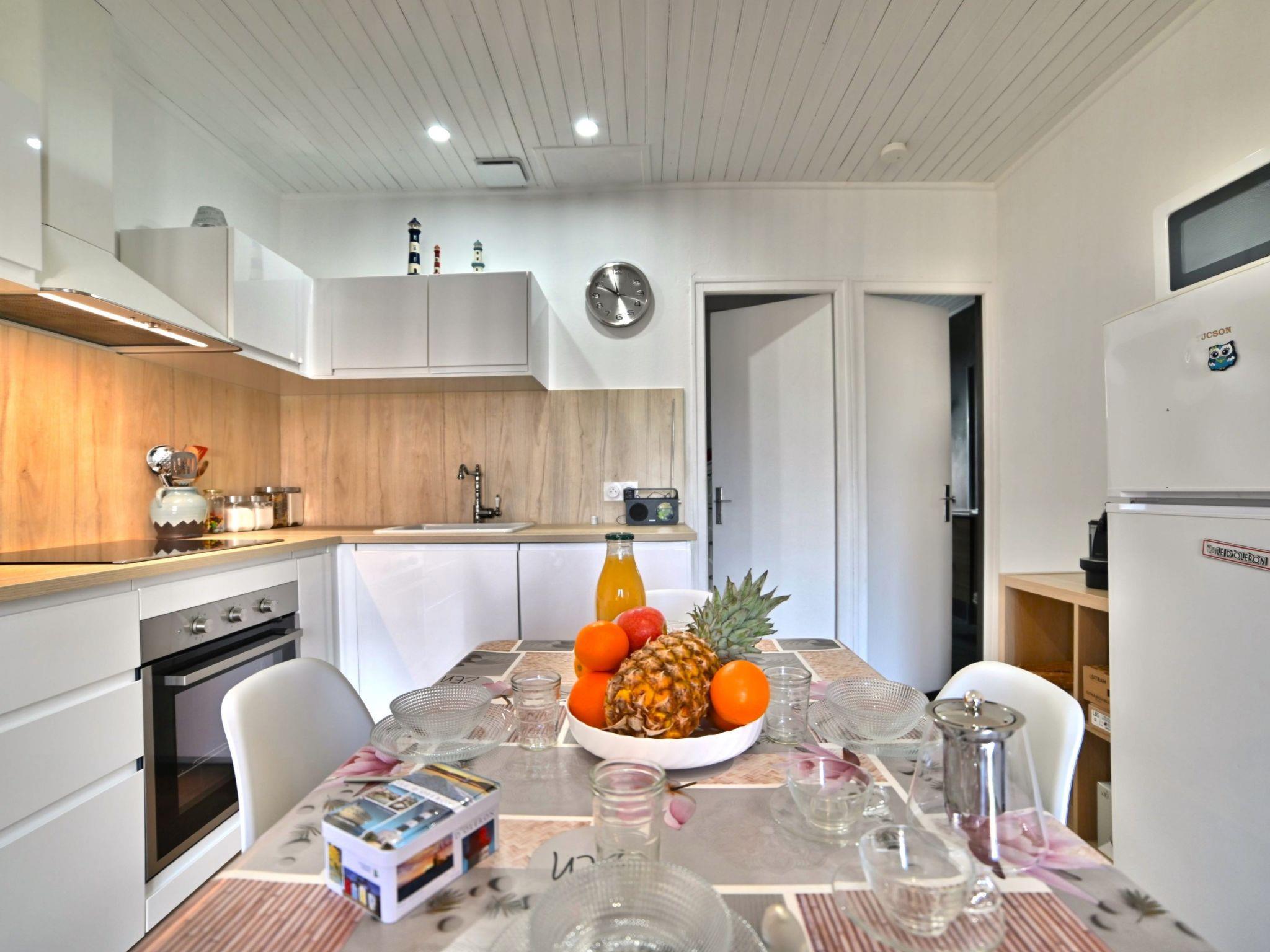 Einfamilienhaus "Les Cariatides". Im Ort, 1.5 km vom Zentrum von La Cotinière, alleinstehende, ruhige, sonnige Lage, 6 km vom Waldrand, 100 m vom Meer, 100 m vom Strand, direkter Zugang zum Strand. Zur Mitbenutzung: Schwimmbad eckig nicht einsehbar, eingezäunt (13 x 8 m, 104 m2, 110 - 200 cm tief, saisonale Verfügbarkeit: 01.Mar. - 31.Okt. Öffnungszeiten Schwimmbad: 10:00-20:30). Aussendusche. Zur Alleinbenutzung: gepflegter Garten 120 m2 (eingezäunt) mit Rasen, Parkplatz beim Haus. Einkaufsgeschäft 1.5 km, Lebensmittelgeschäft 1.5 km, Restaurant 1.5 km, Bar 1.5 km, Bäckerei 1.5 km, Café 1.5 km, Fußgängerzone 1.5 km, Fahrradverleih 1.5 km, Bushaltestelle "Gare routière (St Pierre)" 5 km, Bahnstation "Rochefort sur mer" 52 km, Sandstrand "Baie de la Brimaudiere" 100 m. Sporthafen 1.5 km, Golfplatz (9 Loch) 14 km, Surfschule 8 km, Radweg 10 m. Nahe gelegene Sehenswürdigkeiten: Iléo centre aquatique 12 km, Phare de Chassiron 17 km, Port de la Cotiniere 1.5 km, Corderie Royale Rochefort 50 km, La Rochelle 86 km.