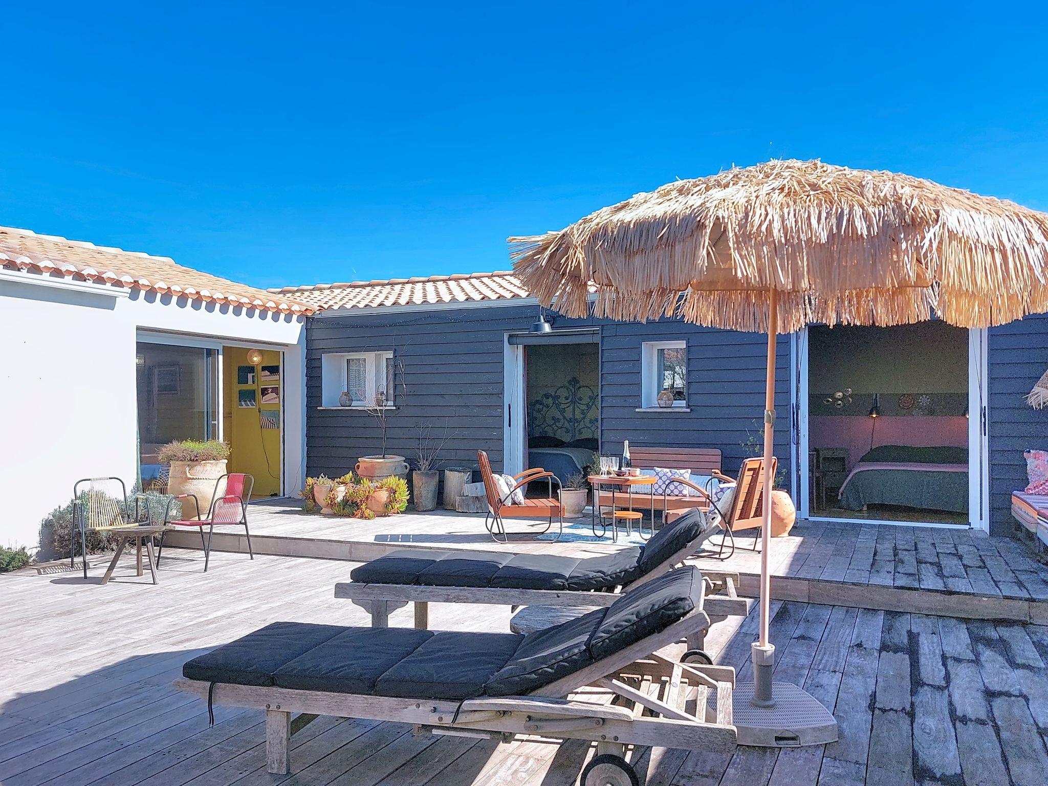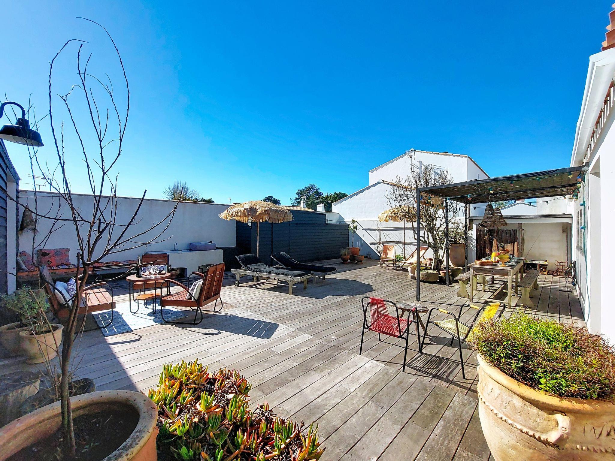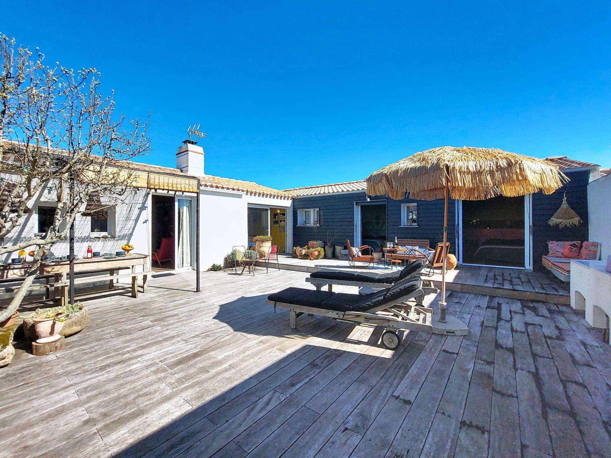 L'Epine-Noirmoutier: Einfamilienhaus "Tranquille en bord de Mer". 500 m vom Zentrum von L'Epine, 4.7 km vom Zentrum von Noirmoutier-en-L'Ile, exzellente Lage: Absolut zentral und dennoch ruhig, 800 m vom Meer, 800 m vom Strand, in einer Sackgasse. Zur Alleinbenutzung: Hof. Aussendusche, Terrasse (100 m2), Parkplatz. Einkaufsgeschäft, Restaurant 500 m, Bushaltestelle "RP de l'Europe, La Guérinière" 3 km, Sandstrand "de la Martinière/Thibaudière" 800 m. Sporthafen 2.8 km, Segelschule 2.8 km. Nahe gelegene Sehenswürdigkeiten: Marais Salants de l'île de Noirmoutier 1.5 km, Port Morin 2.8 km, Port de l'Herbaudière 6 km, Bois de la Chaize 8 km, Le Gois 12 km, Challans 40 km.
