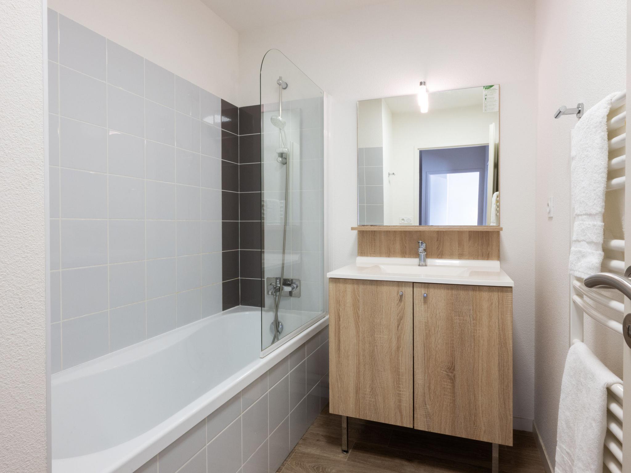 " Odalys Collection Le Domaine des Pins", 1-Zimmer-Studio 22 m2, im Erdgeschoss. Modern eingerichtet: Wohn-/Schlafzimmer mit 1 Doppeldiwanbett, Esstisch und Sat-TV (Flachbildschirm). Ausgang zur Terrasse. Kleine, offene Küche (Geschirrspüler, 2 Glaskeramikplatten, Toaster, Wasserkocher, elektrische Kaffeemaschine, Kombinationsmikrowelle). Bad/WC. E-Heizung. Terrasse. Terrassenmöbel. Zur Verfügung: Kinderhochstuhl, Babybett, Haartrockner. Internet (WLAN, gratis). Bitte beachten: Nichtraucher-Unterkunft. Maximal 2 Haustiere/Hunde erlaubt. Rauchmelder, Feuerlöscher.