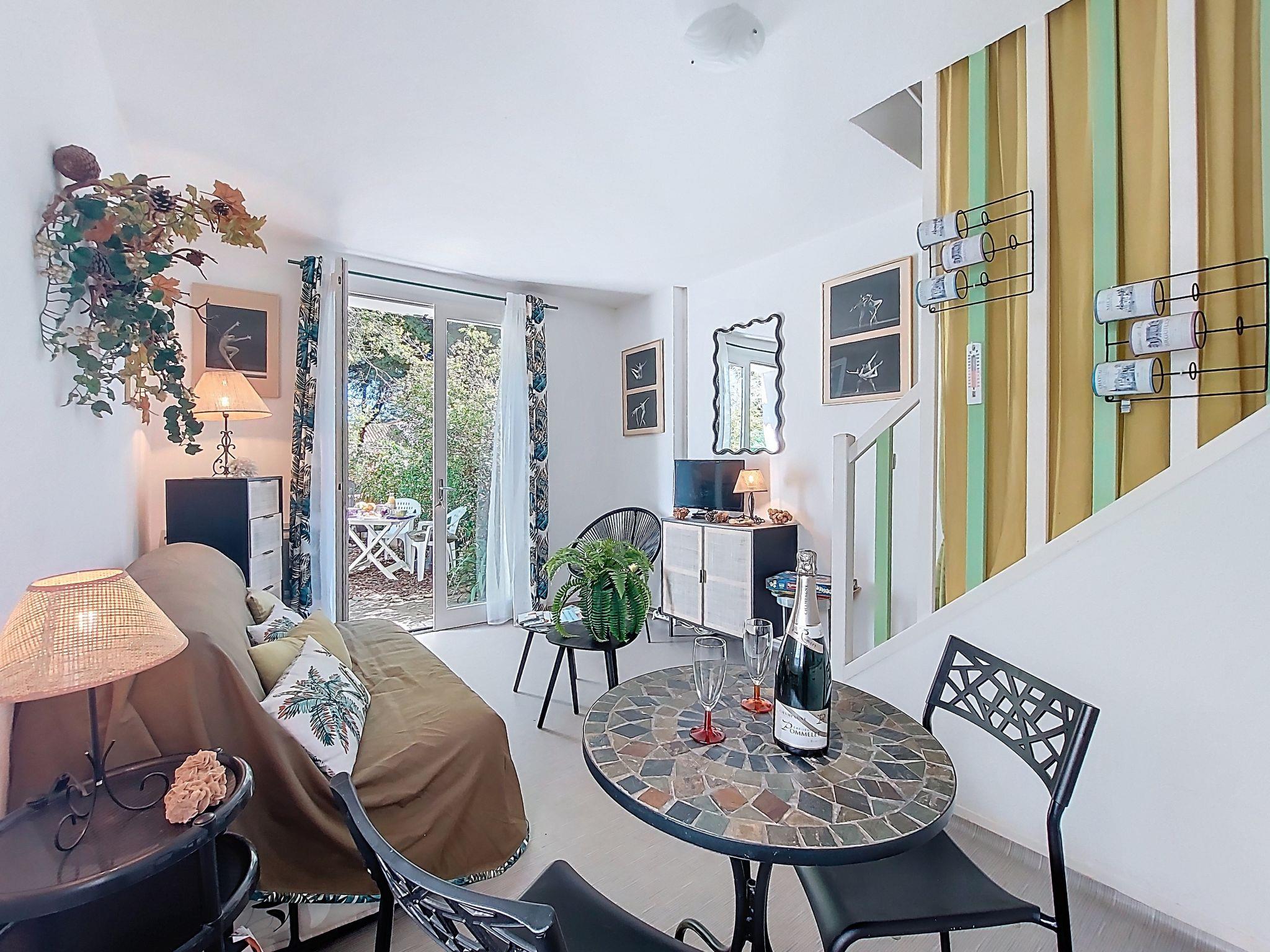 "Maison de charme Les Yuccas", 2-Zimmer-Reihenhaus 35 m2 auf 2 Stockwerken. Vollständig renoviert: Wohnzimmer mit 1 Diwanbett (140 cm, Länge 190 cm), Esstisch und TV. Offene Küche (Mini-Backofen, 4 Induktionskochplatten, Toaster, Wasserkocher, Mikrowelle, elektrische Kaffeemaschine). Ausgang zum Garten. Obergeschoss: 1 Zimmer mit 1 franz. Bett (140 cm, Länge 190 cm). Dusche, sep. WC. E-Heizung. Kleine Terrasse, Südostlage. Terrassenmöbel. Bitte beachten: Nichtraucher-Unterkunft. Maximal 1 kleines Haustier/Hund erlaubt. Rauchmelder. Inserat einer Privatperson nach Artikel 155, IV, CGI.