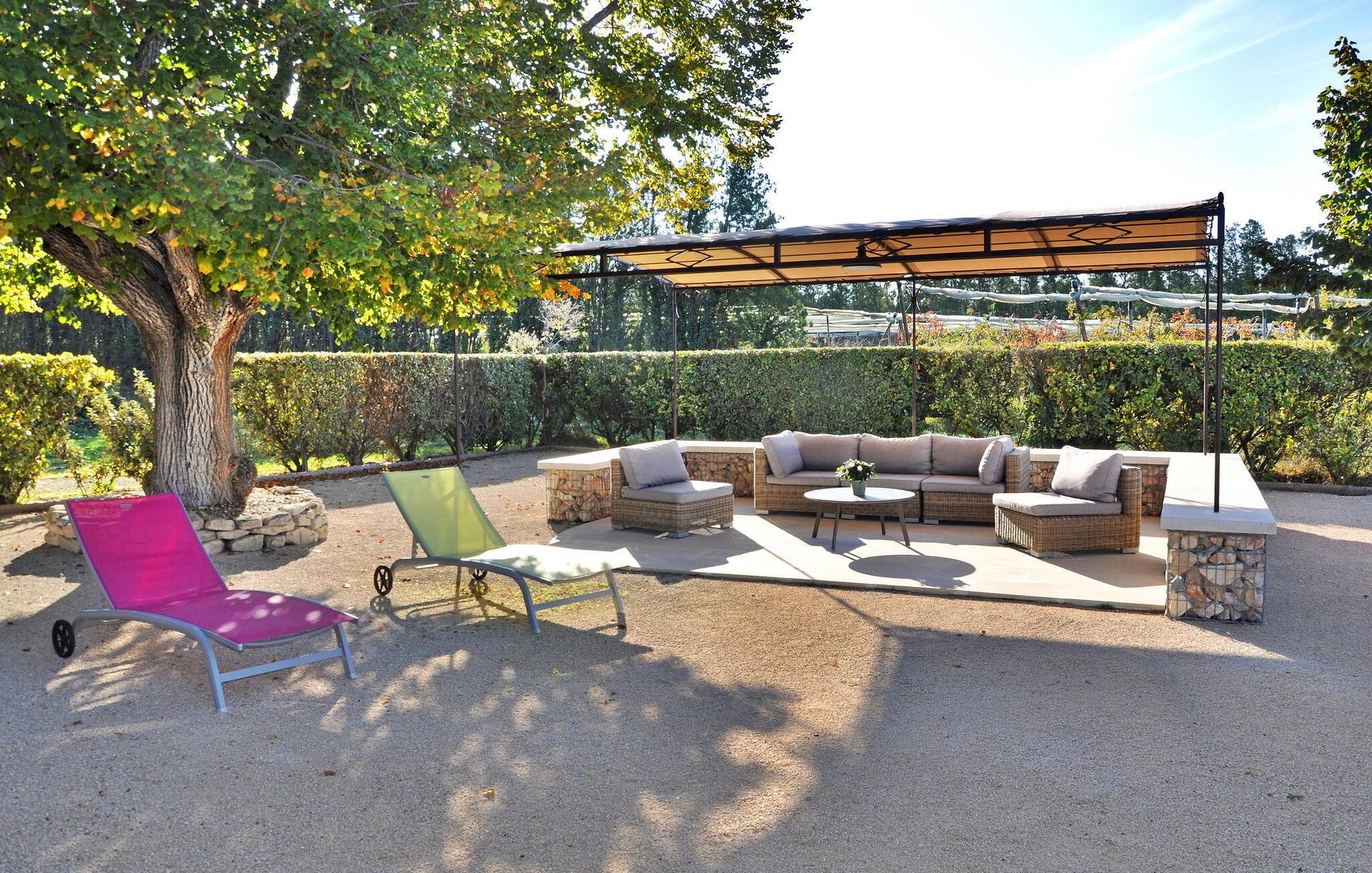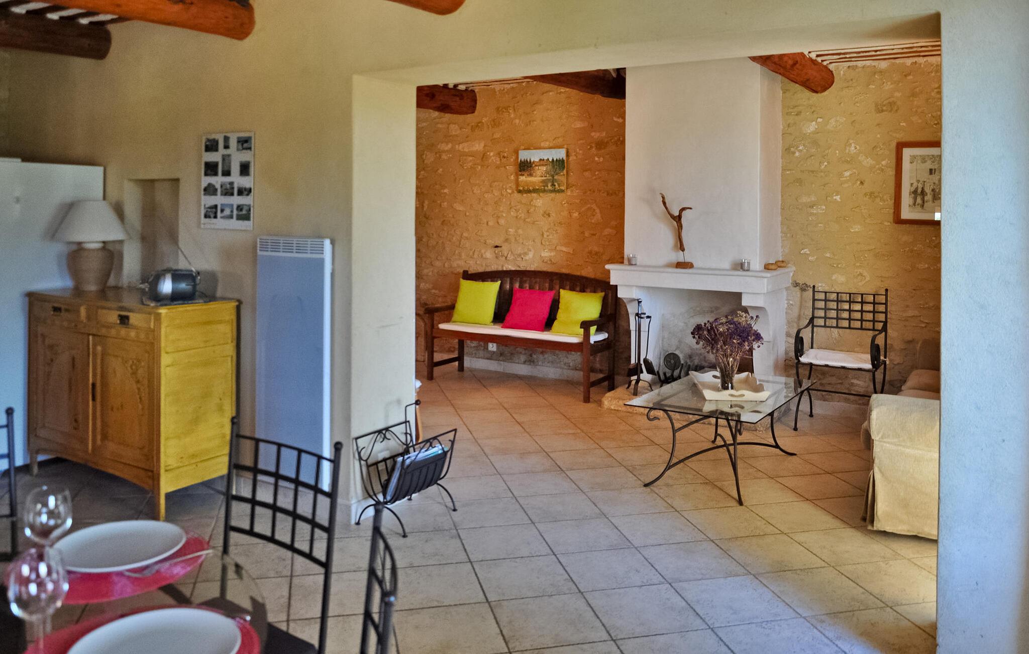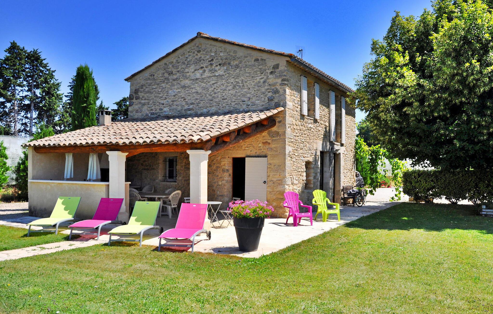 Genießen Sie die ruhige Landschaft von Isle-sur-la-Sorgue mit diesem herrlichen Ferienhaus, das einen ruhigen Rückzugsort nur 4 km von der Stadt entfernt bietet. Inmitten der ruhigen Umgebung gelegen, sorgt dieses Feriendomizil für einen komfortablen Aufenthalt für Ihre Urlaubsabenteuer. Das Anwesen verfügt über ein Erdgeschoss mit einer gut ausgestatteten Küche/Essbereich, der auf die einladende überdachte Terrasse und den Garten führt. Der offene Wohnbereich bietet einen gemütlichen Ort zum Entspannen, während das Schlafzimmer im Erdgeschoss einen einfachen Zugang bietet. Entdecken Sie im Obergeschoss die geschmackvoll eingerichteten Schlafzimmer, die für ruhige Nächte sorgen, ergänzt durch ein modernes Duschbad. Wenn man nach draußen geht, bietet das nicht eingezäunte Gelände flache Grasflächen, die von malerischen Apfelplantagen umgeben sind. Die überdachte Terrasse lädt zum Essen im Freien ein und ist mit einer Spüle, einem Kühlschrank und einem Holzkohlegrill ausgestattet, der sich perfekt für gemütliche Zusammenkünfte eignet. Darüber hinaus bietet eine schattige Terrasse einen ruhigen Ort zum Entspannen und Genießen des Pool- und Gartenblicks. Das Highlight bleibt der private Swimmingpool (10 x 5 m), der eine erfrischende Oase bietet. Auf den gepflegten Rasenflächen laden Sonnenliegen zum Entspannen in ruhiger Atmosphäre ein. Etwa 2 km entfernt liegt der Weiler „Le Petit Palais“, wo Sie lokale Geschäfte finden: Bäckerei, Lebensmittel, Zeitung, Tabakbar, Benzin. Isle-sur-la-Sorgue ist berühmt für seine Antiquitäten und seinen Markt am Donnerstag und Sonntag. In der Nähe besuchen Sie auch Fontaine de Vaucluse und die Bergdörfer des Luberon: Gordes, Roussillon, Bonnieux.
