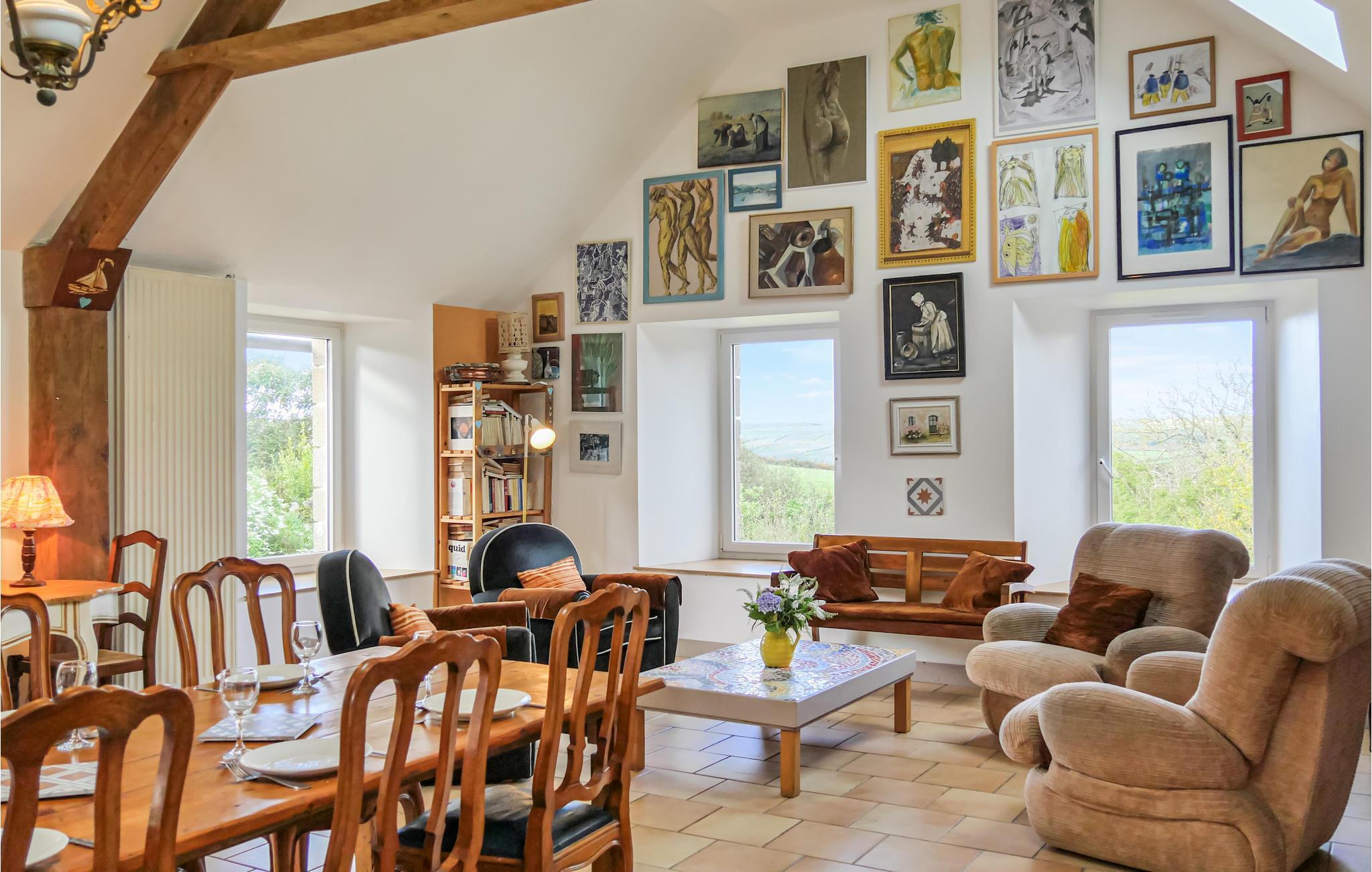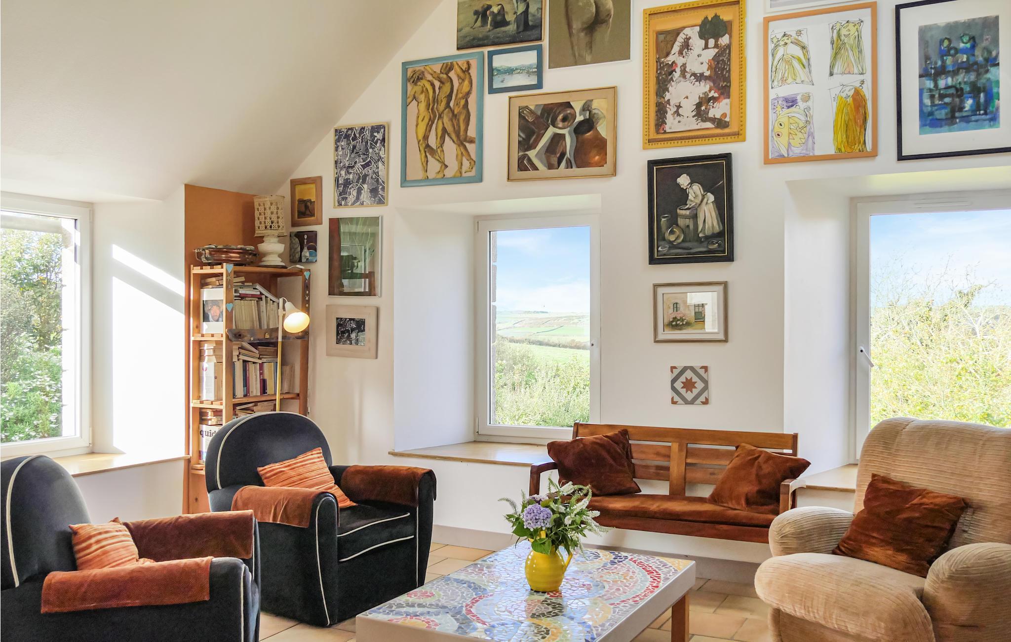 Im Inneren dieses komfortablen und funktionalen Ferienhauses erwartet Sie ein geräumiges Wohnzimmer mit einer gemütlichen Atmosphäre und persönlicher Dekoration mit Kunst an den Wänden. Versammeln Sie hier die Familie zu gemütlichen Spieleabenden und guten Gesprächen.
