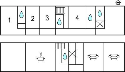 Badezimmer (nr. 2) - WC. Warmes und kaltes Wasser. Dusche
