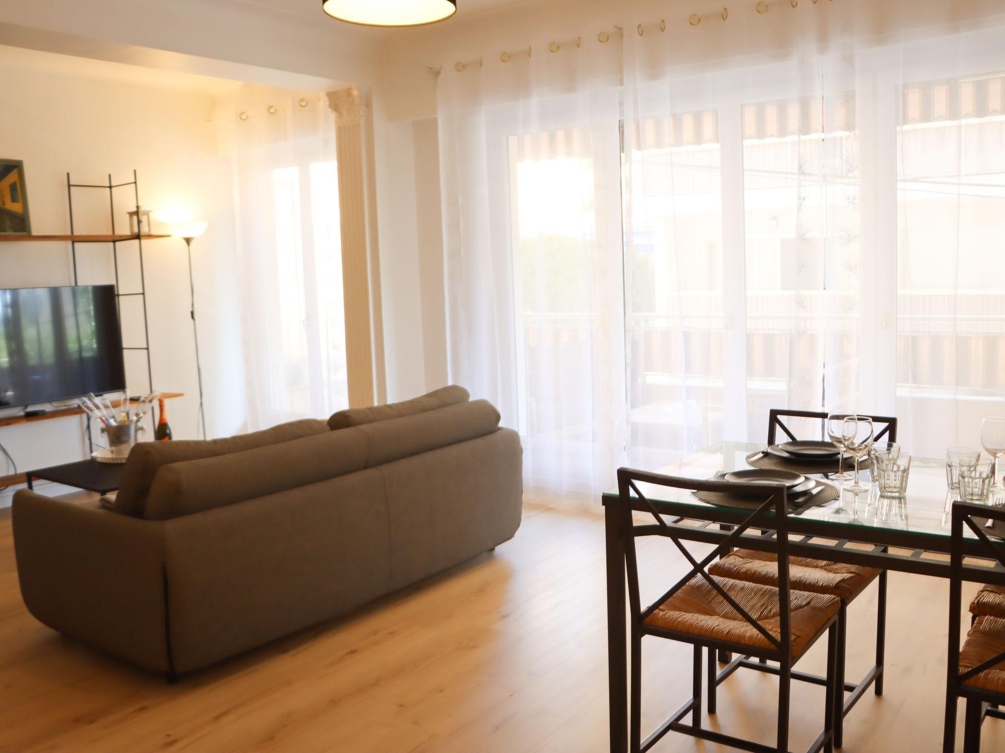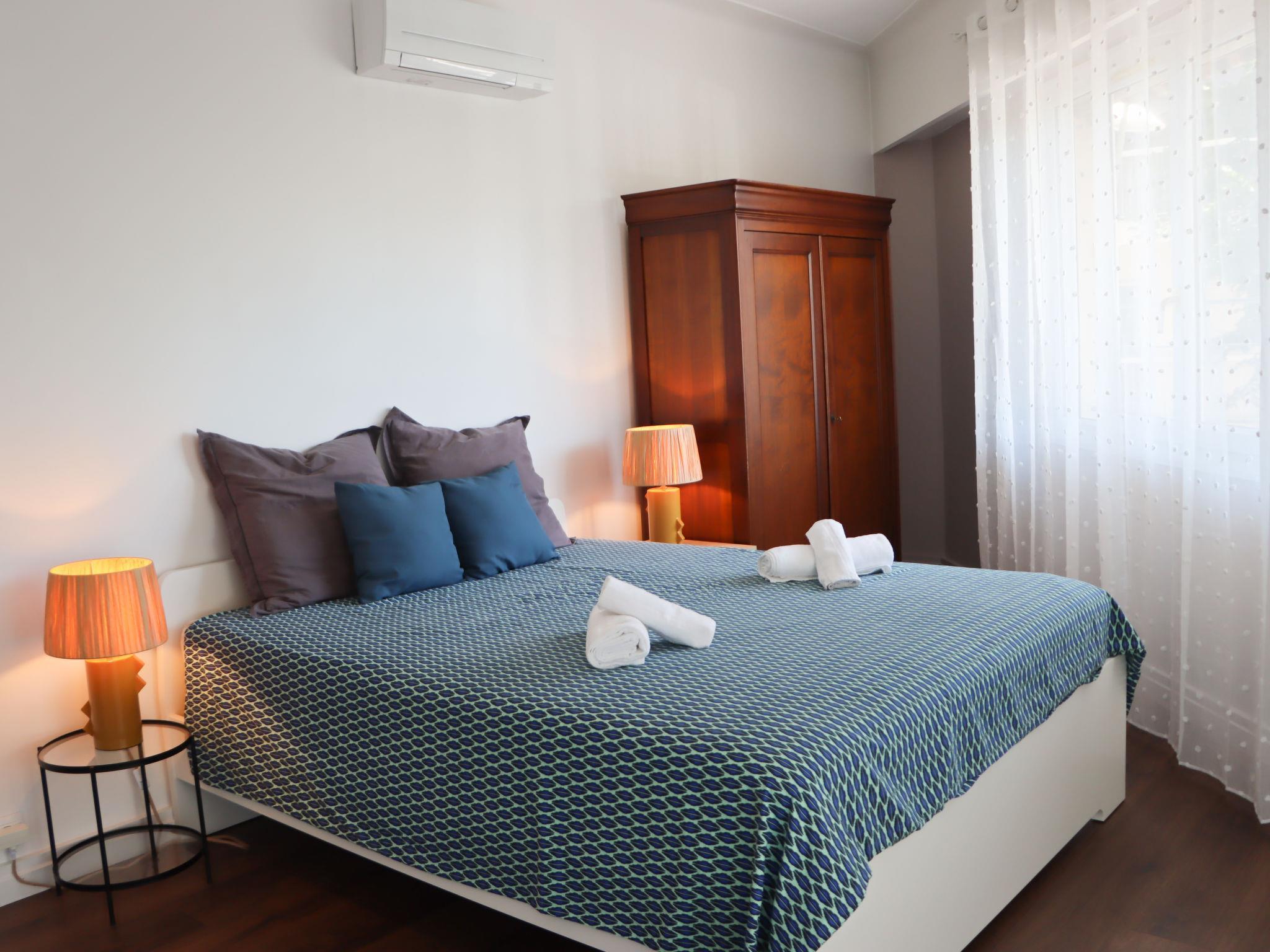 "Au soleil bleu", 3-Zimmer-Wohnung 100 m2 im 1. Stock. Geräumig und hell, sehr schön eingerichtet: grosses Wohn-/Esszimmer mit 1 Doppeldiwanbett (160 cm, Länge 190 cm), TV (Flachbildschirm), Klimaanlage. Ausgang zum Balkon. 2 grosse Zimmer, jedes Zimmer mit 1 franz. Bett (160 cm, Länge 200 cm), Klimaanlage. Küche (Backofen, Geschirrspüler, 3 Induktionskochplatten, Toaster, Wasserkocher, Mikrowelle, Tiefkühler, elektrische Kaffeemaschine). Ausgang zum Balkon. Bad, Bad/WC, sep. WC. G-Heizung. Balkon 17 m2, Ostlage. Zur Verfügung: Waschmaschine, Bügeleisen, Haartrockner. Internet (WLAN, gratis). Garage. Bitte beachten: Rauchmelder. Inserat einer Privatperson nach Artikel 155, IV, CGI. 06004251363CM