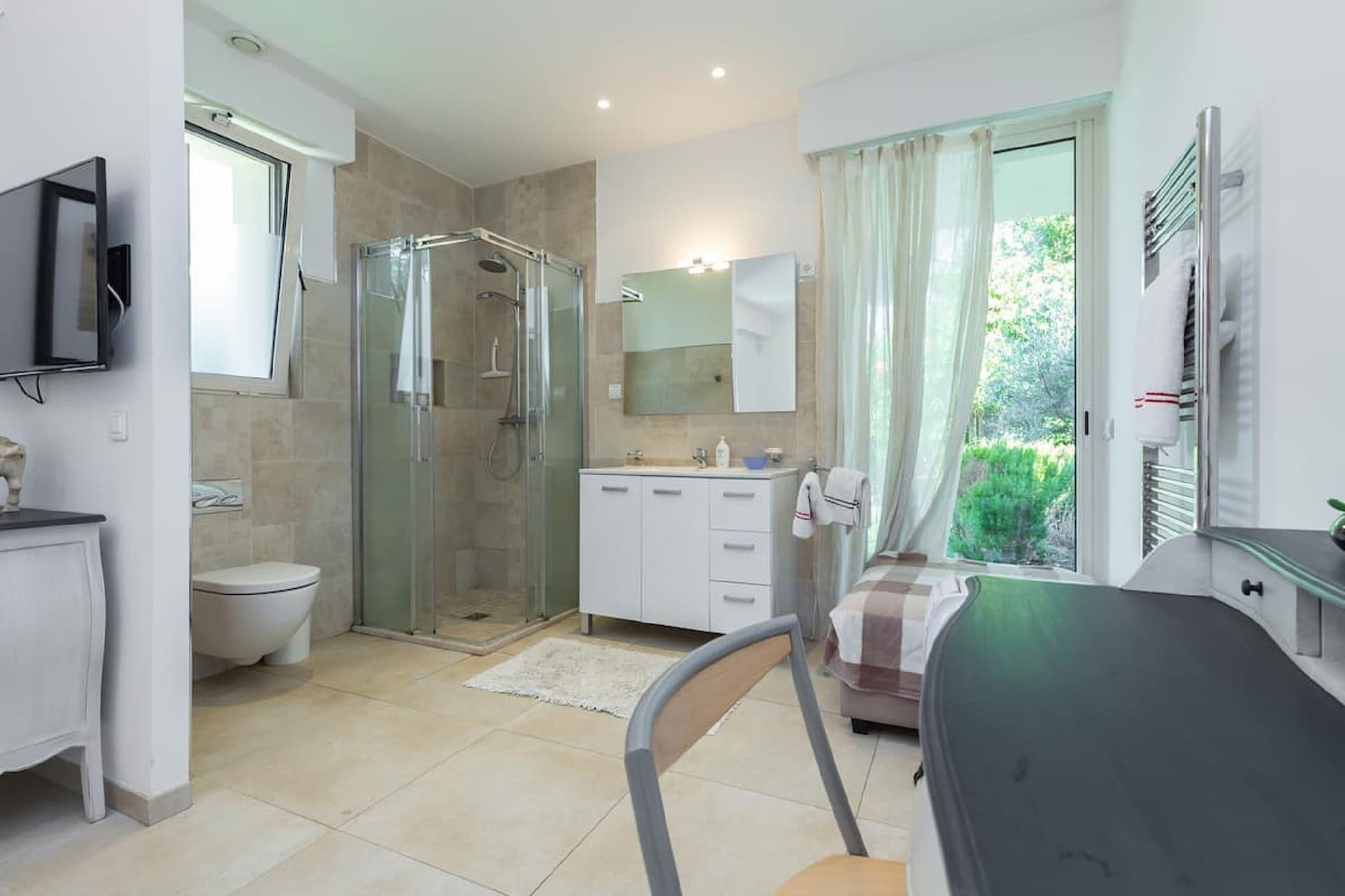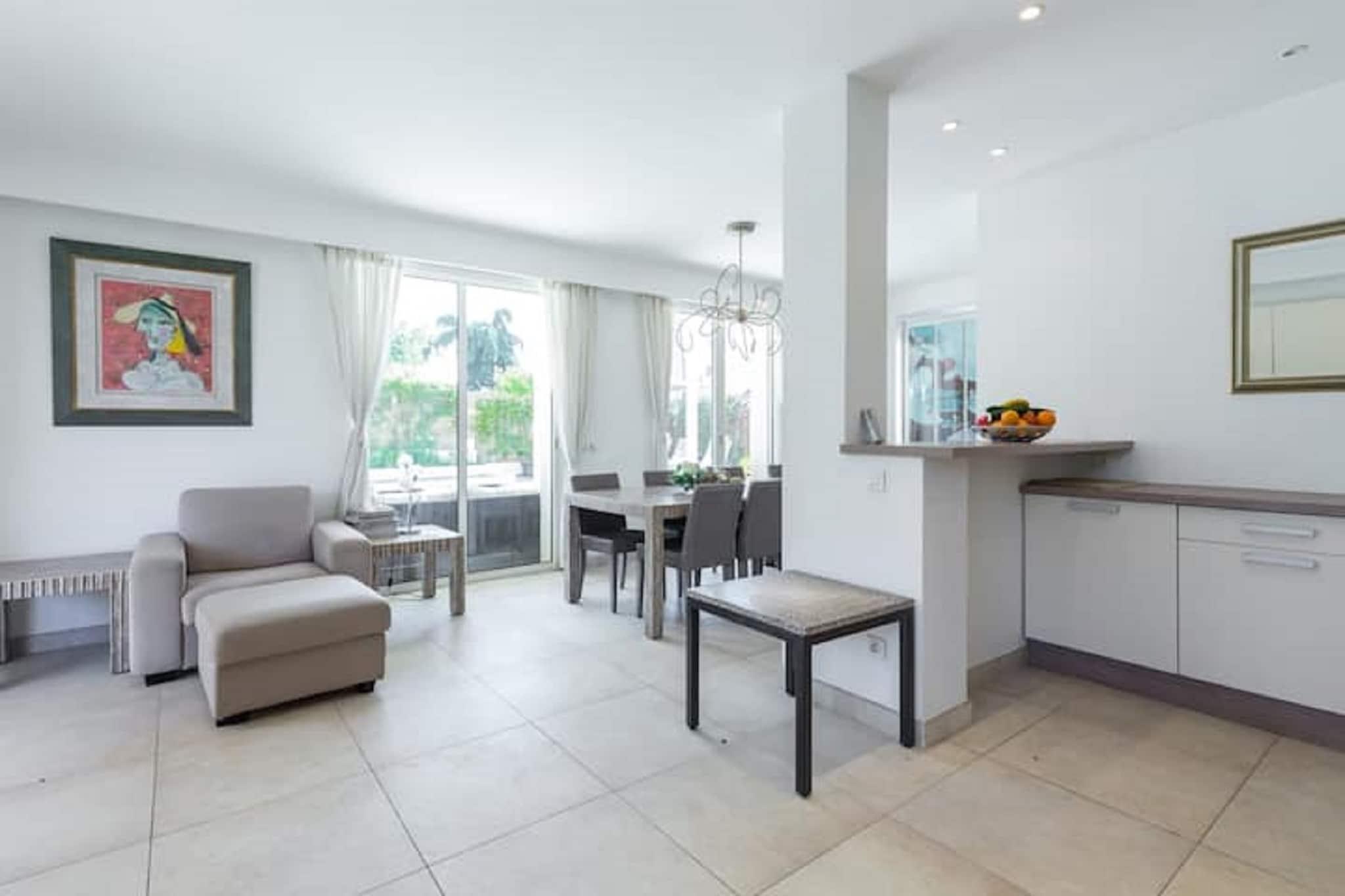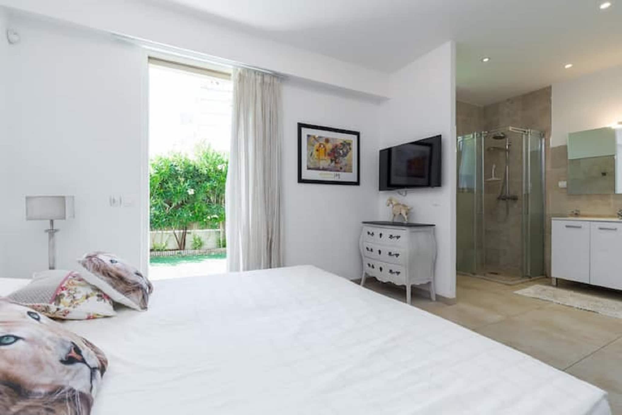 Diese großzügige Villa in Juan-les-Pins bietet einen luxuriösen Rückzugsort an der Küste für bis zu 14 Gäste, nur 100 m vom Sandstrand entfernt. Das Erdgeschoss verfügt über ein stilvolles Wohnzimmer mit Kamin, CD-Player und Fernseher, einen geräumigen Essbereich und eine voll ausgestattete offene Küche mit Espressomaschine, Mixer und Geschirrspüler. Vier Schlafzimmer und drei Badezimmer sorgen für Komfort und Privatsphäre. Im ersten Stock befinden sich zwei weitere Wohnzimmer, vier Schlafzimmer, zwei Badezimmer und eine beheizte Terrasse. Im Außenbereich genießen die Gäste einen privaten, eingezäunten Pool (9 x 5 m) mit Wasseralarm, Sonnenliegen, Grill und ein Lounge-Set im Garten. Zur Ausstattung gehören Klimaanlage, Fitnessgeräte, Tischfußball und eine Dampfdusche. Die Villa verfügt außerdem über eine Außenküche, eine Veranda und mehrere Terrassen zum Entspannen und für gesellige Stunden. Die Villa liegt nur 1 km vom Zentrum von Juan-les-Pins und 8 km von Cannes entfernt und befindet sich in der Nähe des Bahnhofs Juan-les-Pins und des Flughafens Nizza. In der Nähe gibt es zahlreiche Restaurants, darunter L'escale, Le Bistrot und La Mamma, die von klassischer französischer Küche bis hin zu italienischen Spezialitäten alles bieten. Mit ihrer erstklassigen Lage und gehobenen Ausstattung ist diese Villa ideal für große Familien oder Gruppen, die Sonne, Stil und den Charme des Meeres suchen.