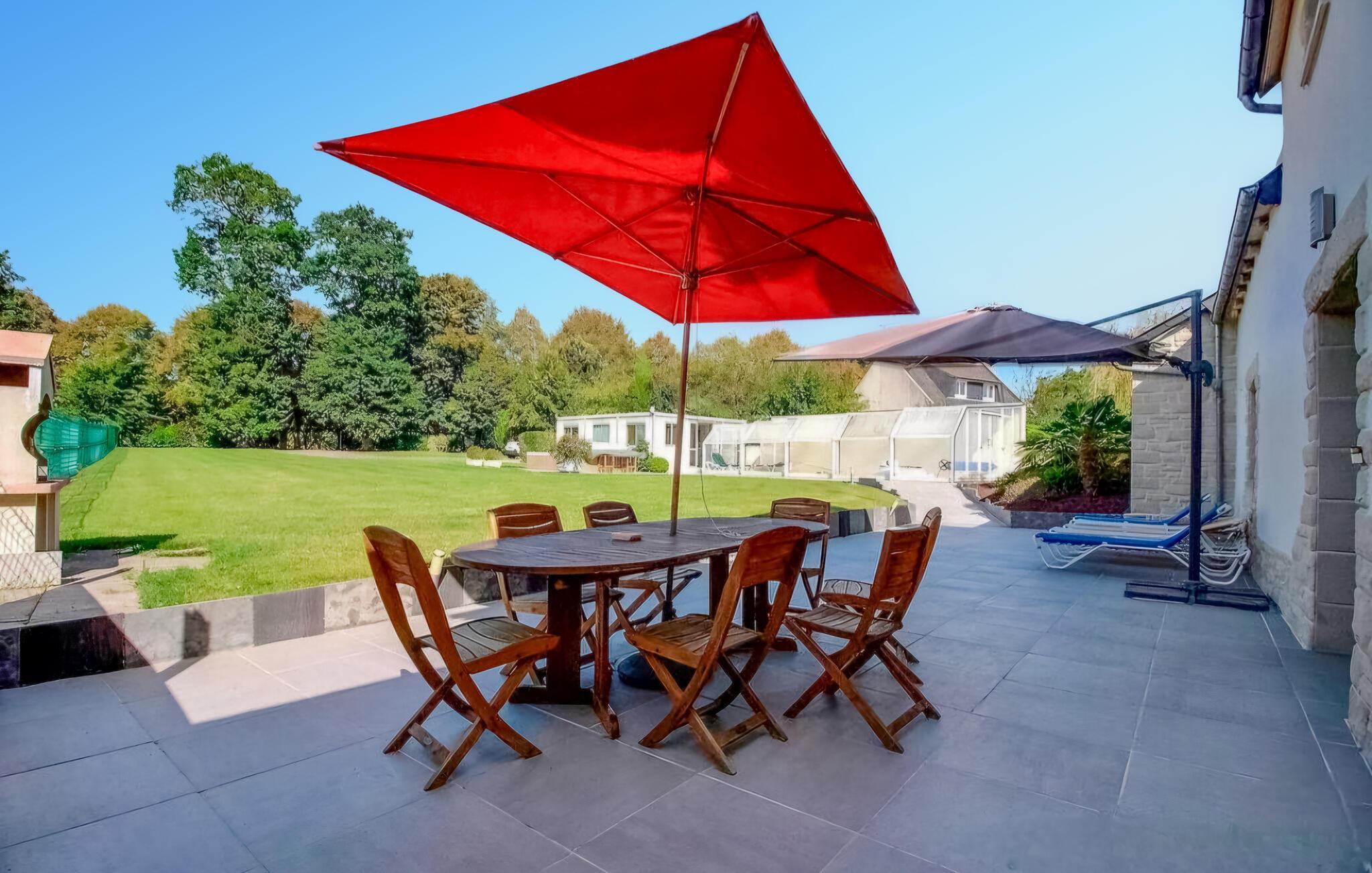 Der private Garten besticht durch seine gepflegten Grünflächen und eine Vielzahl an Entspannungsmöglichkeiten. Genießen Sie sonnige Stunden auf der Terrasse, lassen Sie im Whirlpool die Seele baumeln oder ziehen Sie ein paar Bahnen im beheizten Pool. Für Wellness-Fans steht auch eine Sauna im Poolhaus zur Verfügung. Für gemeinsame Mahlzeiten unter freiem Himmel steht Ihnenauf der großen Terrasse ein großer Esstisch mit Sonnenschirm zur Verfügung.