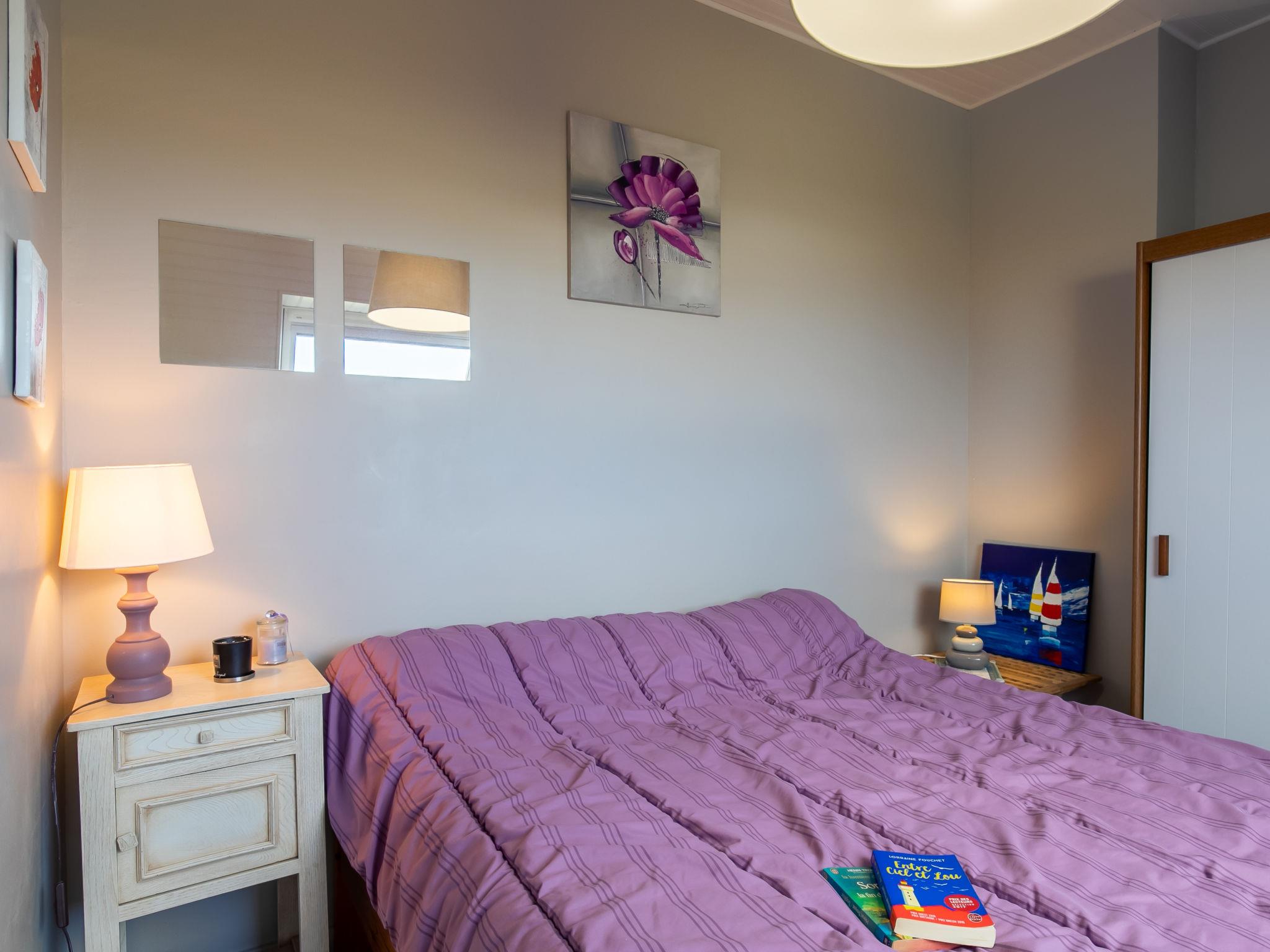 "Echo de Vagues", 5-Zimmer-Haus 90 m2 auf 2 Stockwerken. Schön und geschmackvoll eingerichtet: Wohn-/Esszimmer mit offenem Kamin, Esstisch, Sat-TV und Stereoanlage. Ausgang zur Terrasse. Offene Küche (1 Kochplatte, Backofen, Geschirrspüler, 3 Flammen, Toaster, Wasserkocher, Mikrowelle, Tiefkühler, elektrische Kaffeemaschine). Bad, sep. WC. Obergeschoss: abgeschrägtes Wohnzimmer. 3 abgeschrägte Zimmer, jedes Zimmer mit 1 franz. Bett (140 cm, Länge 190 cm). Dusche/WC. E-Heizung. Terrasse, Südlage. Terrassenmöbel, Gartengrill (mobil), Liegestühle (2). Zur Verfügung: Waschmaschine, Bügeleisen, Kinderhochstuhl, Babybett. Internet (Wireless LAN, gratis). Bitte beachten: Nichtraucher-Haus. Maximal 1 Haustier/Hund erlaubt. Rauchmelder.