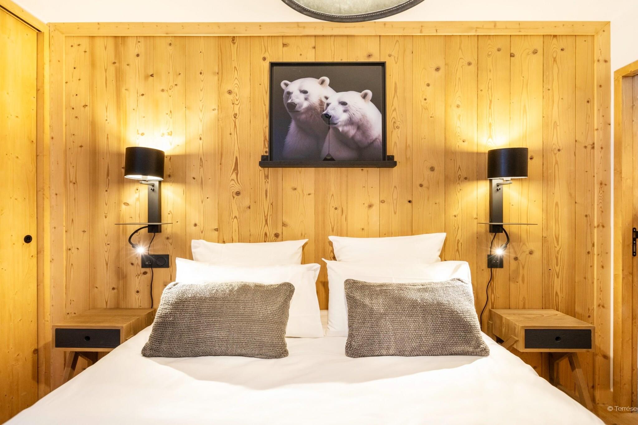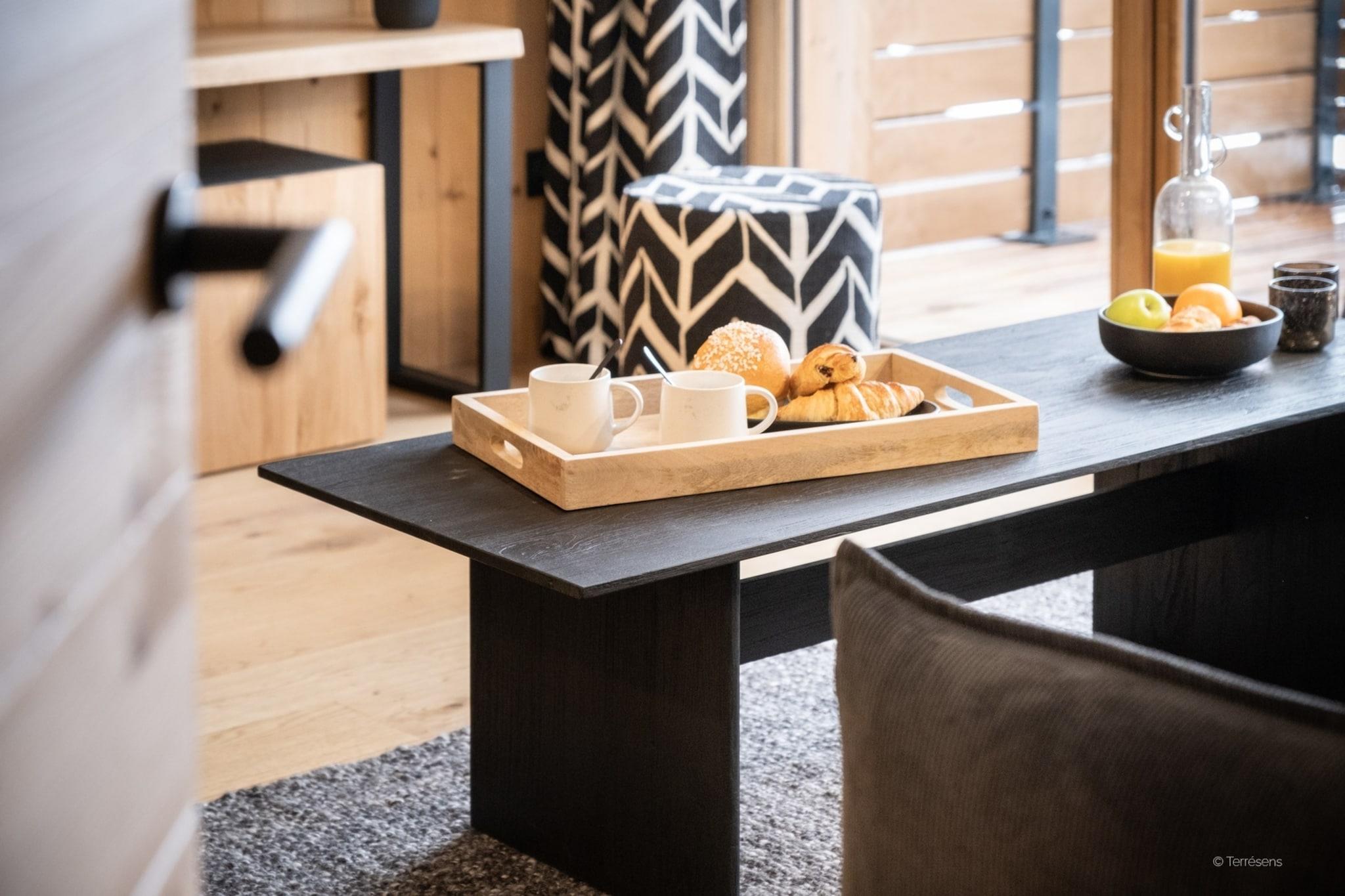Wohnzimmer(Doppelschlafcouch(140 x 200 cm), TV(Flatscreen, Satellit), Sitzecke), offene Küche(Kochplatte(Ceranfeld), Wasserkocher, Toaster, Kaffeemaschine, Backofen, Mikrowelle, Spülmaschine, Kühlschrank, ), Schlafzimmer(Doppelbett(160 x 200 cm)), Schlafzimmer(Einzelbett(80 x 200 cm), Einzelbett(80 x 200 cm)), Hütte(Etagenbett(80 x 200 cm)), Badezimmer(Badewanne oder Dusche), Badezimmer(Badewanne oder Dusche), Toilette(Toilette), Toilette, Internet, Parkplatz, Balkon oder Terrasse, Mountain view