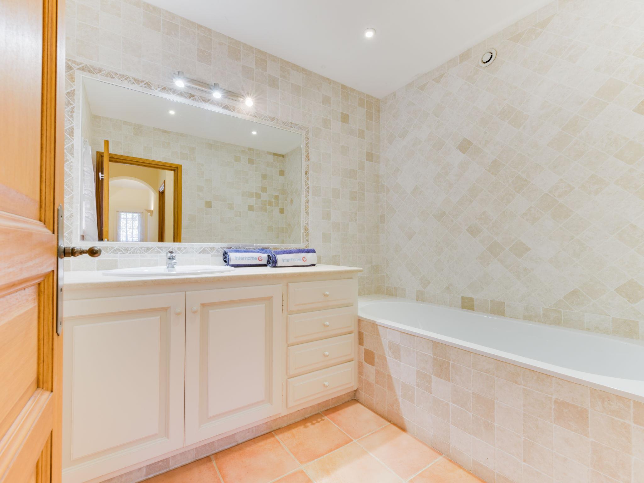 4-Zimmer-Villa 200 m2 auf 3 Stockwerken, Südwestlage. Komfortabel und schön eingerichtet: Wohn-/Esszimmer mit TV und Internationale TV-Sender (Flachbildschirm), Radio und elektrischem Rollladen. Ausgang zur Terrasse. 1 Zimmer mit 1 franz. Bett (140 cm, Länge 190 cm), TV (Flachbildschirm). Offene Küche (Backofen, Geschirrspüler, 4 Glaskeramikplatten, Toaster, Wasserkocher, Mikrowelle, elektrische Kaffeemaschine) mit elektrischem Rollladen. Ausgang zur Terrasse. Bad, sep. WC. Unteres Geschoss: 1 Zimmer mit 2 Betten (90 cm, Länge 190 cm), TV (Flachbildschirm). Ausgang zum Garten. Obergeschoss: 1 Zimmer mit 1 franz. Bett (160 cm, Länge 200 cm), TV (Flachbildschirm), Klimaanlage. Ausgang zum Balkon, Richtung Süden. Bad, sep. WC. E-Heizung. Kleiner Balkon 6 m2, grosse Terrasse 45 m2. Terrassenmöbel, Gartengrill, Liegestühle (6). Sehr schöne Sicht auf das Schwimmbad und den Garten. Zur Verfügung: Waschmaschine, Wäschetrockner, Bügeleisen. Internet (WLAN, gratis). Parkplatz (3 Autos), Garage (1 Auto). Bitte beachten: 1 kleines Haustier/Hund erlaubt. Rauchmelder. 08308083048250073