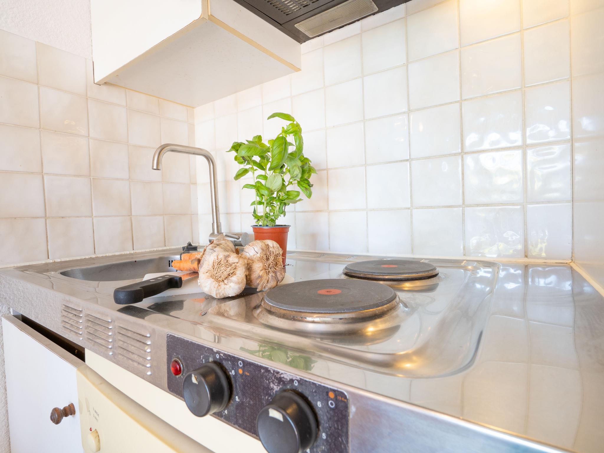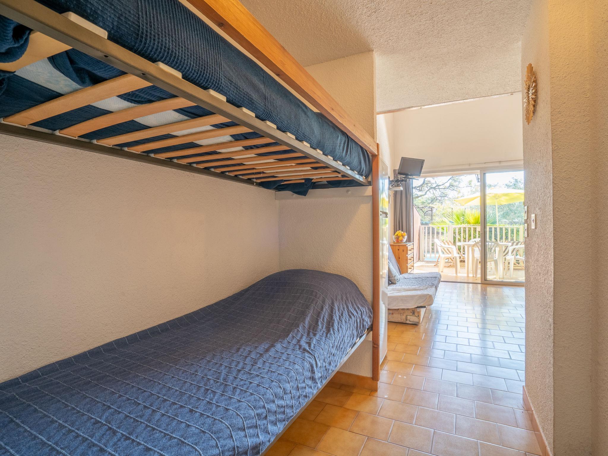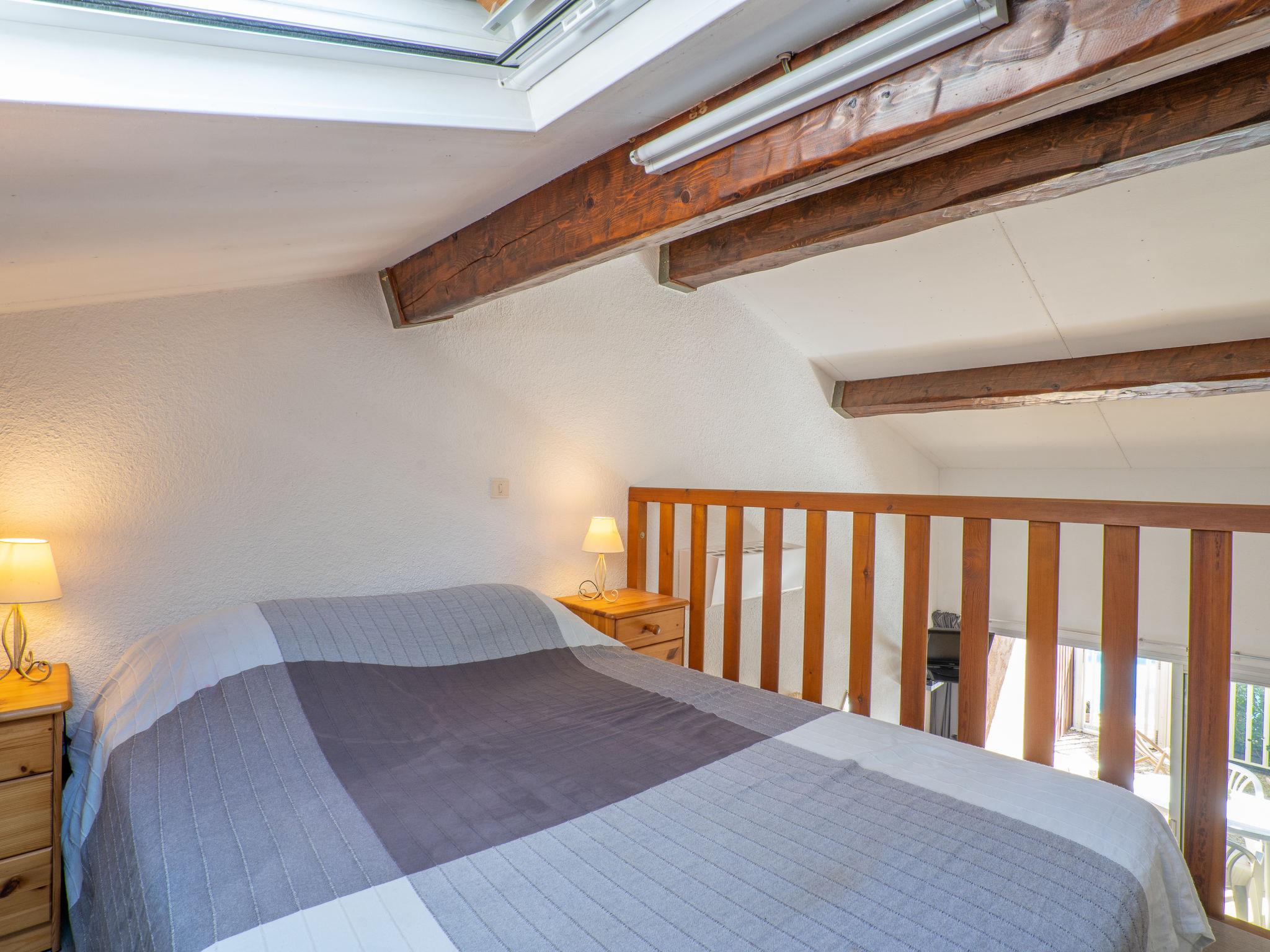 "Le Pin", 1-Zimmer-Wohnung 32 m2 auf 2 Stockwerken. Objekt geeignet für 2 Erwachsene + 2 Kinder. Einfach und zweckmässig eingerichtet: Wohn-/Esszimmer mit Esstisch und Sat-TV. Ausgang zur Terrasse. Offene Schlafnische mit 1 x 2 Etagenbetten (70 cm, Länge 180 cm). Abgeschrägte Galerie mit 1 franz. Bett. Kochnische (2 Kochplatten, Backofen, Geschirrspüler, Toaster, Wasserkocher, Mikrowelle, Tiefkühler, elektrische Kaffeemaschine). Bad/WC. E-Heizung, Klimaanlage. Balkon oder Terrasse. Balkonmöbel, Liegestühle. Zur Verfügung: Kinderhochstuhl, Babybett. Internet (WLAN). Bitte beachten: Maximal 1 Haustier/Hund erlaubt. Rauchmelder. Beim Mietobjekt handelt es sich um ein Typenhaus bzw. Um eine Typenwohnung. Anstelle eines abgeschlossenen Schlafzimmers befinden sich manche Schlafplätze in einem offenen Bereich (Galerie, Nische etc.). 8304800075301