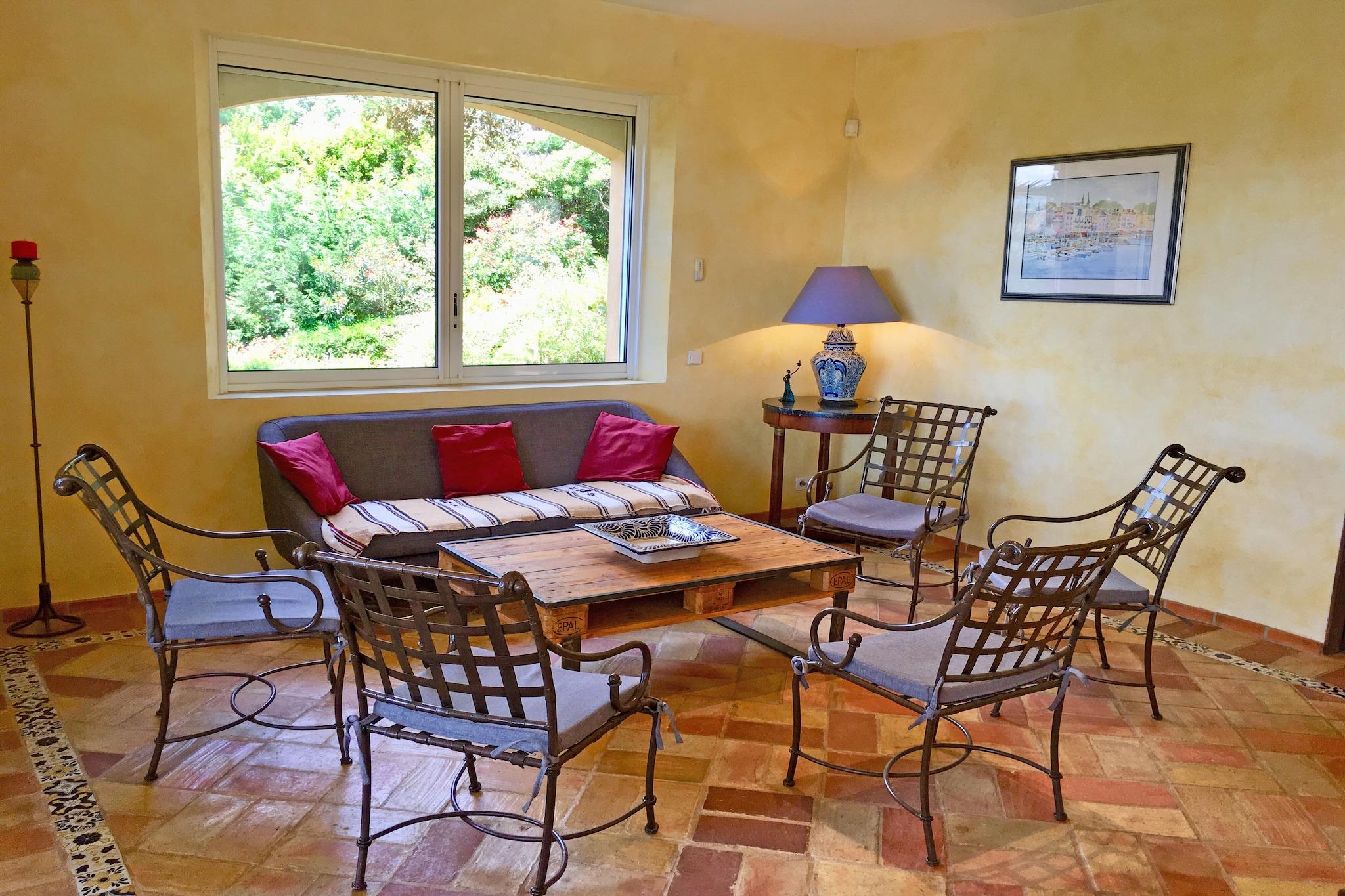 Diese sehr günstig gelegene moderne Villa hat eine schöne Aussicht über die Landschaft umher. Die Wohnung hat innen wie außen gemütliche Sitzgelegenheiten, wo Sie sich bestens entspannen können. Die Villa steht in einem gut gepflegten Garten mit zwei Terrassen und einem niedriger gelegen Privatpool. In unmittelbarer Umgebung finden Sie diverse hübsche provenzalische Dörfer, z.B. La-Croix-Valmer, Gassin und Cavalaire. Für die Strandfreunde gibt es den Strand von Gigaro in nur 15 Minuten Entfernung. Außerdem können Sie in der Umgebung endlose Wanderungen unternehmen - entlang Kliffs, mit wunderschönen weiten Ausblicken, die typisch südfranzösischen Gerüche von Minze und Thymian genießen und sich an kleinen Stränden in Buchten entspannen, die sogar in den hektischen Sommermonaten ruhig sind. Der luxuriöse Badeort Saint-Tropez liegt 12 km weiter entfernt und ist einfach über eine Landstraße mit imposanten Panoramablicken erreichbar. Saint-Tropez hat alles zu bieten was Sie von einer Stadt in dieser Umgebung erwarten: einen Yachthafen mit den größten Yachten, diverse Cafés und Restaurants und den berühmten Plage de Pampelonne.