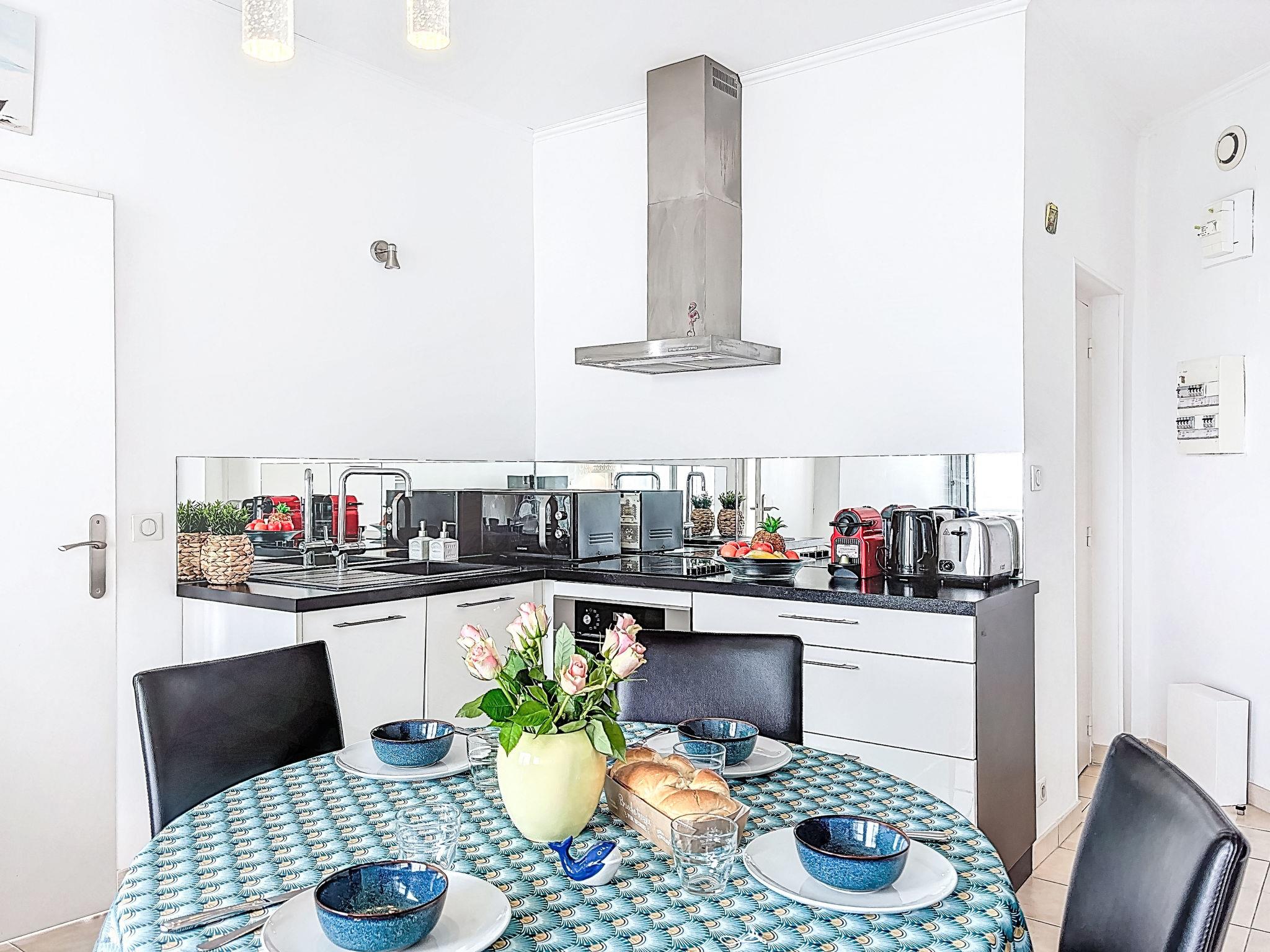 "Impérial II", 2-Zimmer-Wohnung 39 m2 im 3. Stock. Wohn-/Esszimmer mit TV (Flachbildschirm), Ventilator. 1 Zimmer, Richtung Süden mit 1 x 2 Etagenbetten (90 cm, Länge 90 cm), 1 franz. Bett (140 cm, Länge 190 cm). Kochnische (Backofen, Geschirrspüler, 4 Glaskeramikplatten, Toaster, Wasserkocher, Mikrowelle, Tiefkühler, elektrische Kaffeemaschine, Kapseln für die Kaffeemaschine (Nespresso) extra). Dusche/WC. E-Heizung. Kleine Terrasse 3 m2. Terrassenmöbel, Loggia. Zur Verfügung: Waschmaschine, Bügeleisen. Internet (WLAN, extra). Bitte beachten: Nichtraucher-Unterkunft, kein Parkplatz. Rauchmelder. Inserat einer Privatperson nach Artikel 155, IV, CGI.