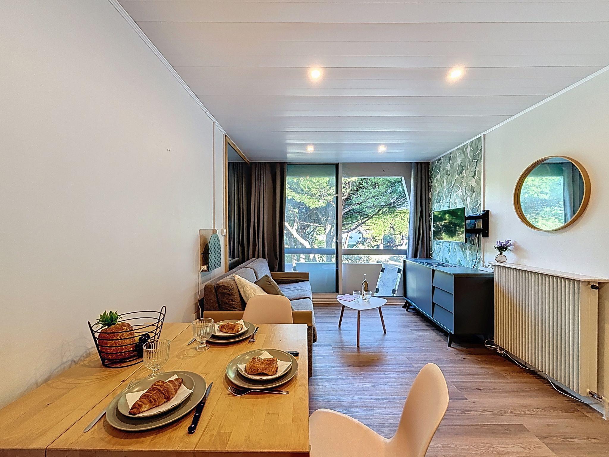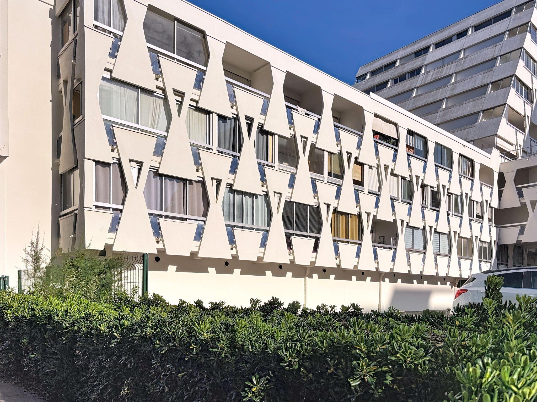 Residenz "Le Saint Clair", auf 3 Stockwerken. Im Ortszentrum von La Grande Motte, 150 m vom Zentrum, 120 m vom Meer, 90 m vom Strand, direkter Zugang zum Strand. Öffentliche Parkplätze 50 m auf der Strasse extra. Einkaufsgeschäft, Lebensmittelgeschäft, Restaurant 50 m, Bäckerei 70 m, Café 50 m, Bushaltestelle "CENTRE" 150 m, Sandstrand 70 m, Hallenbad 1 km, Thermalbad "Thalassothérapie" 500 m. Sporthafen 1 km, Golfplatz (18 Loch) 2 km, Tennis 1 km, Reitstall 2.5 km. Nahe gelegene Sehenswürdigkeiten: Seaquarium de Le Grau du Roi 10 km, Les remparts d'Aigues Mortes 12 km, Les Saintes Maries de la Mer 40 km. Bitte beachten: kein Fahrstuhl vorhanden. Animation in der Saison. Die Schlüsselübergabe findet bei der Agentur Interhome in La Grande Motte statt, 3 km. Flugplatz 20 km vom Haus.