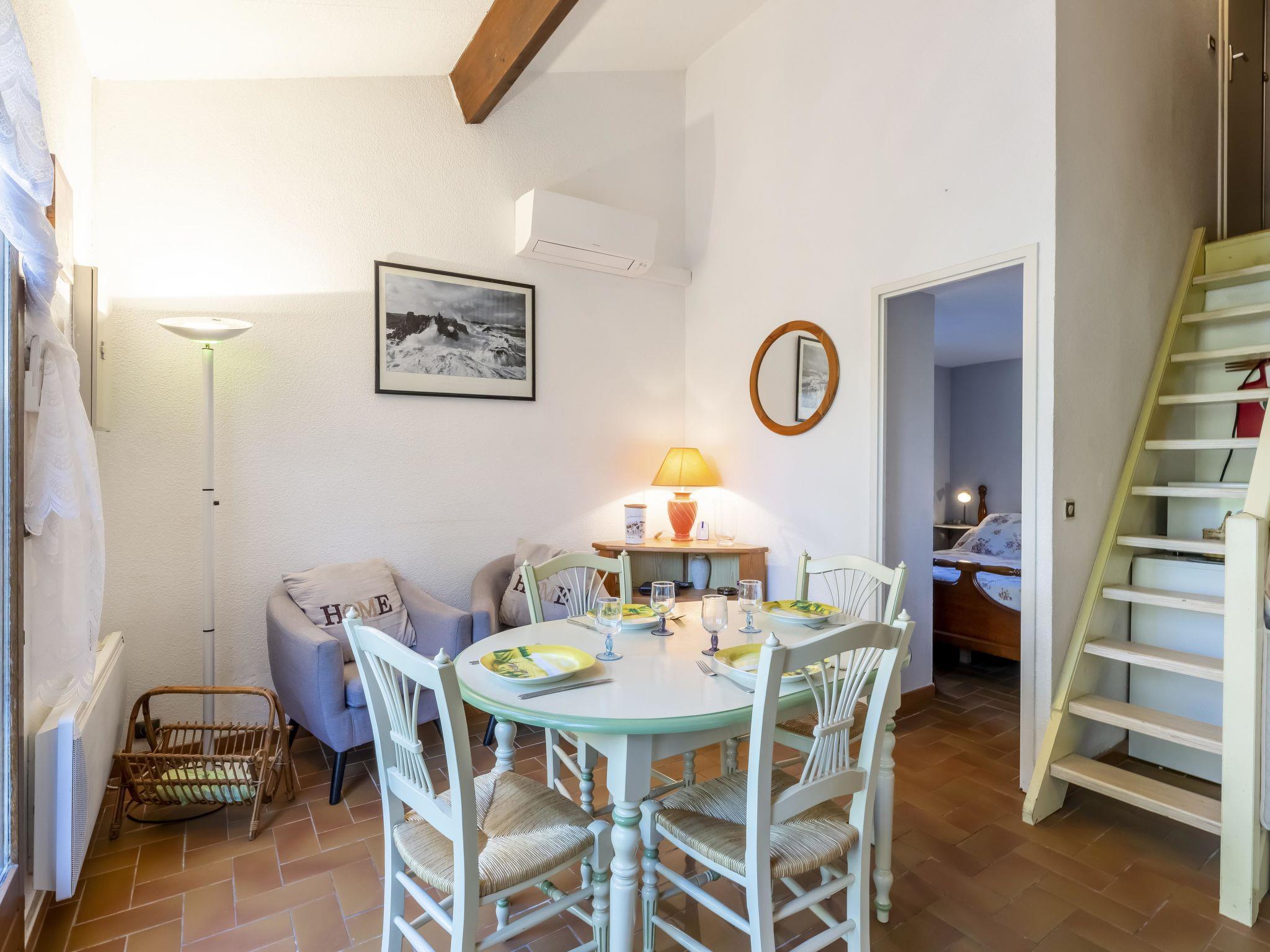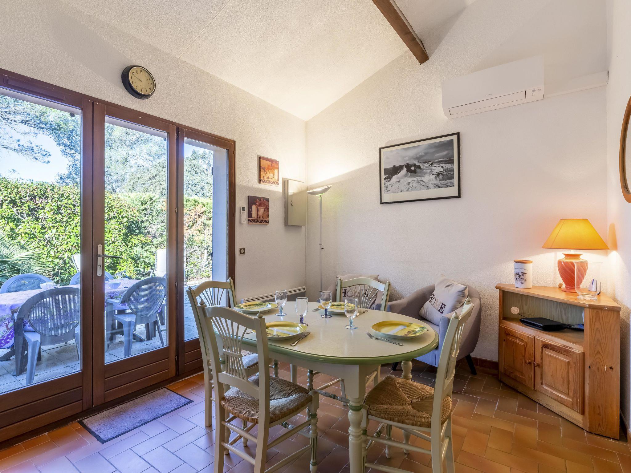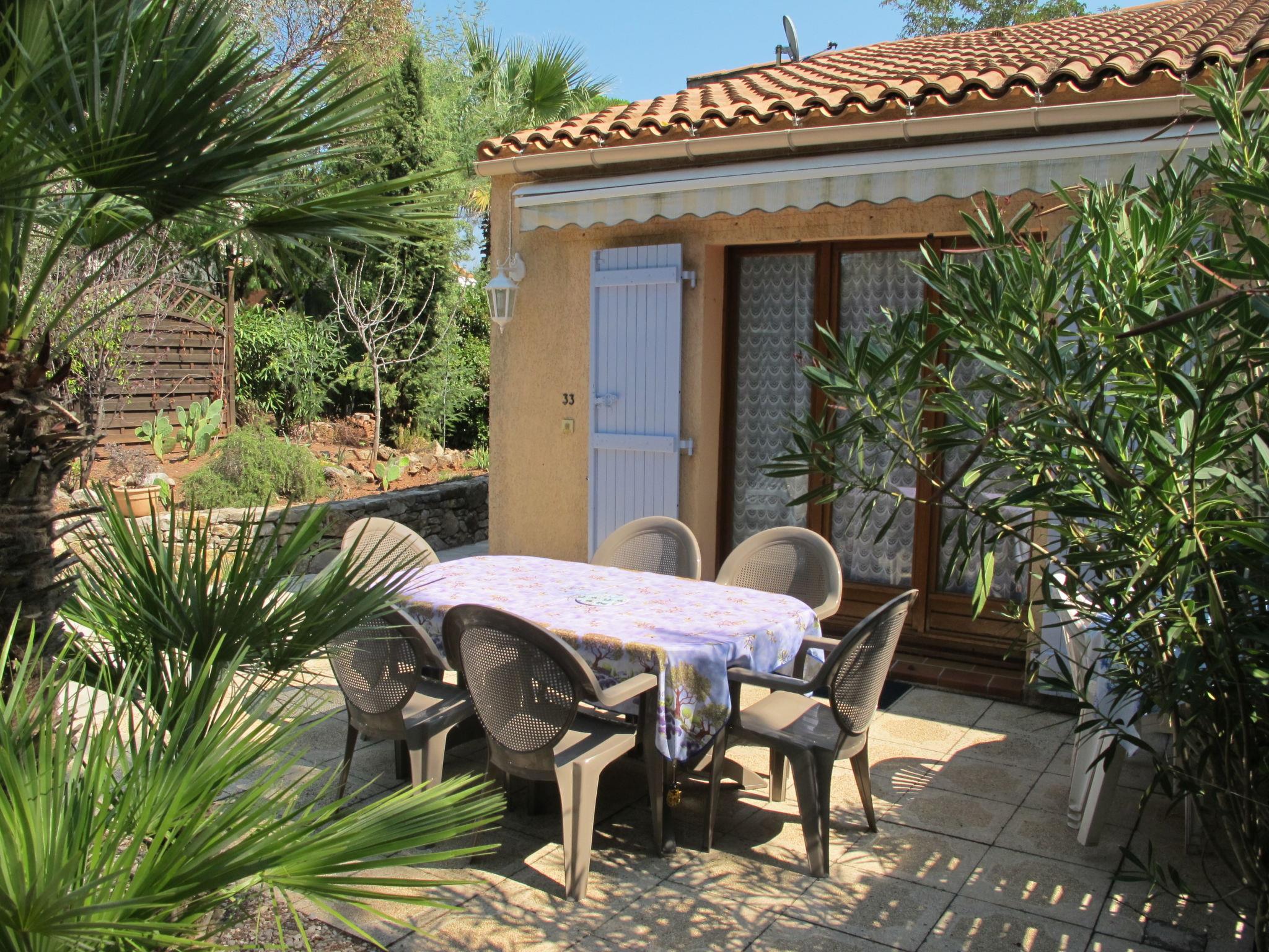 "Le Clos d'Azur 1", 3-Zimmer-Reihenhaus 35 m2 auf 2 Stockwerken. Zweckmässig eingerichtet: kleines Wohn-/Esszimmer mit Esstisch, TV und Klimaanlage. Ausgang zur Terrasse. 1 kleines Zimmer mit 1 franz. Bett (140 cm, Länge 190 cm). Offene Küche (Backofen, 4 Glaskeramikplatten, Toaster, Wasserkocher, Mikrowelle, Tiefkühler, elektrische Kaffeemaschine). Dusche/WC. Obergeschoss: (steile Treppe) abgeschrägte, offene Galerie mit 1 Bett (90 cm, Länge 190 cm). 1 kleines Zimmer mit 1 franz. Bett (140 cm, Länge 190 cm), Klimaanlage. E-Heizung. Terrasse 15 m2. Terrassenmöbel, Elektrogrill, Liegestühle (2). Schöne Sicht auf den Wald. Zur Verfügung: Waschmaschine, Bügeleisen. Internet (Wireless LAN, gratis). Parkplatz (1 Auto) in 60 m. Bitte beachten: Nichtraucher-Haus. Rauchmelder. Anstelle eines abgeschlossenen Schlafzimmers befinden sich manche Schlafplätze in einem offenen Bereich (Galerie, Nische etc.).