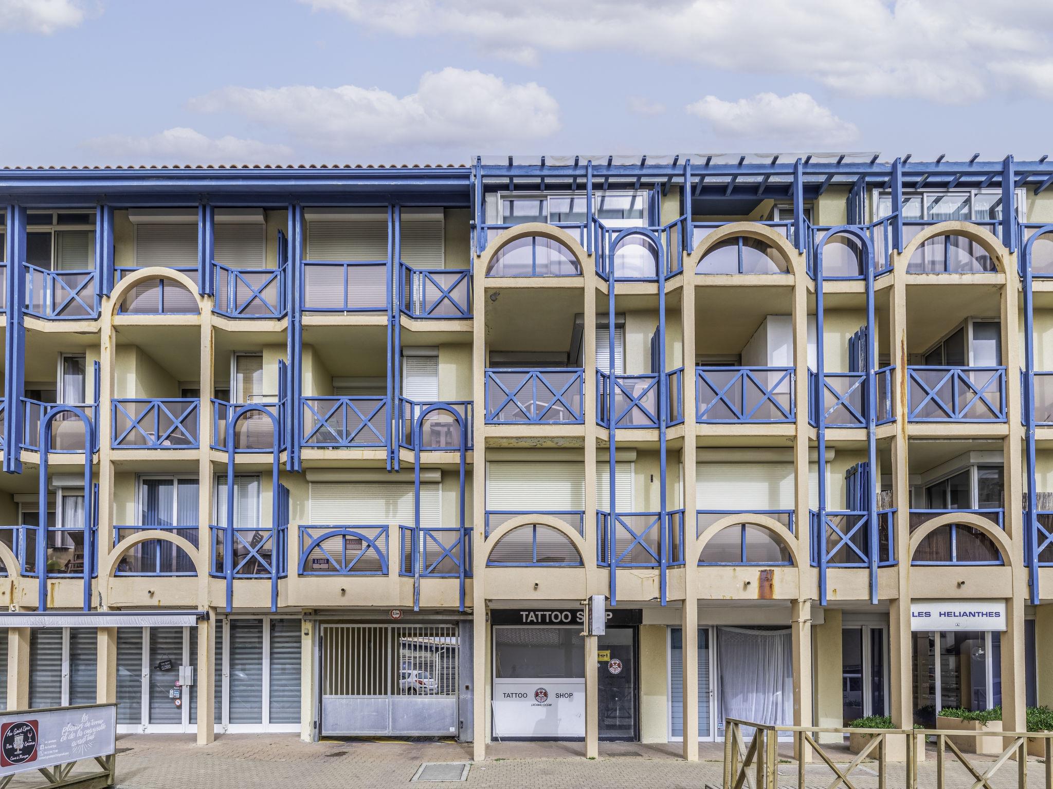 Lacanau Océan: Residenz "Les Hélianthes", auf 3 Stockwerken. Im Ortszentrum von Lacanau-Océan, zentrale, belebte Lage, 100 m vom Meer, 6 km vom See, 100 m vom Strand. In der Anlage: Fahrstuhl. Einkaufsgeschäft, Supermarkt 100 m, Restaurant 10 m, Bar 20 m, Fahrradverleih 50 m, Bushaltestelle "Salle l'Escoure Océan" 450 m. Golfplatz (18 Loch) 4 km, Surfschule 100 m, Tennis 3 km, Reitstall 4 km, Radweg 200 m. Nahe gelegene Sehenswürdigkeiten: Bordeaux 60 km, Saint Emilion 85 km, Dune du Pyla 80 km. Wandergebiete: Vélodyssée 500 m. Bitte beachten: Animation in der Saison.
