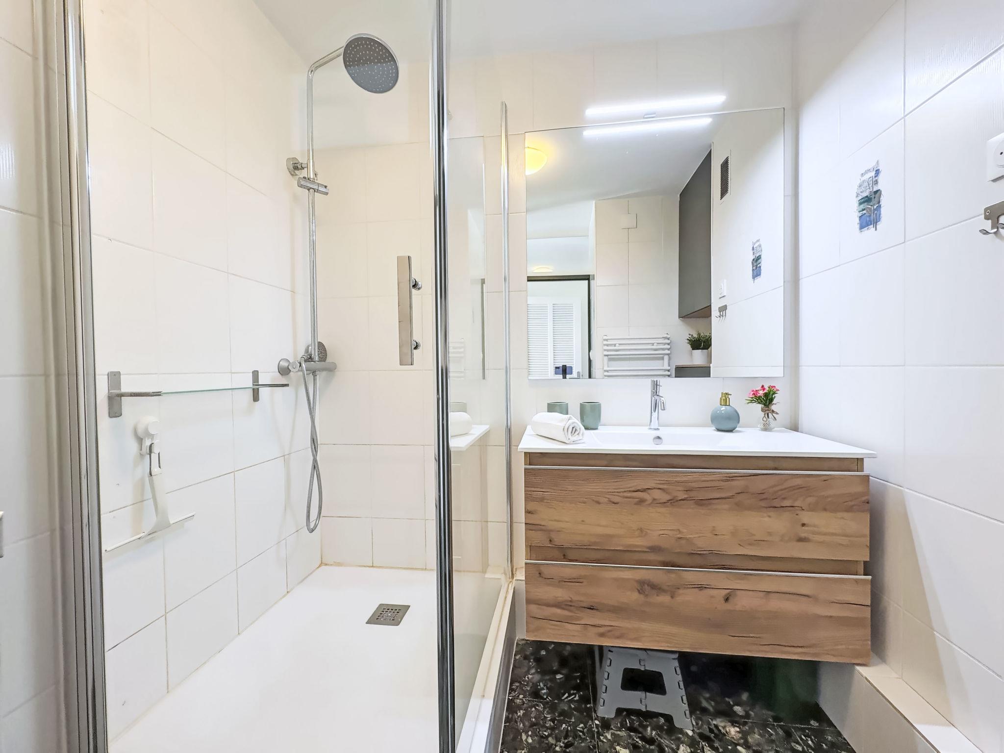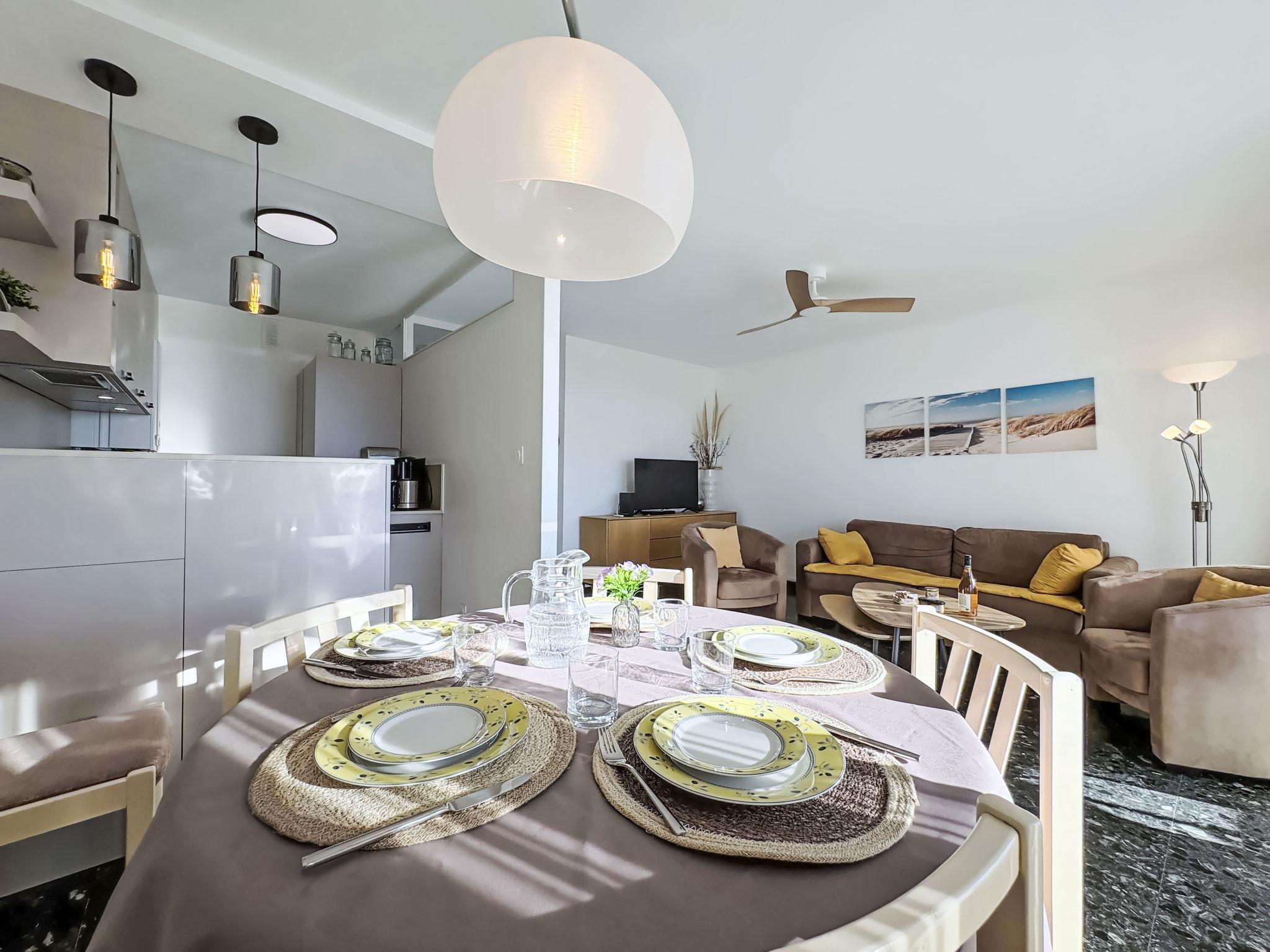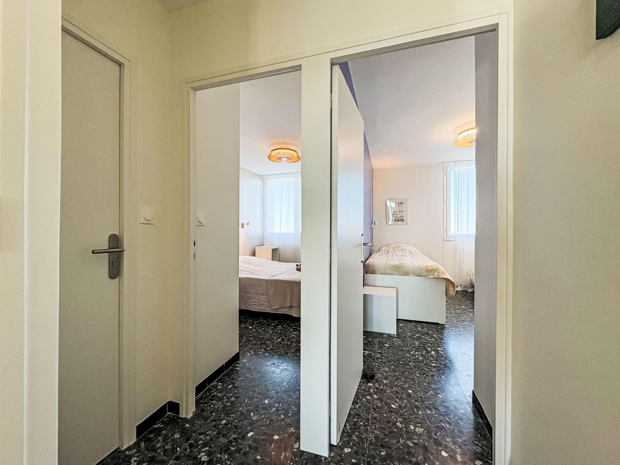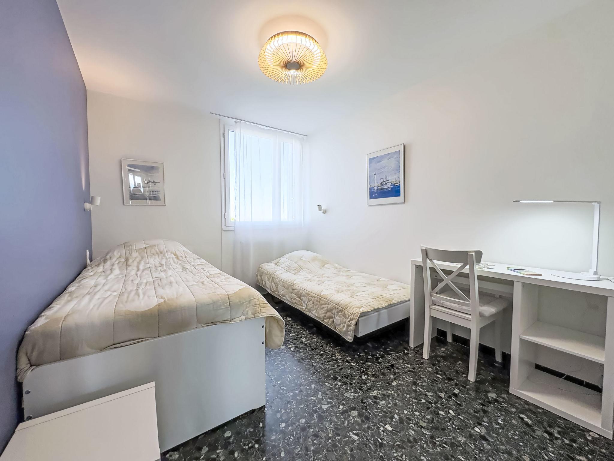 "Le Mireille", 3-Zimmer-Wohnung 60 m2 im 4. Stock. Schön eingerichtet: Wohn-/Esszimmer mit TV. 1 Zimmer mit 1 franz. Bett (160 cm, Länge 190 cm). 1 Zimmer mit 1 Bett (90 cm, Länge 190 cm), 1 Ausziehbett (2 Pers. 2 x 90 cm, Länge 200 cm). Küche (Backofen, 4 Glaskeramikplatten, Toaster, Wasserkocher, Mikrowelle, Tiefkühler, elektrische Kaffeemaschine). Dusche, sep. WC. G-Heizung. Terrasse 9 m2, Südwestlage. Terrassenmöbel. Schöne Sicht auf das Meer. Zur Verfügung: Waschmaschine. Internet (WLAN, gratis). Parkplatz Nr. 258. Bitte beachten: Rauchmelder. Inserat einer Privatperson nach Artikel 155, IV, CGI.
