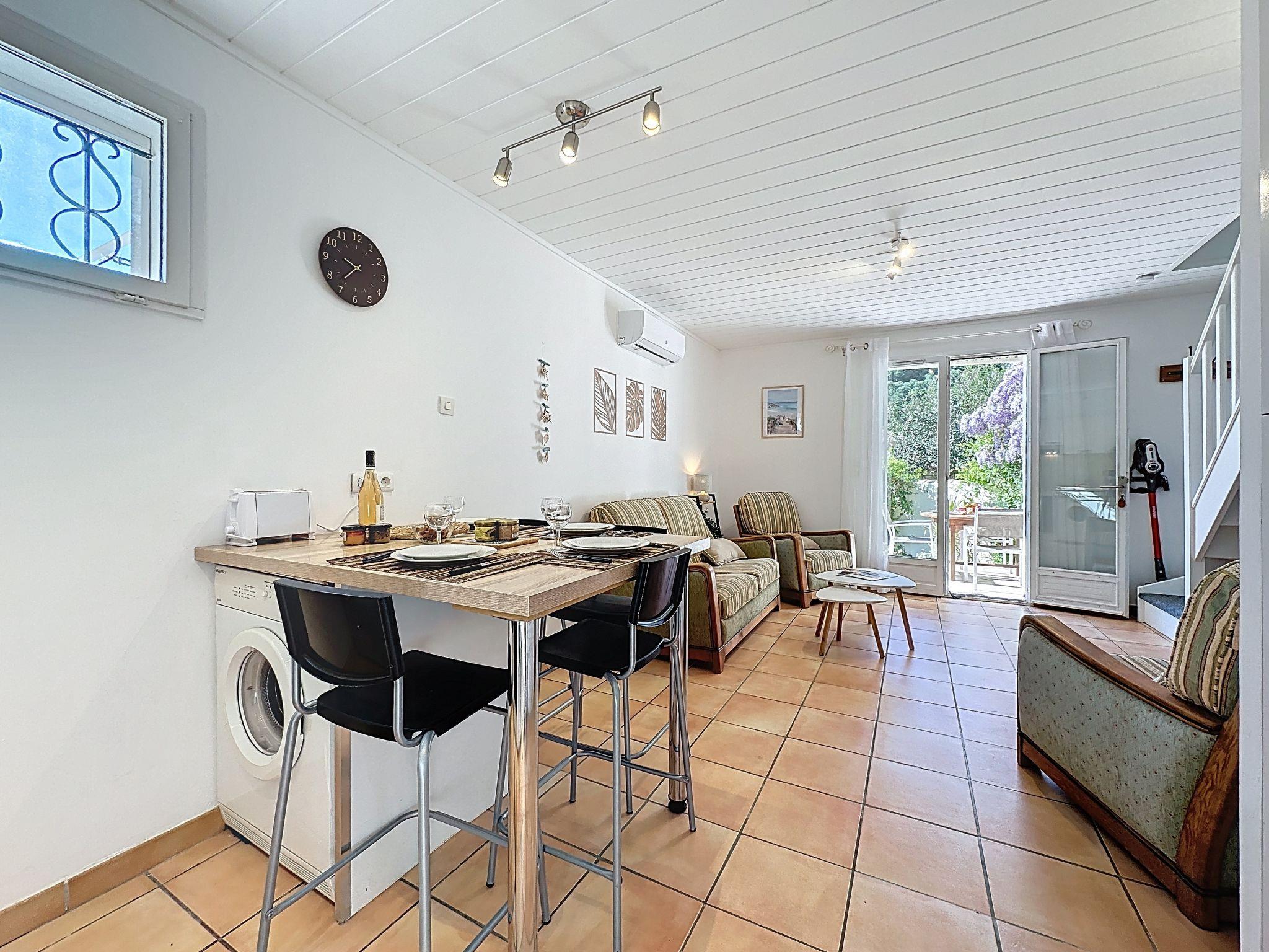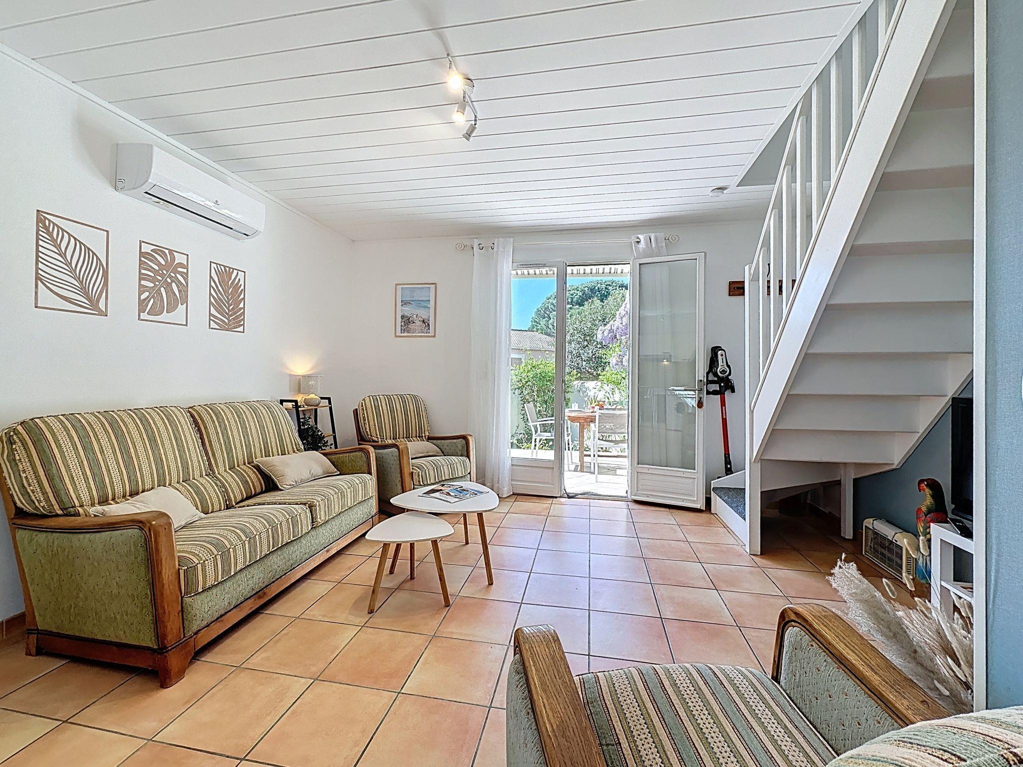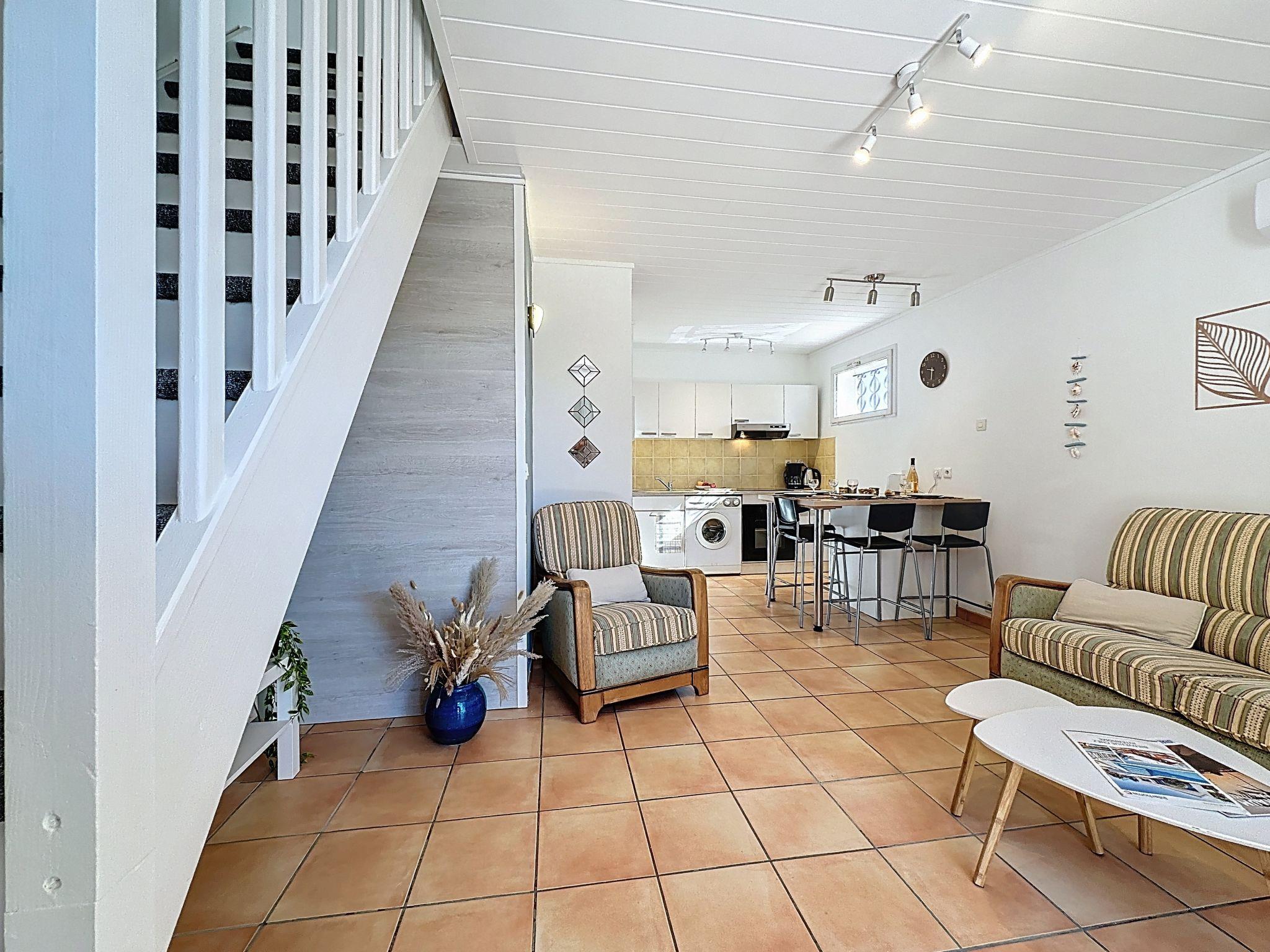 3-Zimmer-Reihenhaus 44 m2 auf 2 Stockwerken. Hell, gemütlich eingerichtet: Esszimmer mit TV (Flachbildschirm). Offene Küche (Geschirrspüler, 3 Induktionskochplatten, Toaster, Wasserkocher, Mikrowelle, Tiefkühler, elektrische Kaffeemaschine). Obergeschoss: 1 Zimmer mit 1 franz. Bett (140 cm, Länge 190 cm). 1 Zimmer mit 1 franz. Bett (140 cm, Länge 190 cm). Dusche/WC. E-Heizung, Klimaanlage, Bodenheizung. Terrasse 14 m2, Südlage, Rasen 35 m2. Terrassenmöbel. Zur Verfügung: Waschmaschine, Wäschetrockner. Internet (WLAN, gratis). Bitte beachten: Rauchmelder. Inserat einer Privatperson nach Artikel 155, IV, CGI.