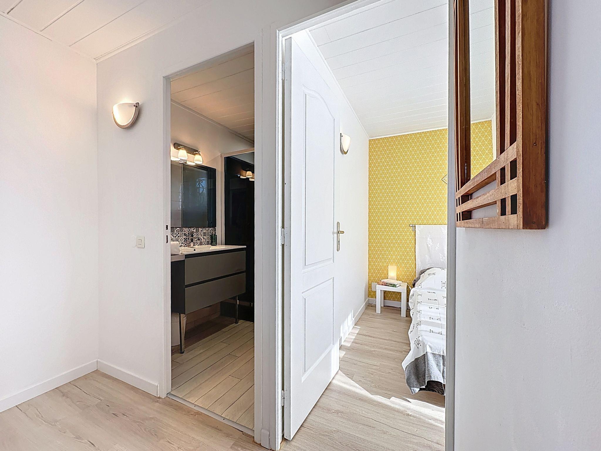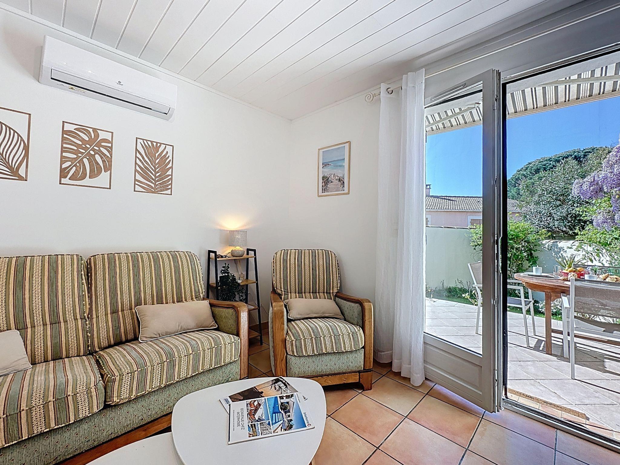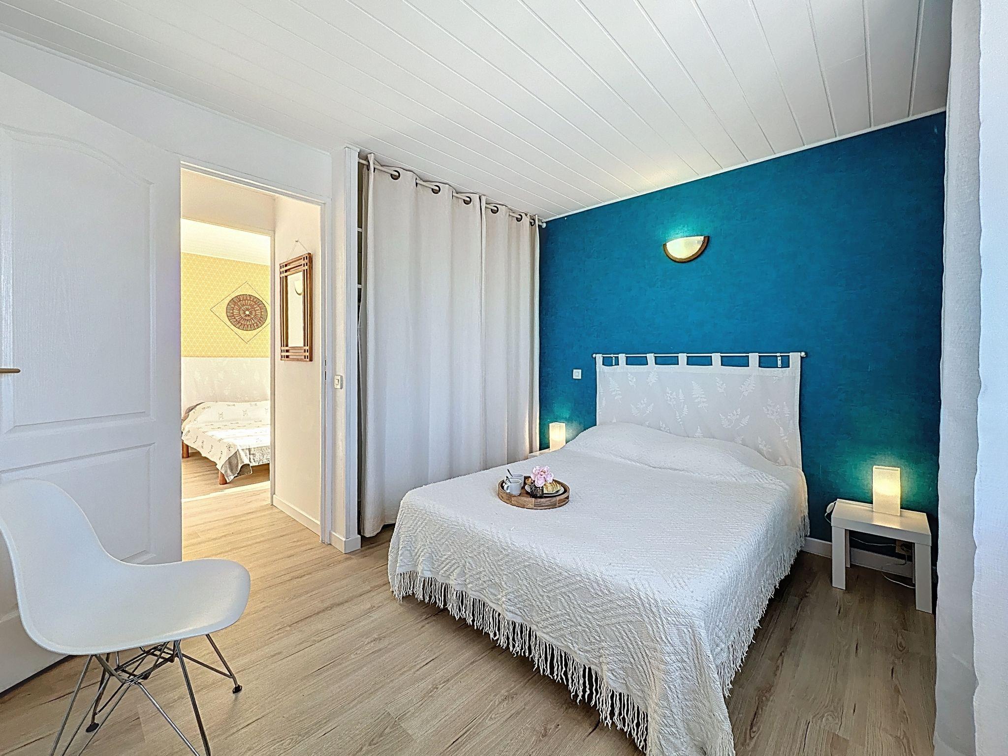 3-Zimmer-Reihenhaus 44 m2 auf 2 Stockwerken. Hell, gemütlich eingerichtet: Esszimmer mit TV (Flachbildschirm). Offene Küche (Geschirrspüler, 3 Induktionskochplatten, Toaster, Wasserkocher, Mikrowelle, Tiefkühler, elektrische Kaffeemaschine). Obergeschoss: 1 Zimmer mit 1 franz. Bett (140 cm, Länge 190 cm). 1 Zimmer mit 1 franz. Bett (140 cm, Länge 190 cm). Dusche/WC. E-Heizung, Klimaanlage, Bodenheizung. Terrasse 14 m2, Südlage, Rasen 35 m2. Terrassenmöbel. Zur Verfügung: Waschmaschine, Wäschetrockner. Internet (WLAN, gratis). Bitte beachten: Rauchmelder. Inserat einer Privatperson nach Artikel 155, IV, CGI.