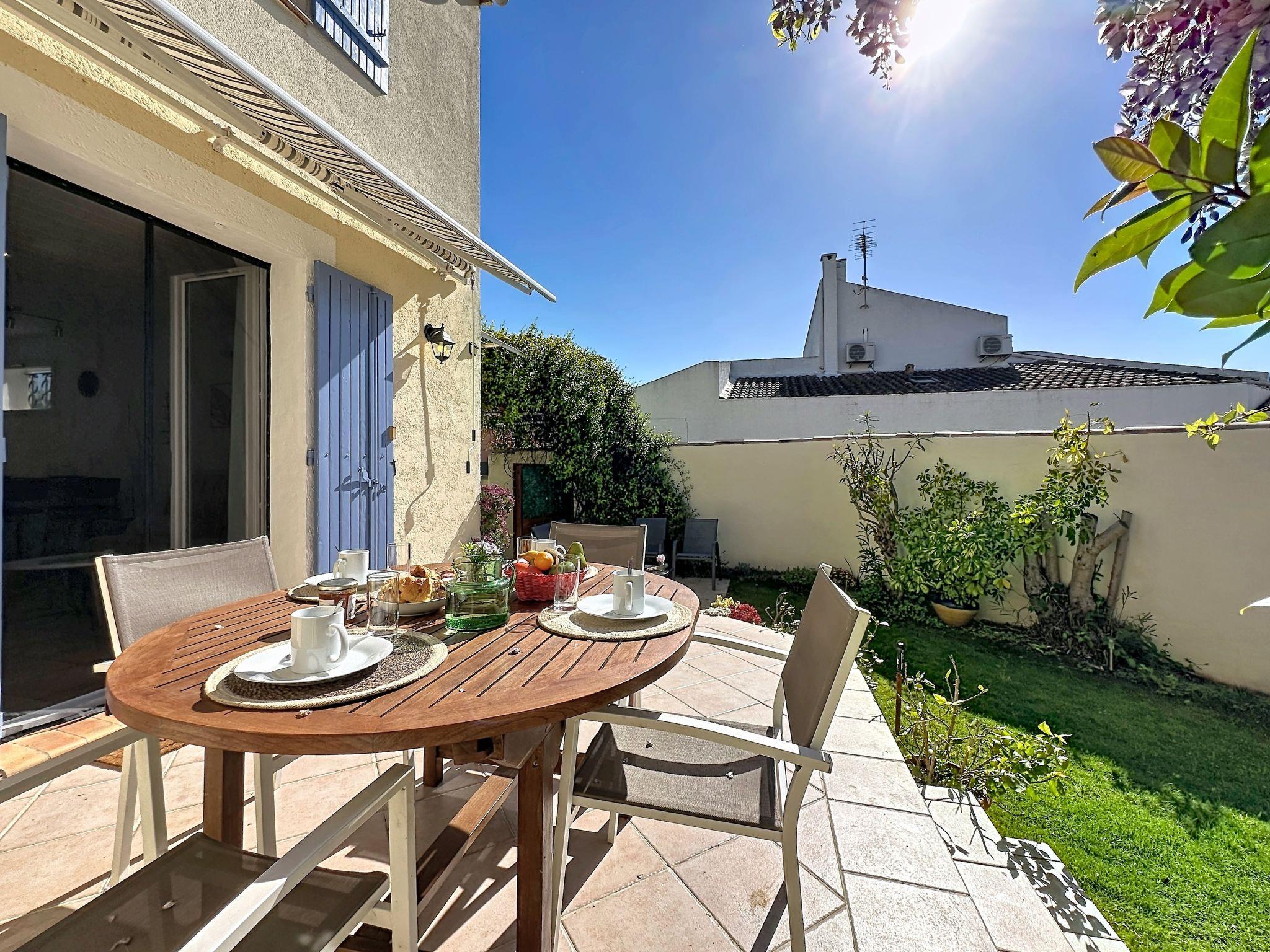 Reihenhaus "Papaye". Im Ortsteil le Boucanet, 1.4 km vom Zentrum von le Grau du Roi, sonnige Lage in einem Wohnquartier, 450 m vom Meer, 450 m vom Strand, in einer Sackgasse. Parkplatz auf dem Grundstück. Lebensmittelgeschäft, Supermarkt, Einkaufszentrum, Restaurant 500 m, Bar 800 m, Bushaltestelle 600 m. Golfplatz 4.8 km, Tennis 2.6 km, Reitstall 800 m. Nahe gelegene Sehenswürdigkeiten: Les arenes du Grau du roi 1 km, Seaquarium 3 km, Casino Flamingo 3 km, La Grande Motte 4 km, Aigues Mortes 7 km, Nimes 45 km. Wandergebiete: Le parc naturel régional de Camargue.