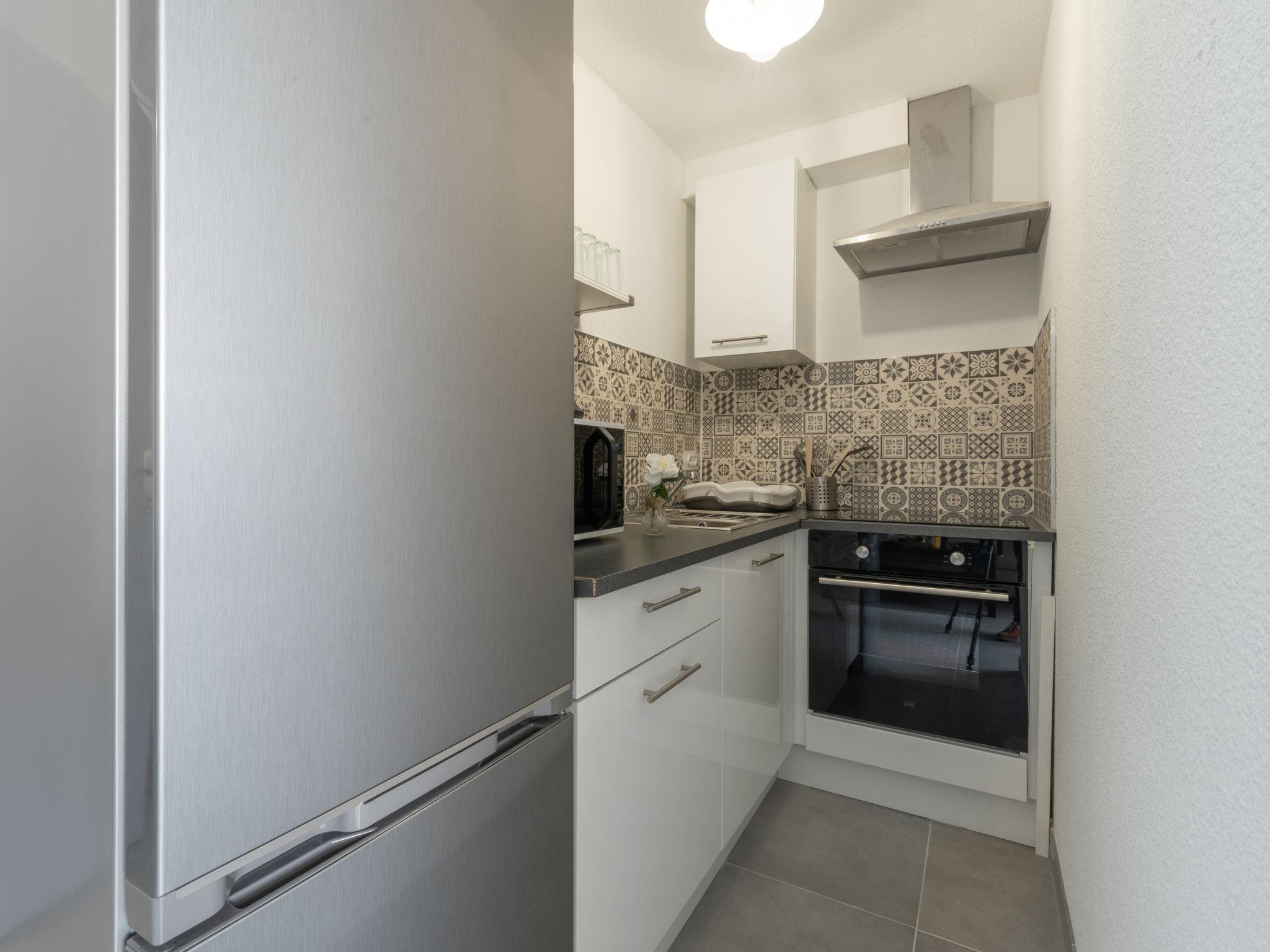 2-Zimmer-Wohnung 25 m2. Schön und modern eingerichtet: Wohn-/Esszimmer mit 1 Doppeldiwanbett (140 cm, Länge 190 cm), TV (Flachbildschirm), Klimaanlage. 1 Zimmer mit 1 franz. Bett (140 cm, Länge 190 cm). Kochnische (Backofen, 4 Glaskeramikplatten, Toaster, Wasserkocher, Mikrowelle, Tiefkühler, elektrische Kaffeemaschine, Kapseln für die Kaffeemaschine (SENSEO) extra). Dusche/WC. Warmluftheizung. Terrasse 10 m2, Südlage und Westlage. Terrassenmöbel. Zur Verfügung: Waschmaschine. Internet (WLAN, gratis). Garage Nr. 255. Bitte beachten: Nichtraucher-Unterkunft. Rauchmelder. Inserat einer Privatperson nach Artikel 155, IV, CGI. 30133001384OH