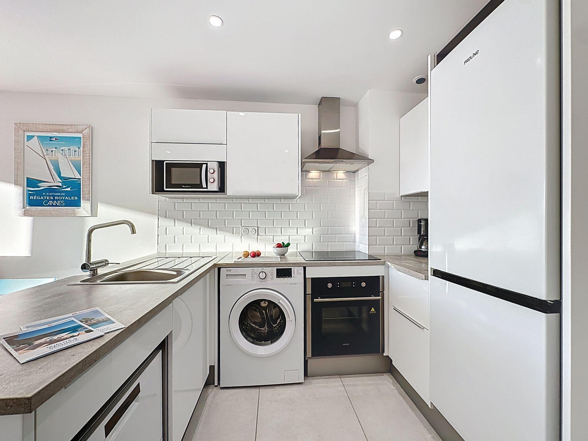 2-Zimmer-Wohnung 40 m2 im 3. Stock. Wohn-/Schlafzimmer mit 1 Doppeldiwanbett (140 cm, Länge 190 cm), TV (Flachbildschirm). Ausgang zum Balkon. 1 Zimmer mit 1 franz. Bett (140 cm, Länge 190 cm). Offene Küche (Backofen, Geschirrspüler, 3 Induktionskochplatten, Toaster, Wasserkocher, Mikrowelle, Tiefkühler, elektrische Kaffeemaschine). Dusche, sep. WC. Klimaanlage. Balkon 6 m2, Westlage. Balkonmöbel. Eingeschränkte Sicht auf das Meer. Zur Verfügung: Waschmaschine. Internet (WLAN, gratis). Parkplatz Nr. 71. Bitte beachten: Nichtraucher-Unterkunft. Rauchmelder. Inserat eines gewerblichen Vermieters nach Artikel 155, IV, CGI 30133001402HL